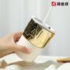 Nueva taza de anfitrión de estilo chino hecha a mano, simple, pequeña taza de té de vidrio, taza de té con patrón de martillo, tazón de té pequeño, juego de té de kung fu con borde dorado |