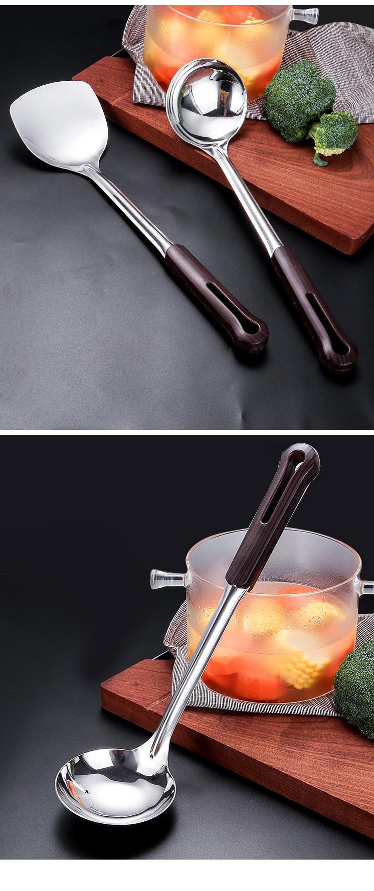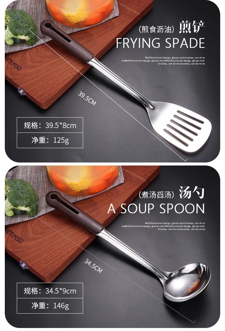 Introducción del producto: Juego de utensilios de cocina con mango de baquelita, se puede personalizar con LOGO láser