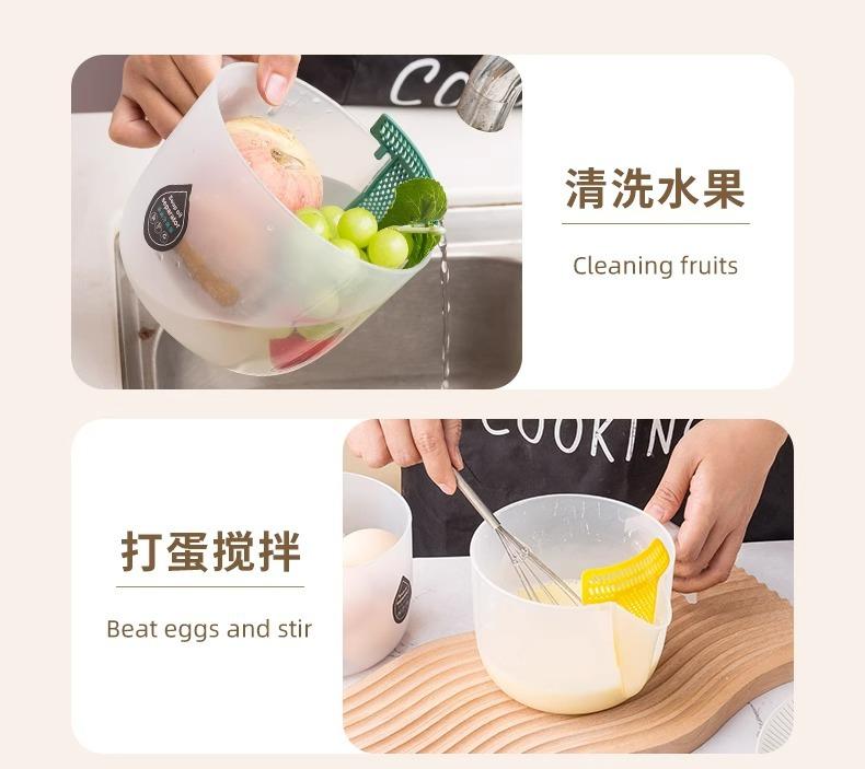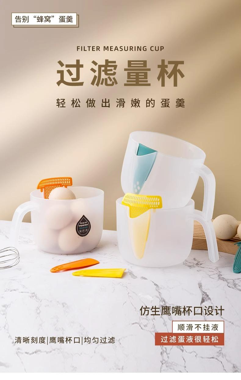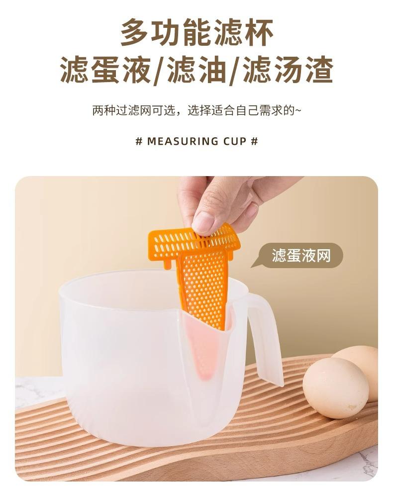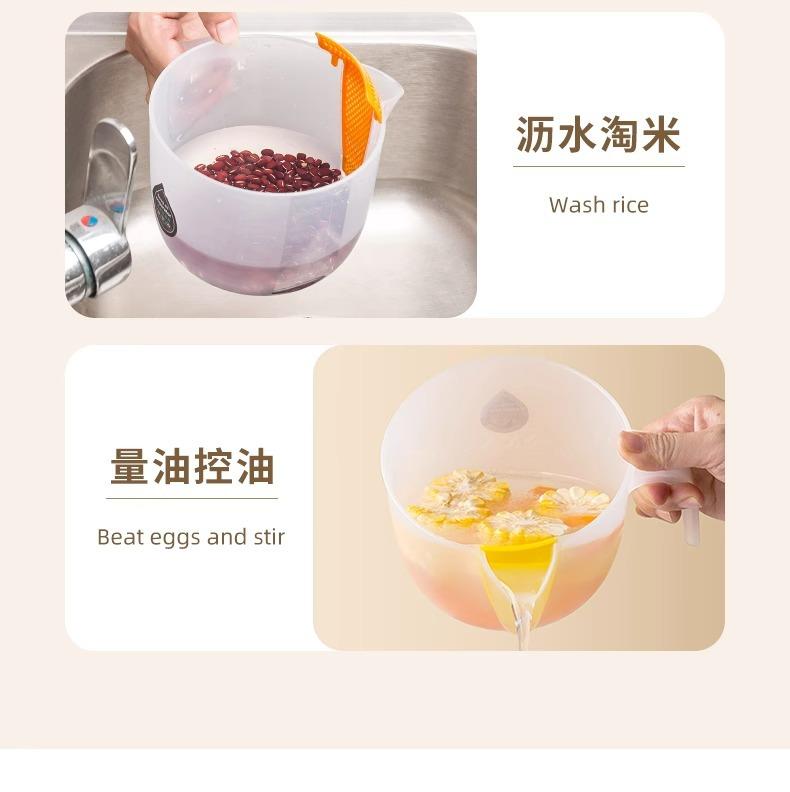 Taza medidora con escala taza taza para hornear tazón para mezclar filtro taza medidora de plástico taza medidora de cocina tazón para huevo tazón para arroz al por mayor