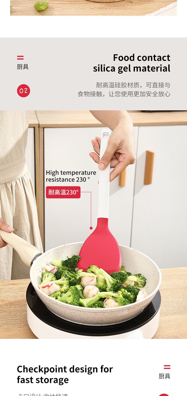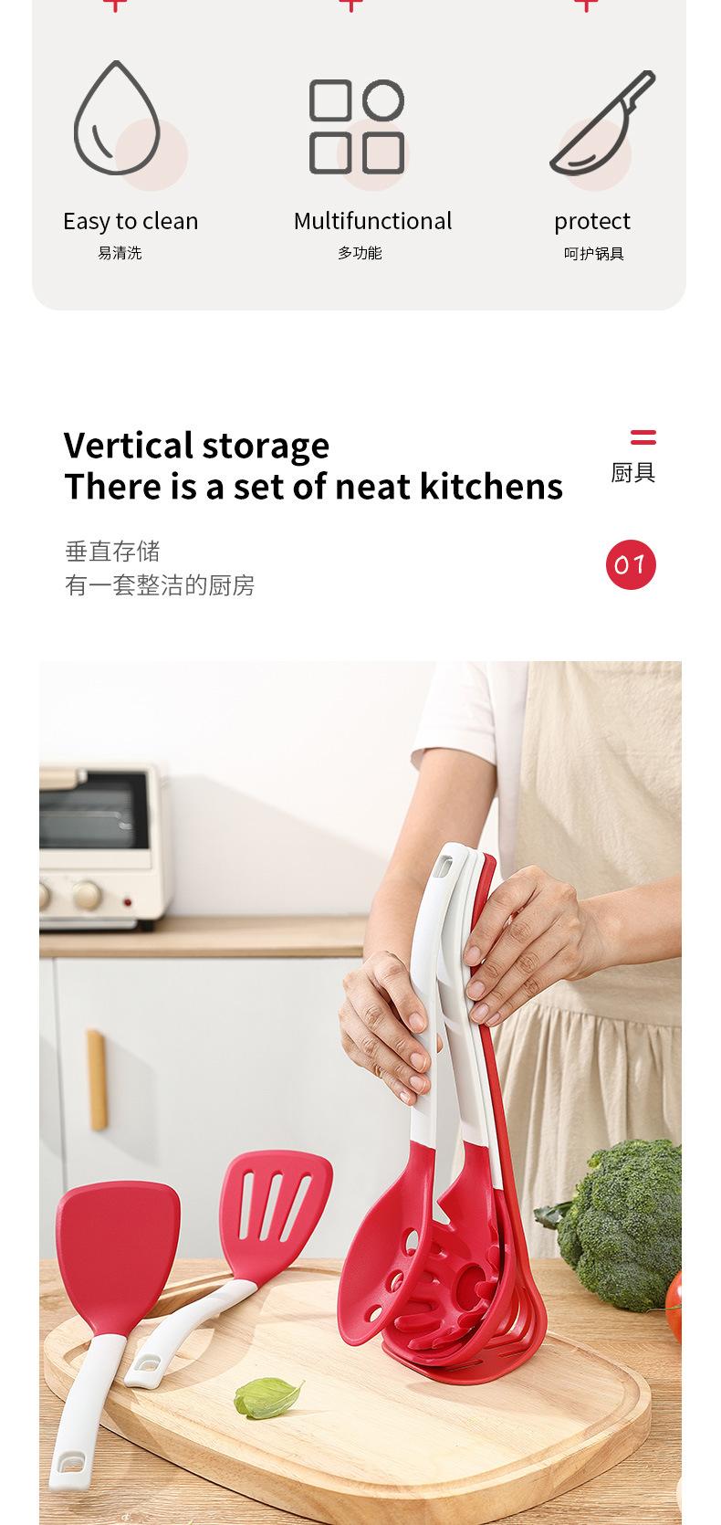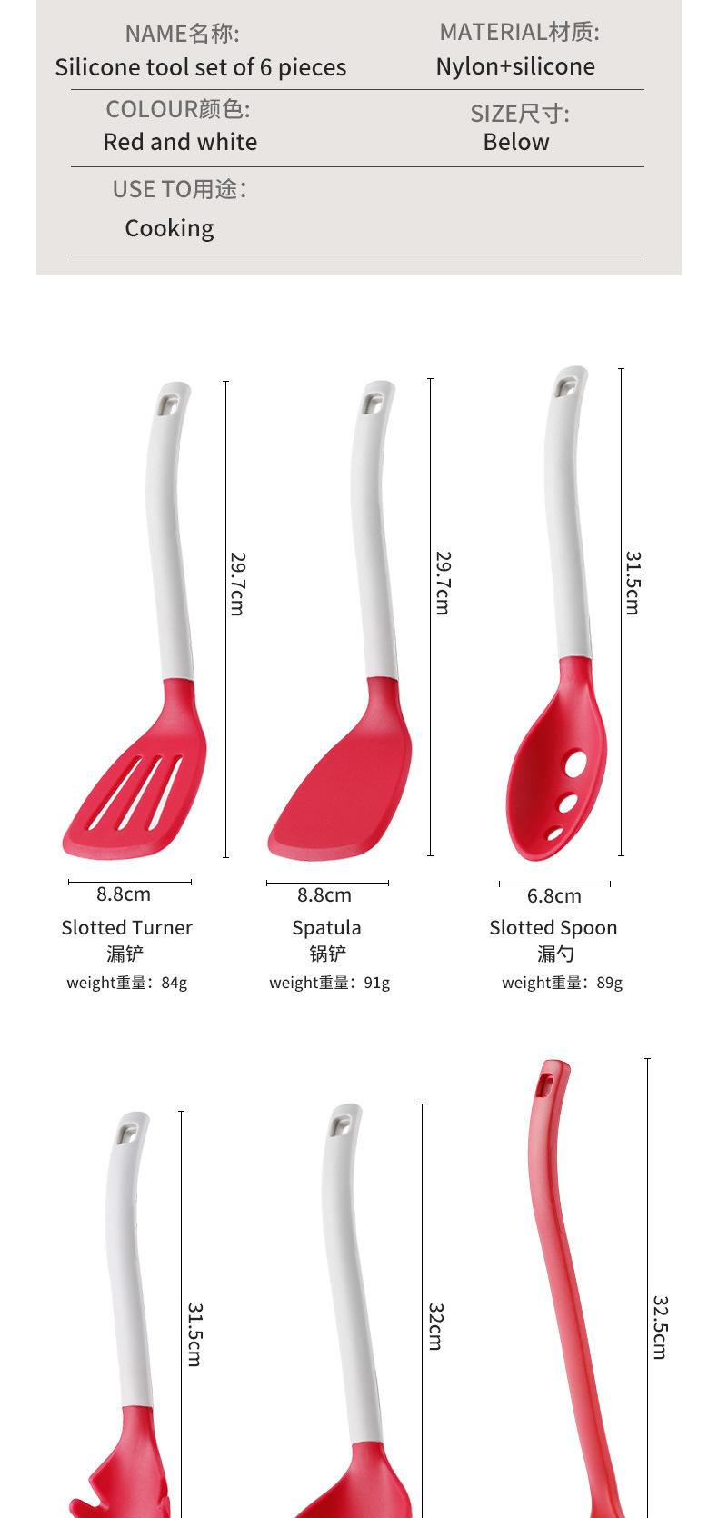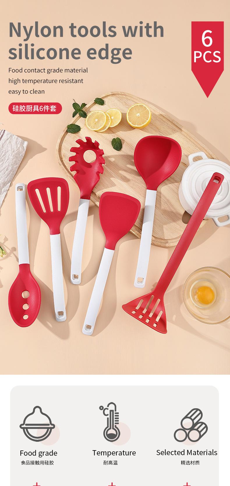 Set de 6 utensilios de cocina de silicona para almacenamiento vertical transfronterizo, mango de nailon, espátula de silicona, cuchara para sopa resistente a altas temperaturas
