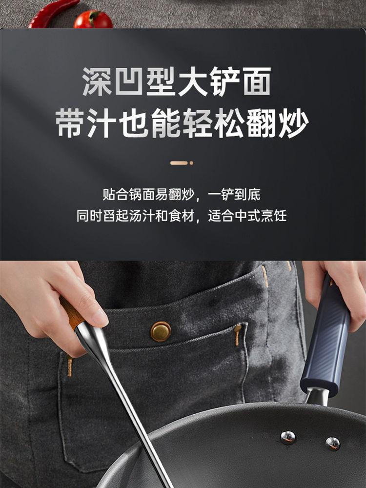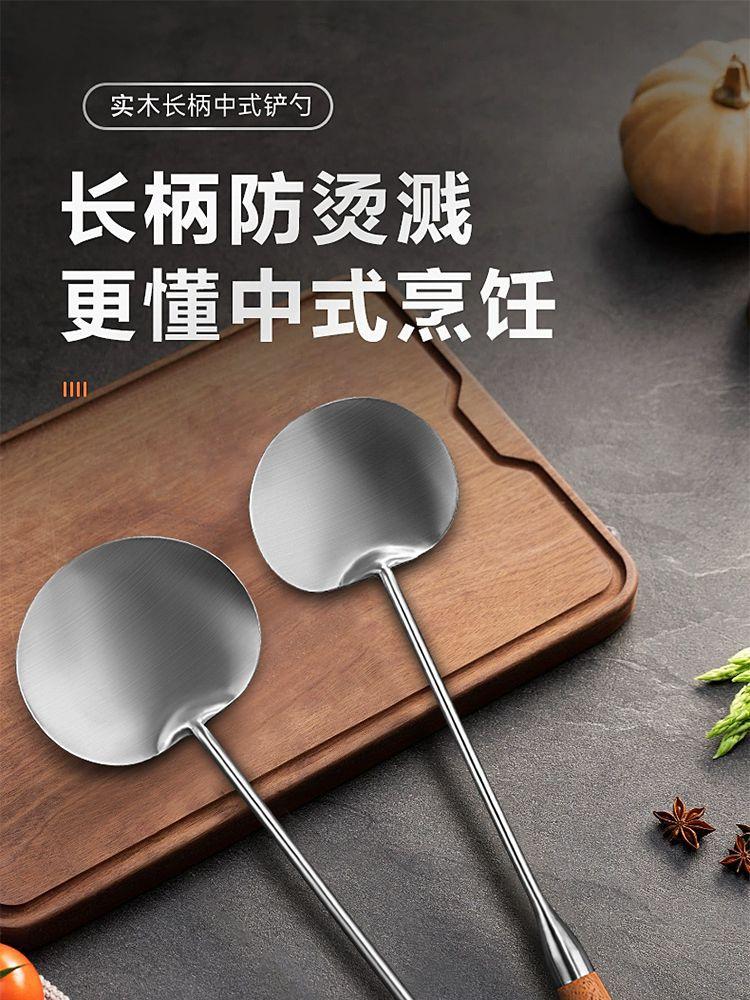 Espátula de acero inoxidable, espátula para saltear antigua, cuchara para saltear de mango largo, espátula especial para chef, espátula de hierro engrosada