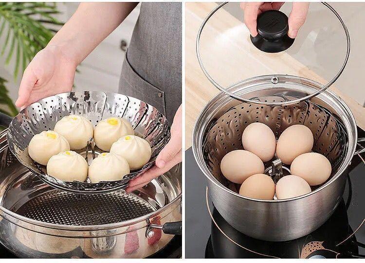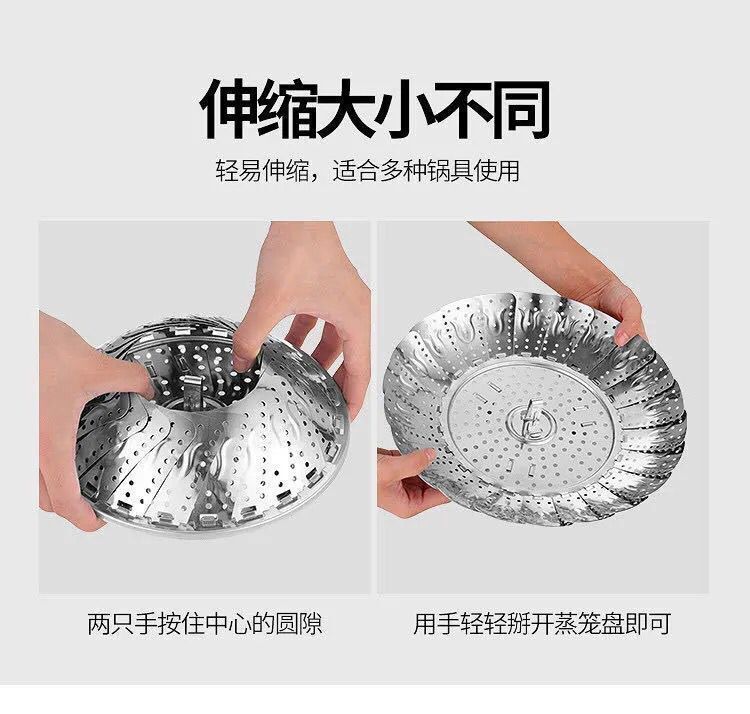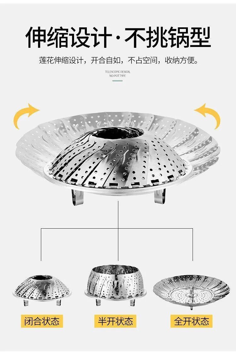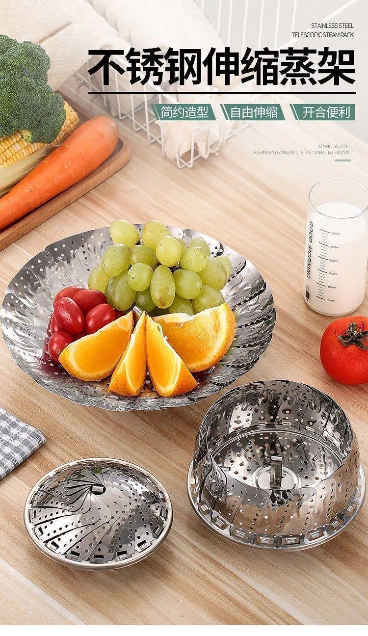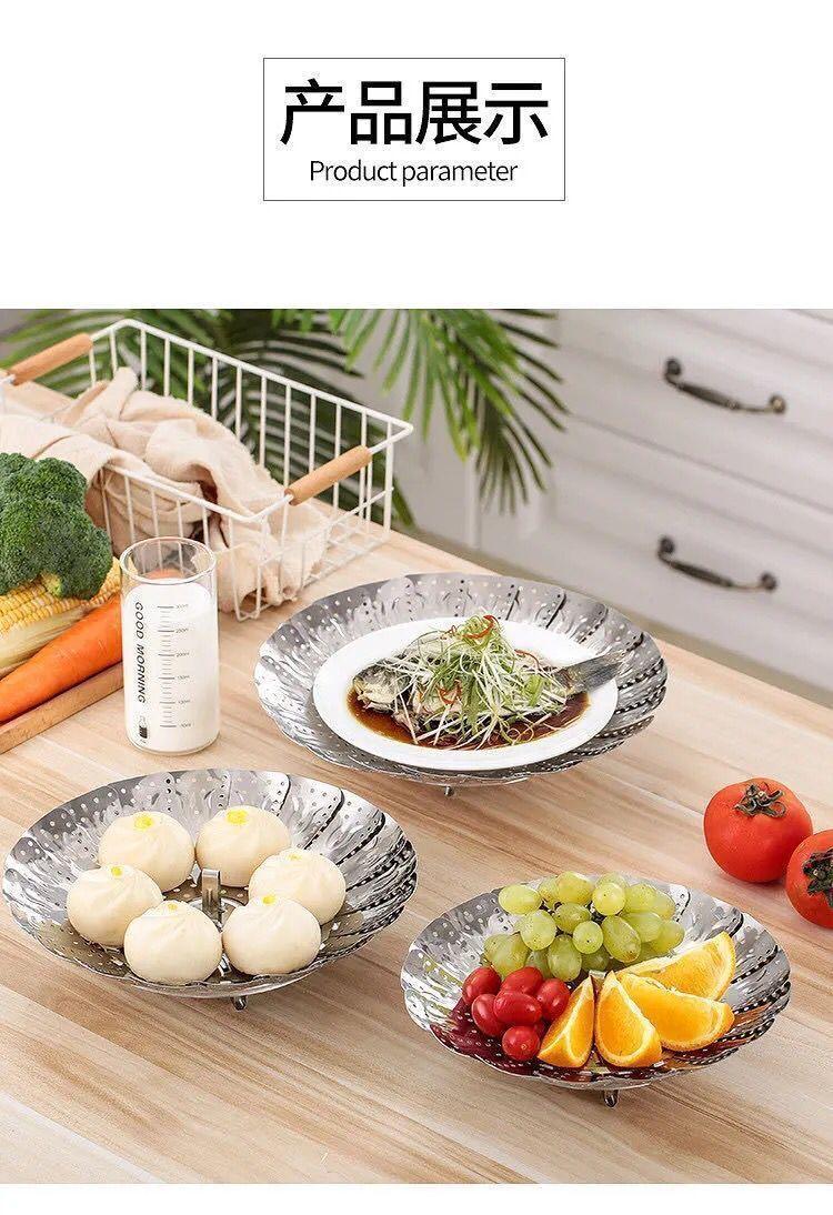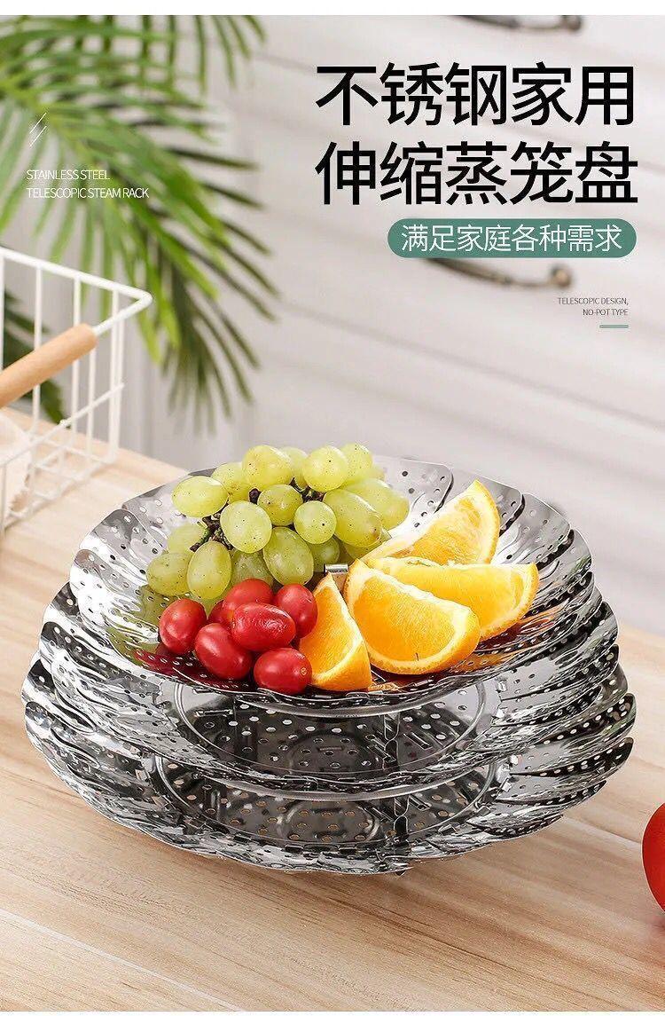 Bandeja de vapor plegable de acero inoxidable, vaporera telescópica, bandeja para frutas, vaporera de celosía, bandeja de loto, bandeja de drenaje multifuncional para el hogar
