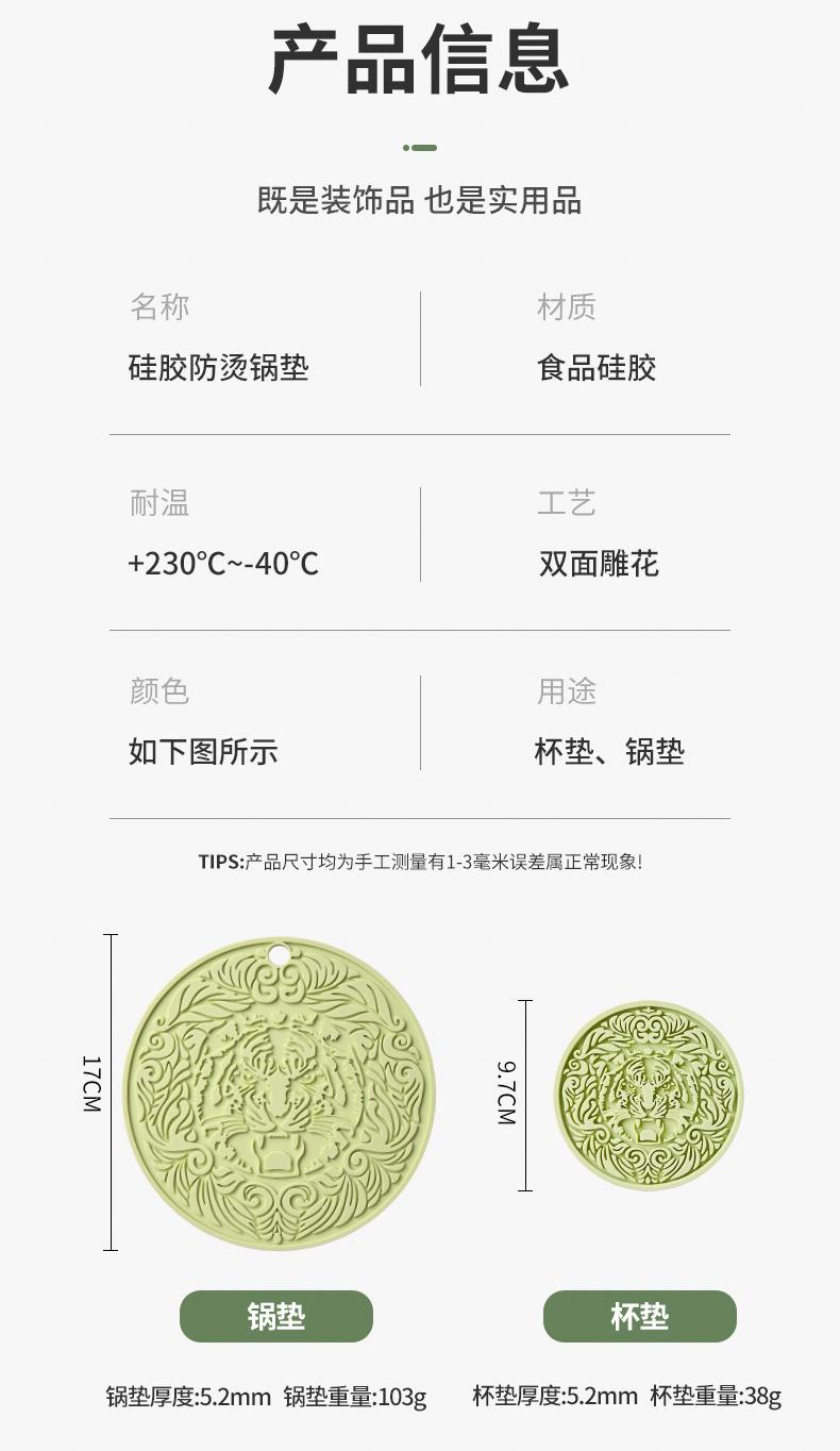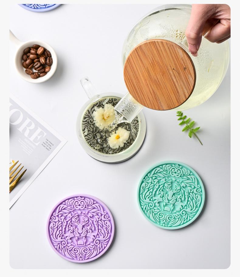 Material: Silicona de grado alimenticio Número de patente: 2021306976422-posavasos (tigre)