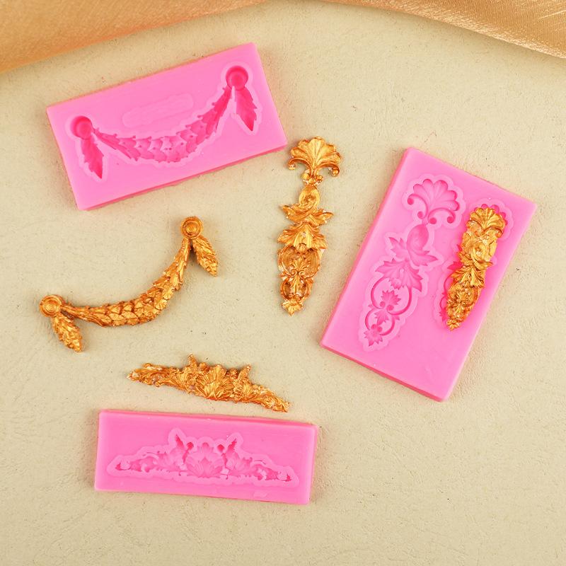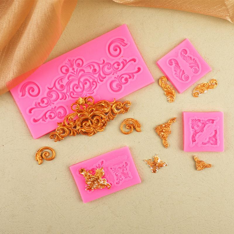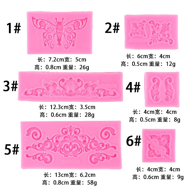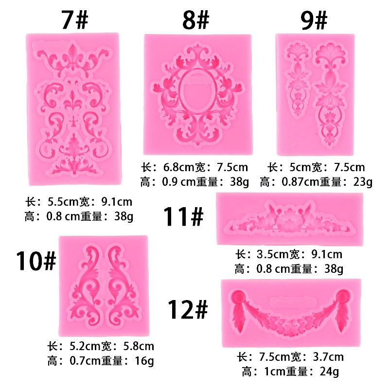 Nombre del producto: Varios moldes de silicona para pastel de fondant con forma de encaje, moldes de marco de espejo con relieve hueco, marco de fotos retro