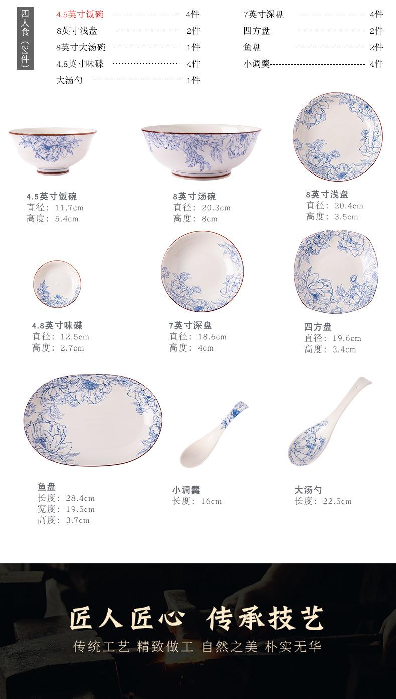 Juego de Vajilla Cerámica Bajo Esmalte Juego de Platos Cerámicos Hogar Nuevo 2025 Cerámica Azul y Blanco Tazón de Arroz Tazón de Sopa Plato