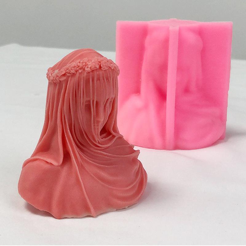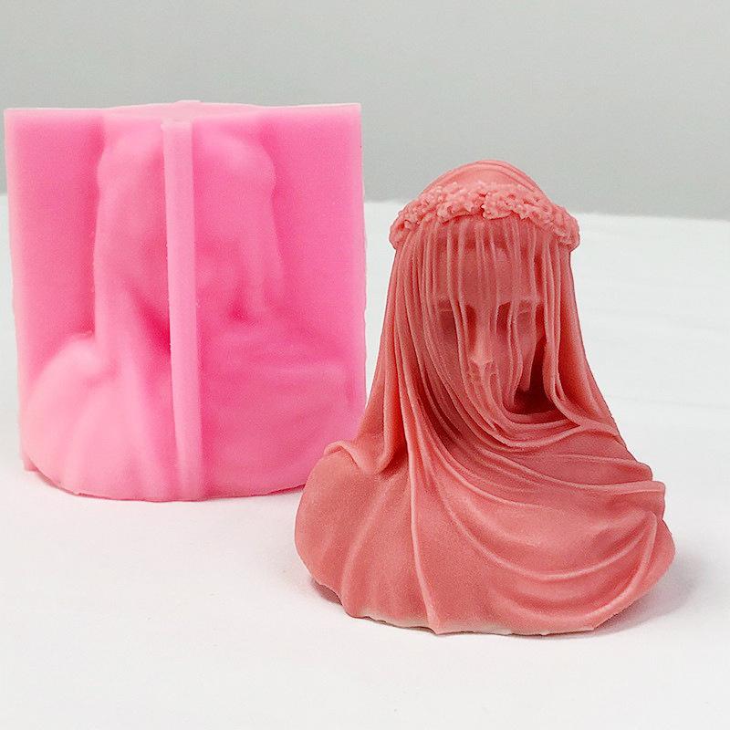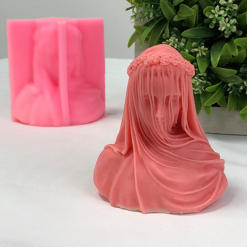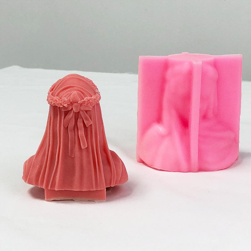 Vela Aromática Tridimensional Chica con Velo Molde de Silicona DIY Retrato Pegamento Resina Yeso Adorno Molde de Silicona