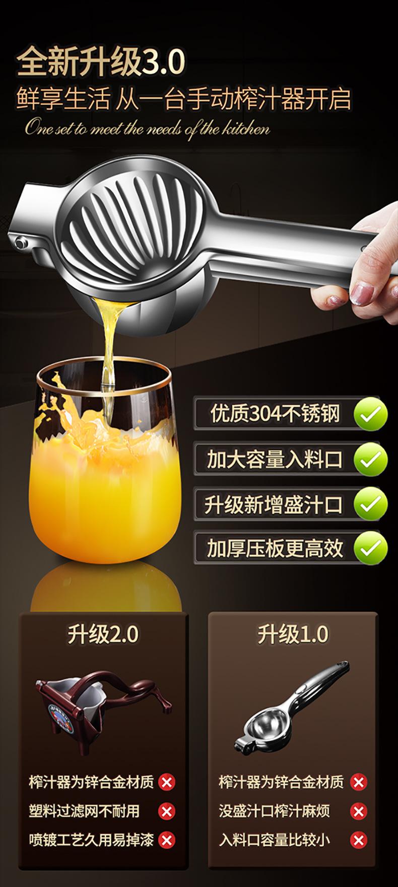 Exprimidor manual de naranjas, exprimidor de granadas de acero inoxidable 304, exprimidor portátil de frutas para el hogar con clip para limón.