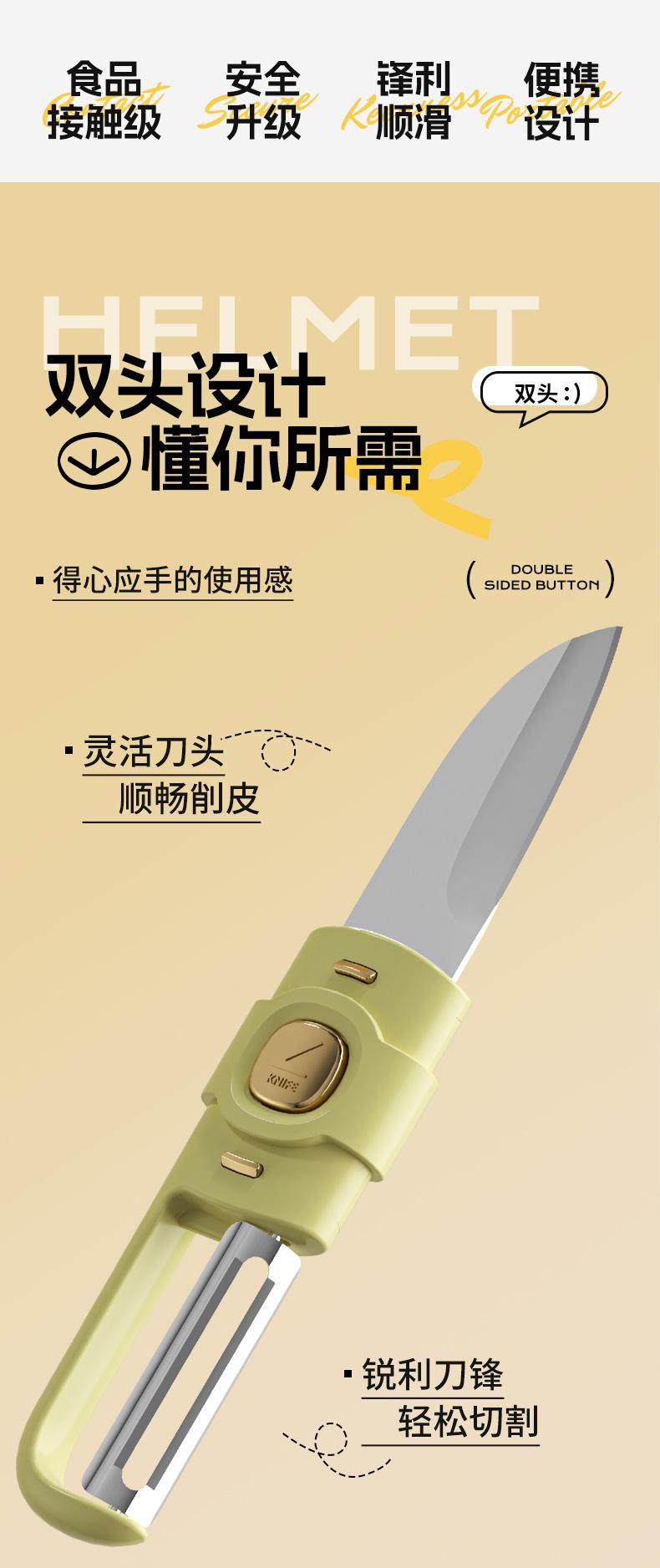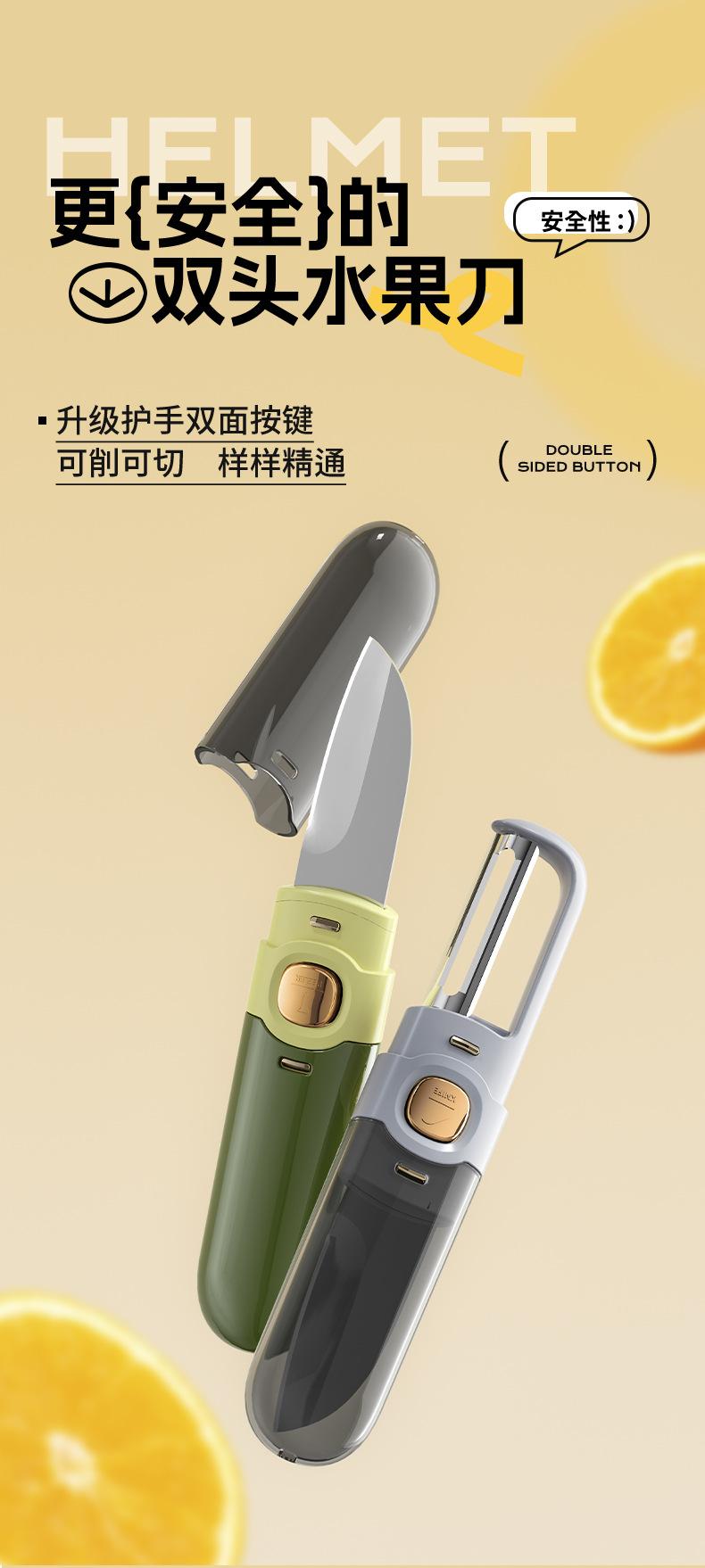 Pelador de frutas, cuchillo, pelador, dormitorio, hogar, multifuncional, de doble cabezal, dos en uno, portátil, pelador de manzanas