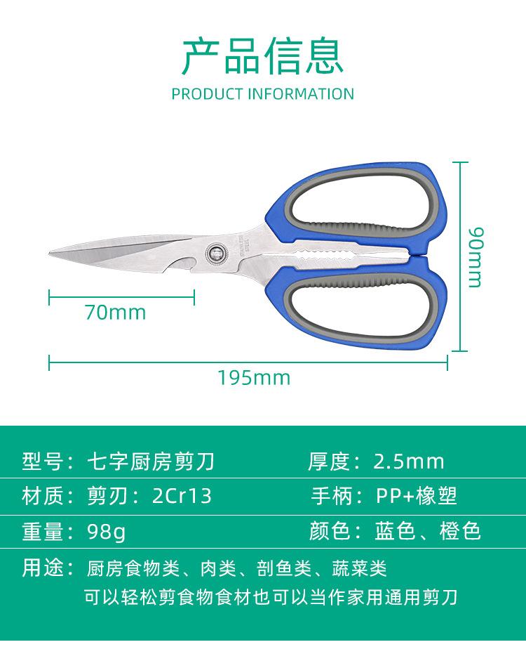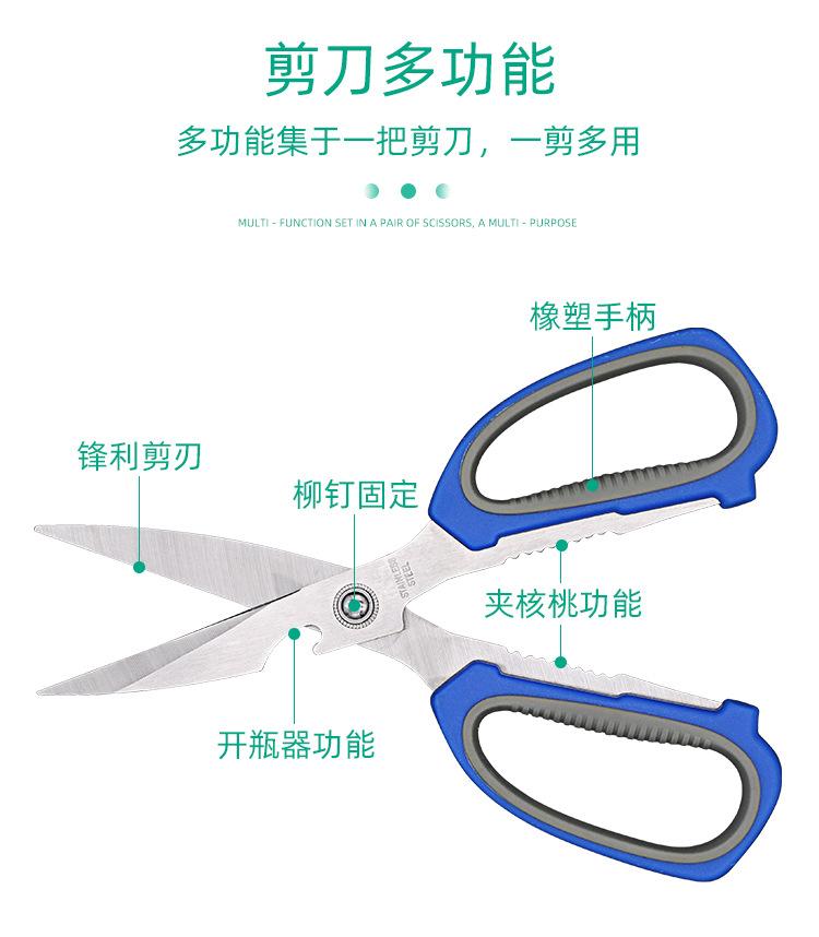Tijeras de cocina de acero inoxidable, tijeras multifuncionales para huesos de pollo, tijeras de acero inoxidable para matar peces panda.