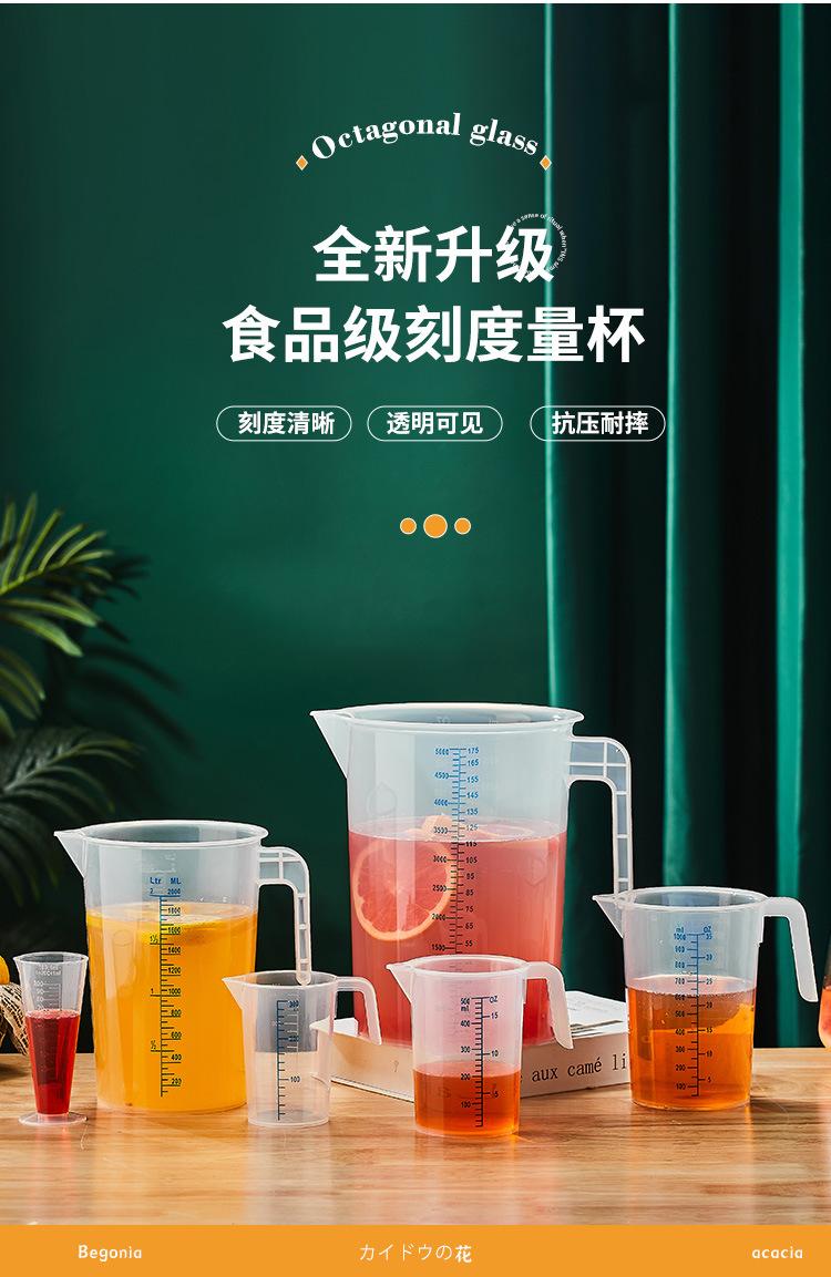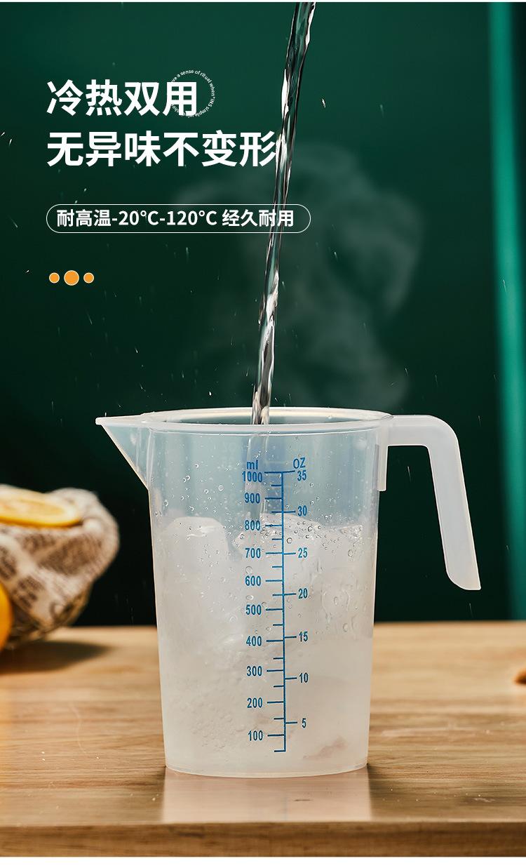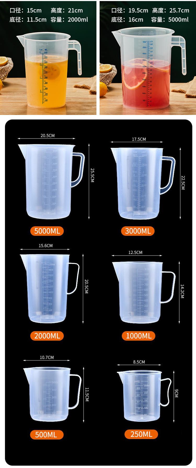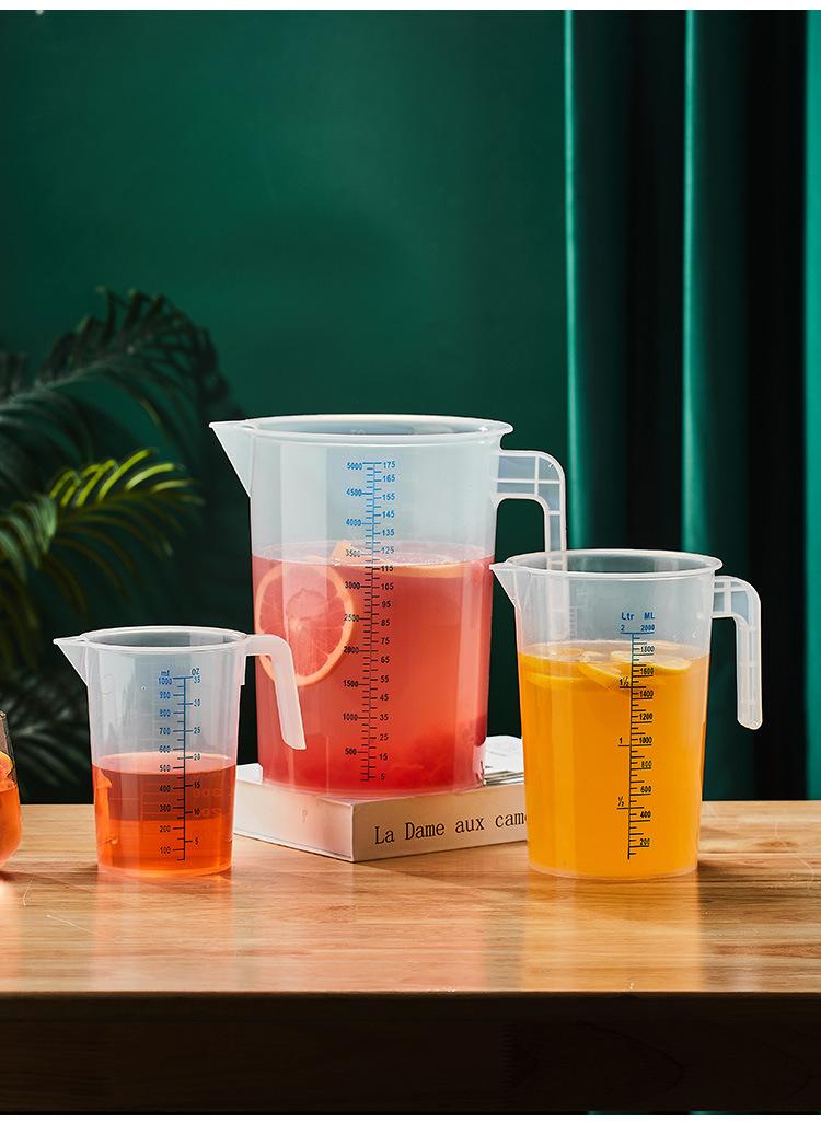 Taza medidora de plástico PP grueso de grado alimenticio con asa, taza de escala transparente, taza de PC para hornear, hervidor de agua frío, vaso medidor de mililitros