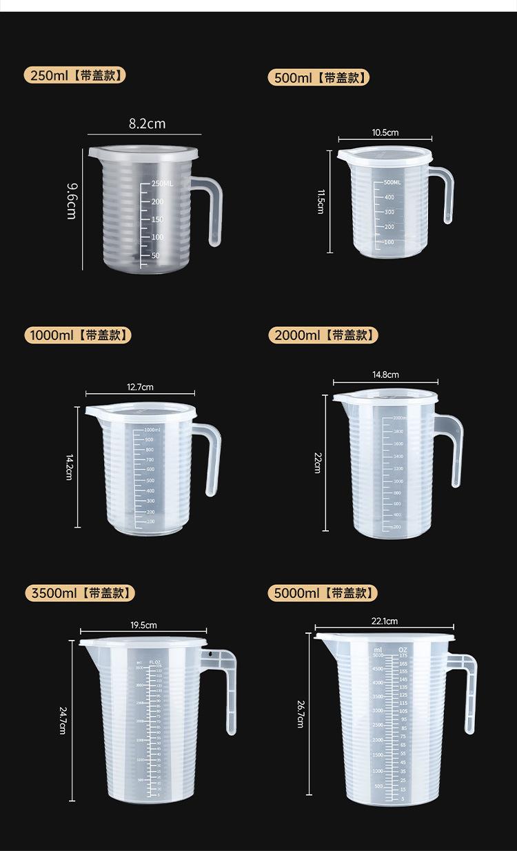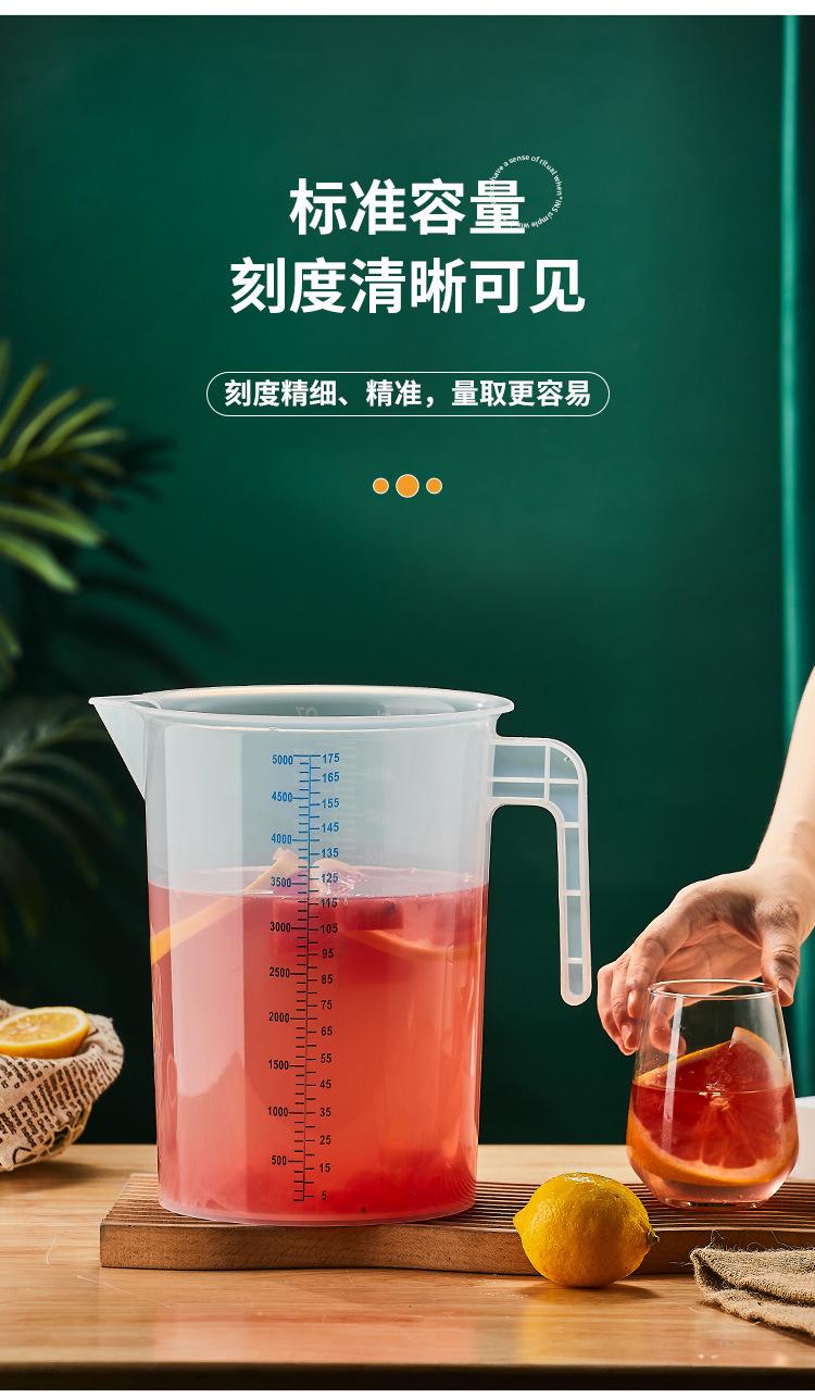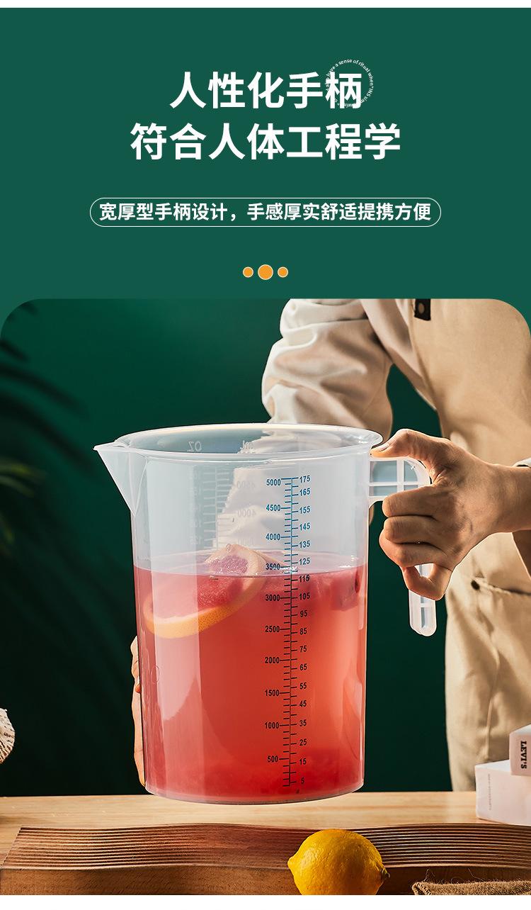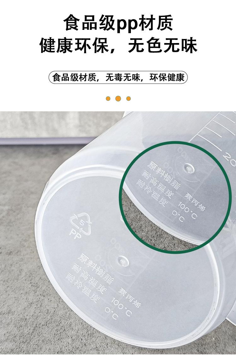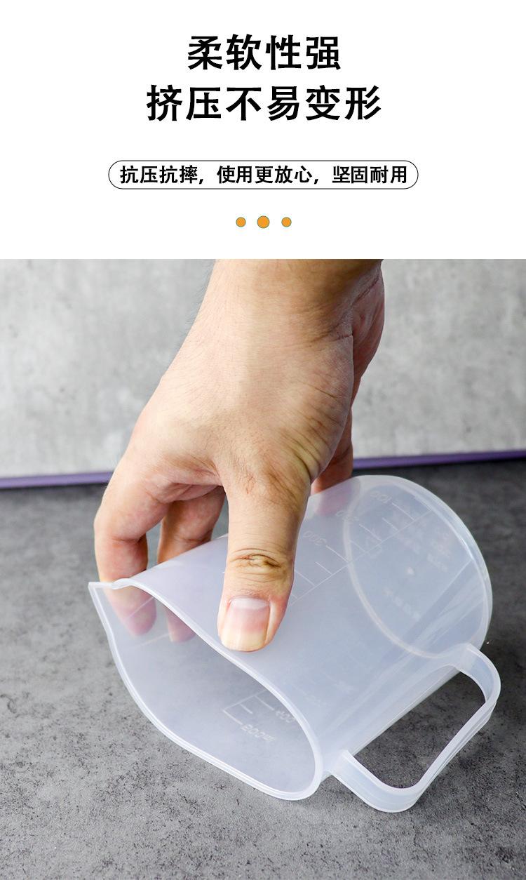 Taza medidora de plástico PP grueso de grado alimenticio con asa, taza de escala transparente, taza de PC para hornear, hervidor de agua frío, vaso medidor de mililitros