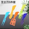 Nuevo en stock, juego de cinco piezas de cuchillo para queso, pala, tenedor y utensilio para hornear en caja de color, fábrica de comercio exterior al por mayor