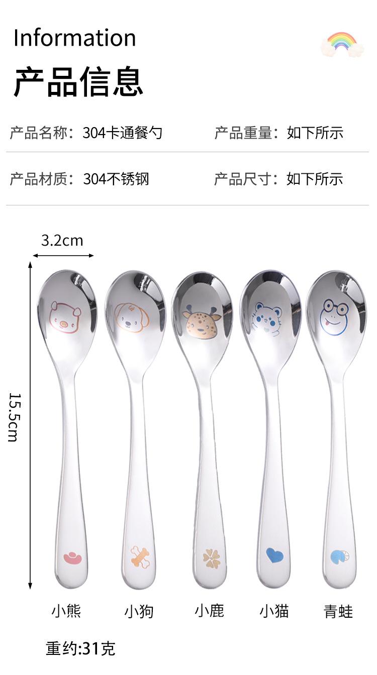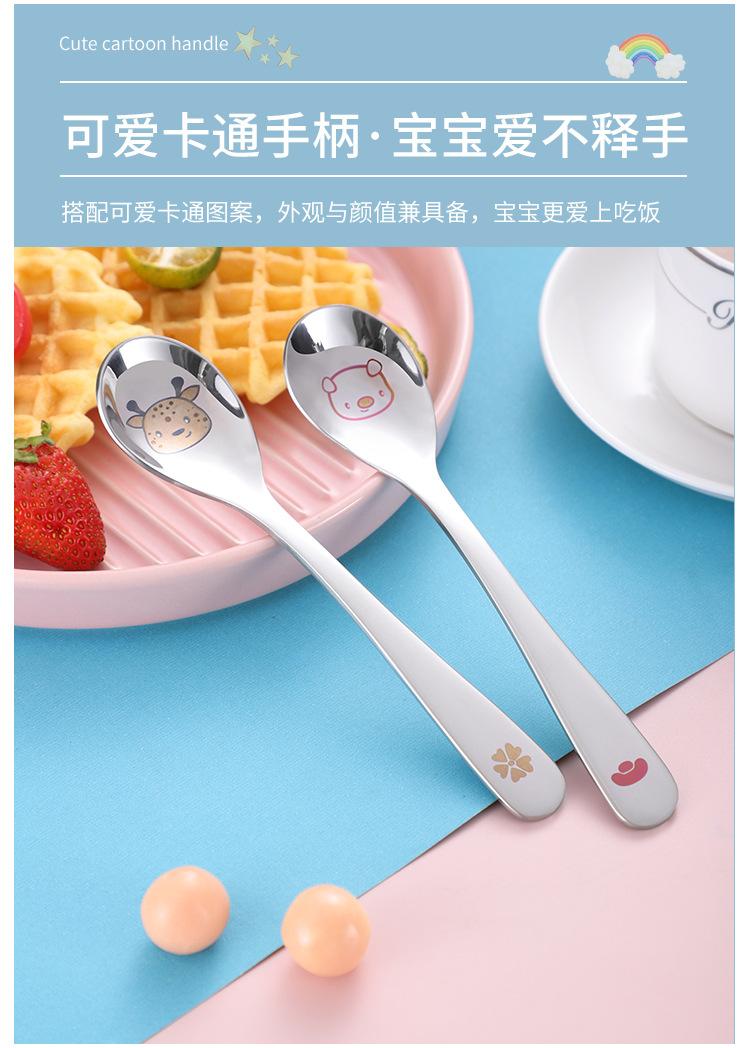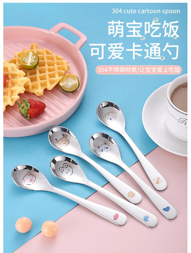 Cuchara de acero inoxidable 304 con dibujos animados, complemento alimenticio, cuchara para bebé, bonita cuchara para aprender a comer y alimentar, cuchara para niños.