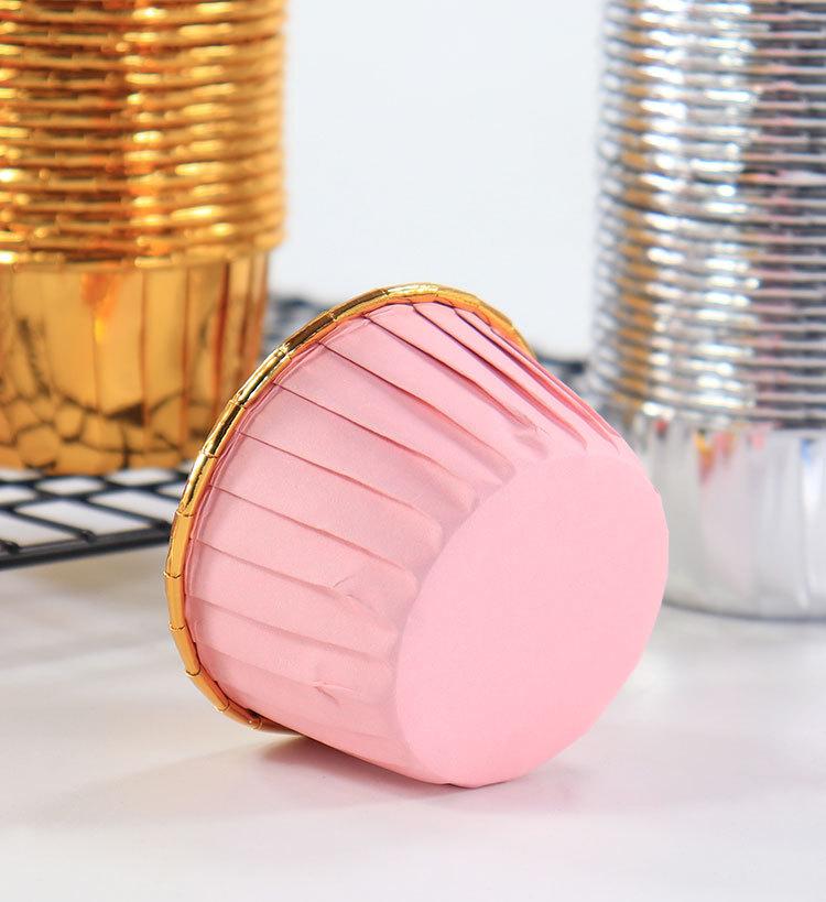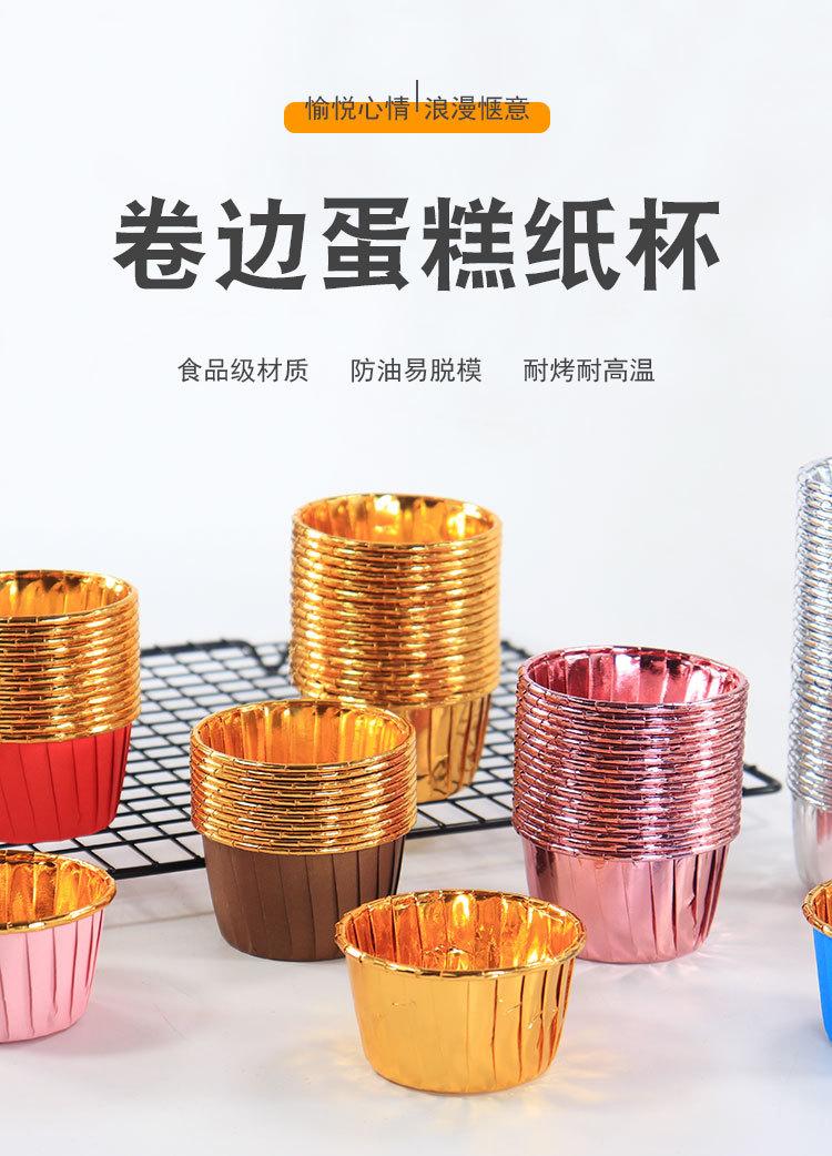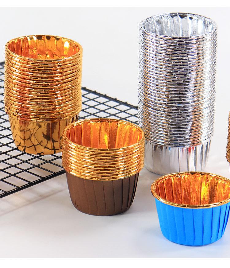Taza grande de rollo de película de oro y plata 5039 para muffins, pasteles, tazas para hornear de alta temperatura, tazas para muffins, pasteles, tazas de papel 100
