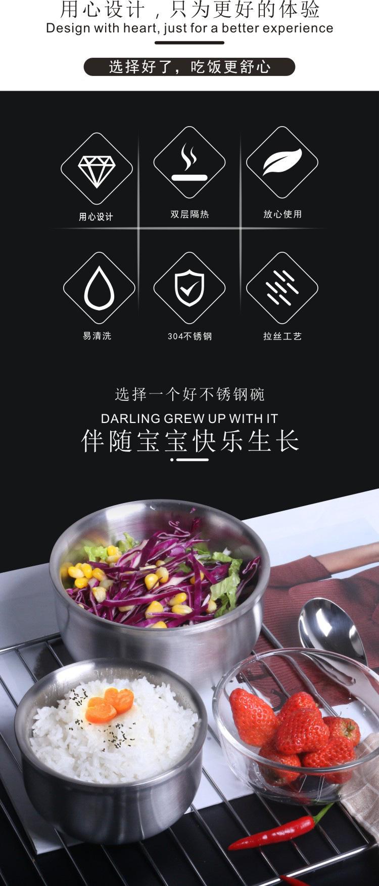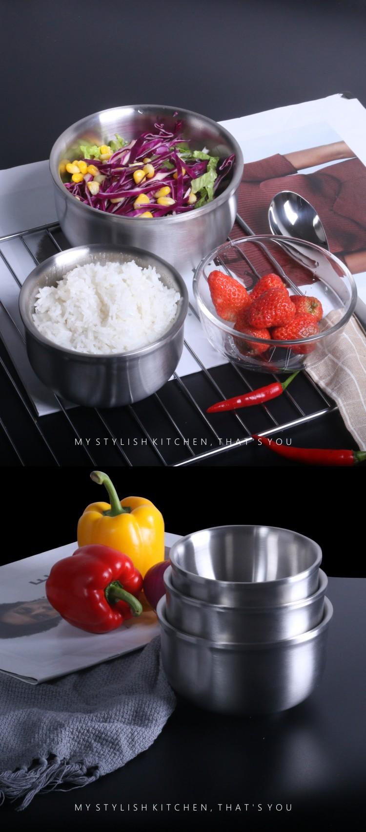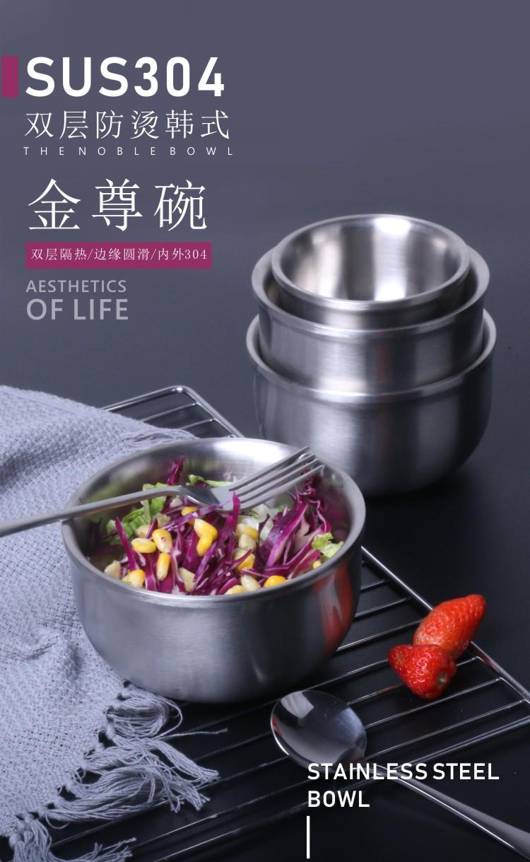 Tazón de fideos de acero inoxidable 304 de doble capa con aislamiento térmico grueso, tazón para niños, tazón para sopa para adultos, tazón para ensalada con aislamiento térmico