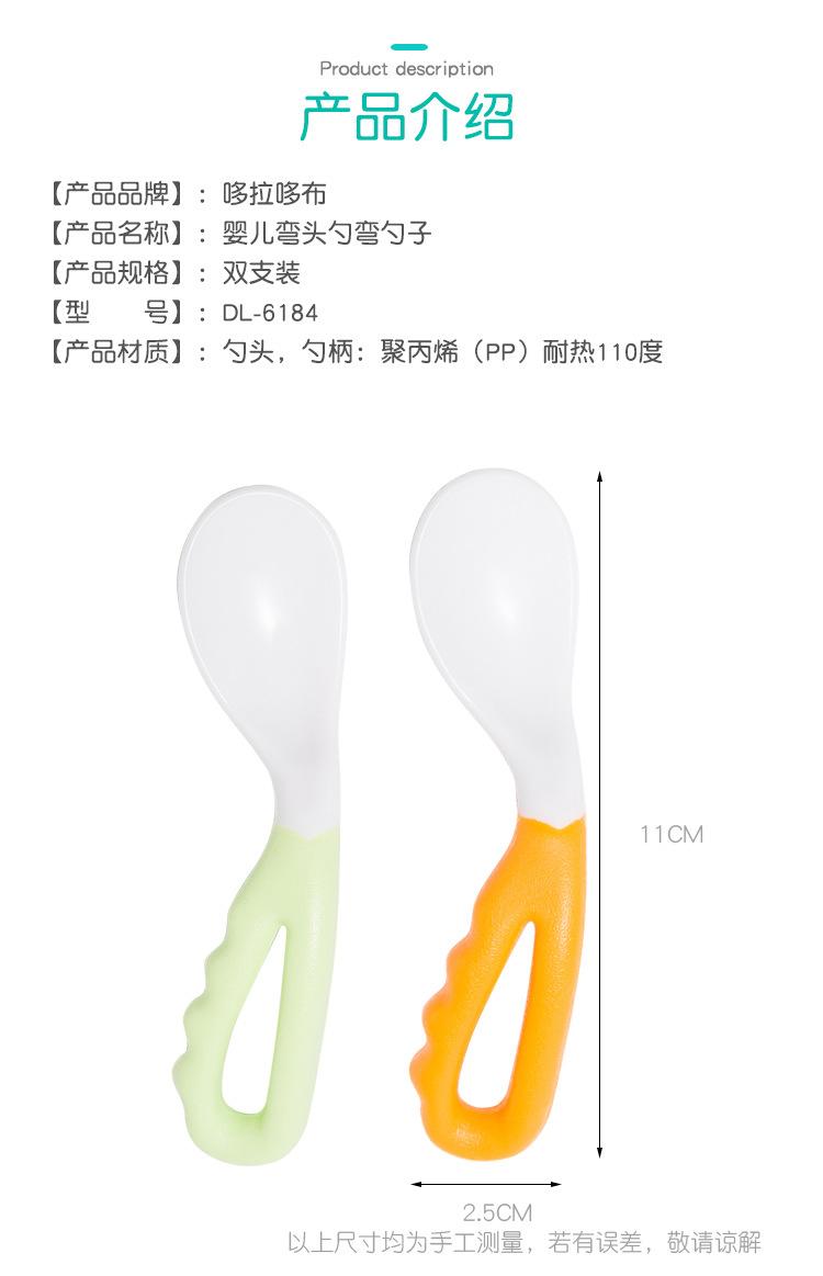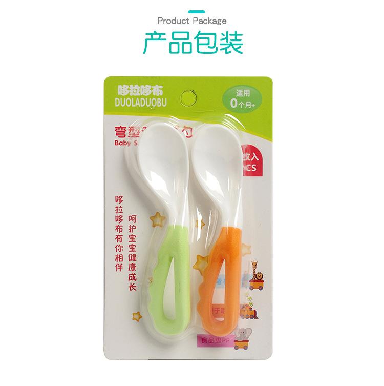 Dora Dobu bebé aprendiendo a comer entrenamiento bebé cuchara flexible alimentación independiente suplemento alimenticio cuchara de codo juego doble 6184