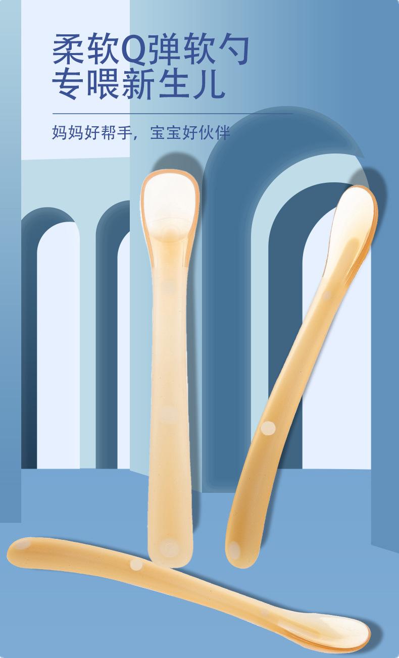 Cuchara para bebé para bebés recién nacidos de cabeza suave 2 piezas cuchara de silicona para alimentos complementarios juego de cubiertos para alimentación 74902