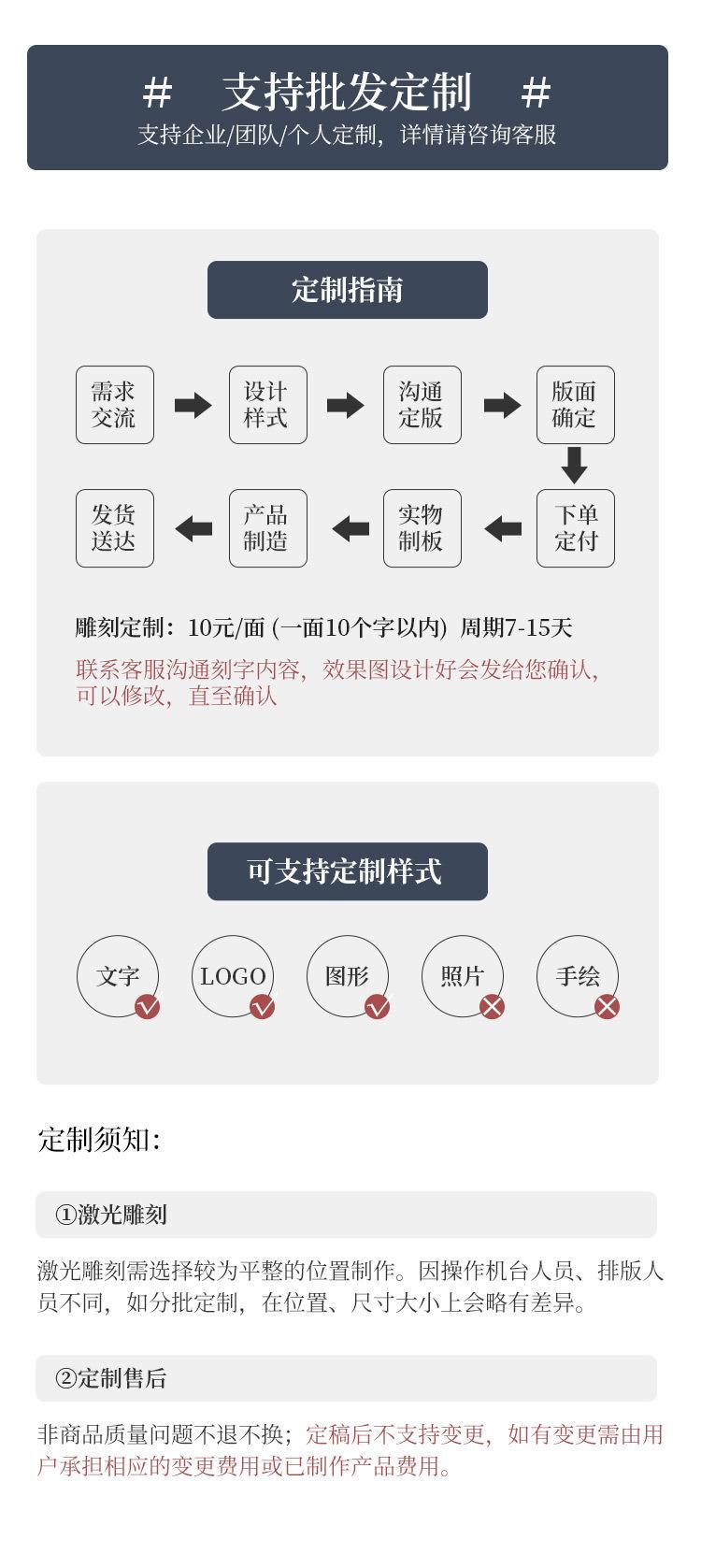 ●La tarifa de personalización del logotipo se cobra por separado, el color único es de 100 yuanes, el color doble es de 200 yuanes, etc., el grabado láser cuesta entre 1 y 2 yuanes según el tamaño.