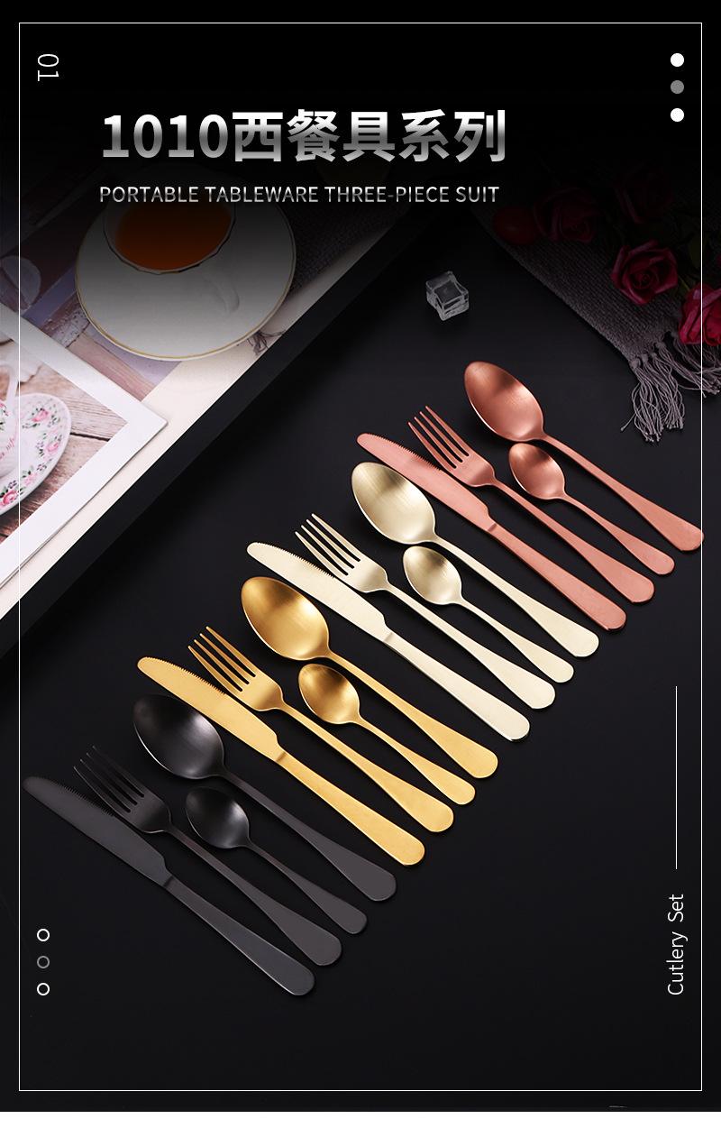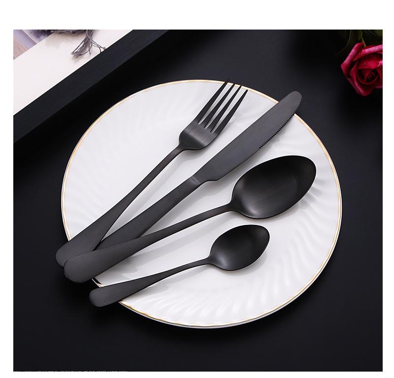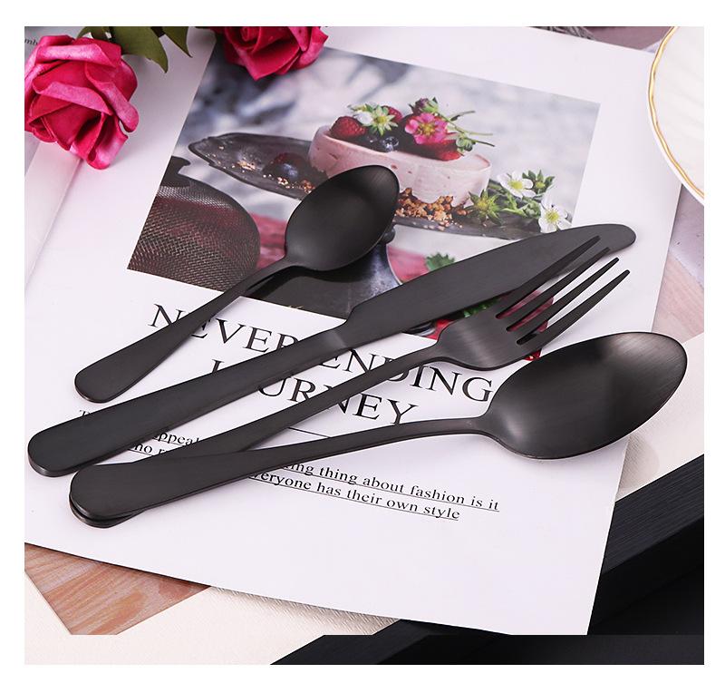 Lijado 1010 cuchillo y tenedor cuchara de acero inoxidable negro chapado en oro cuchillo y tenedor cuchara vajilla de cuatro piezas de estilo occidental