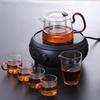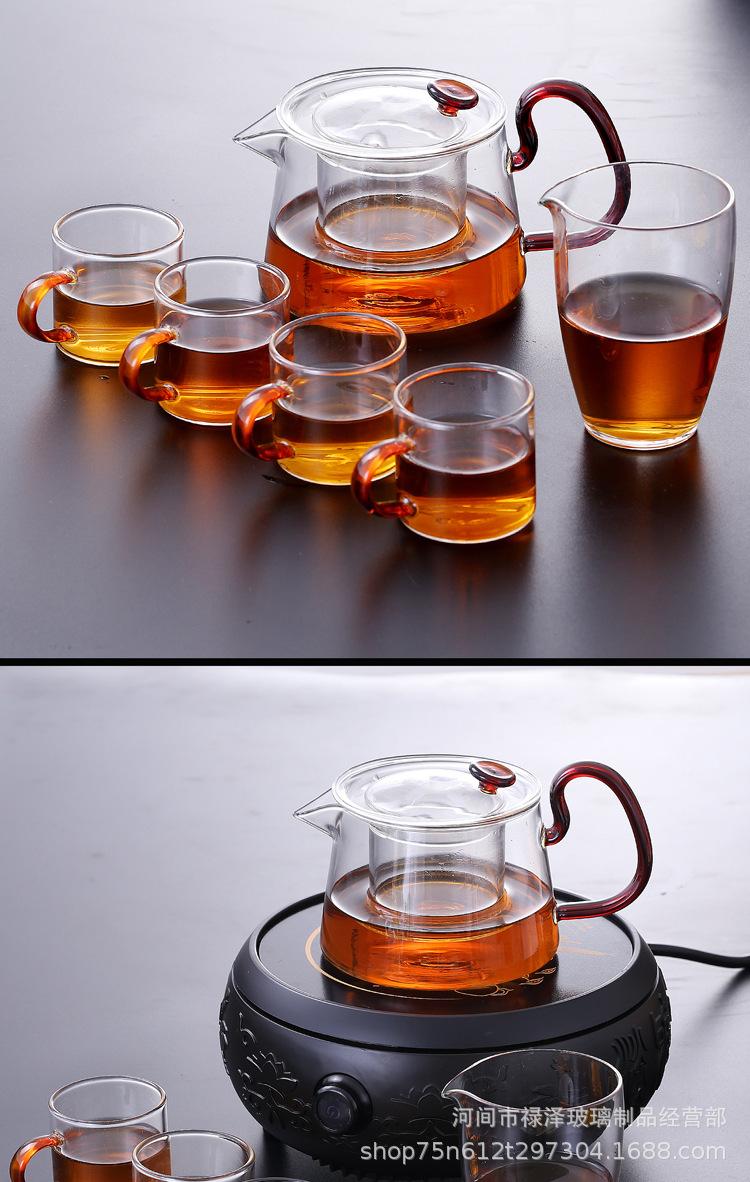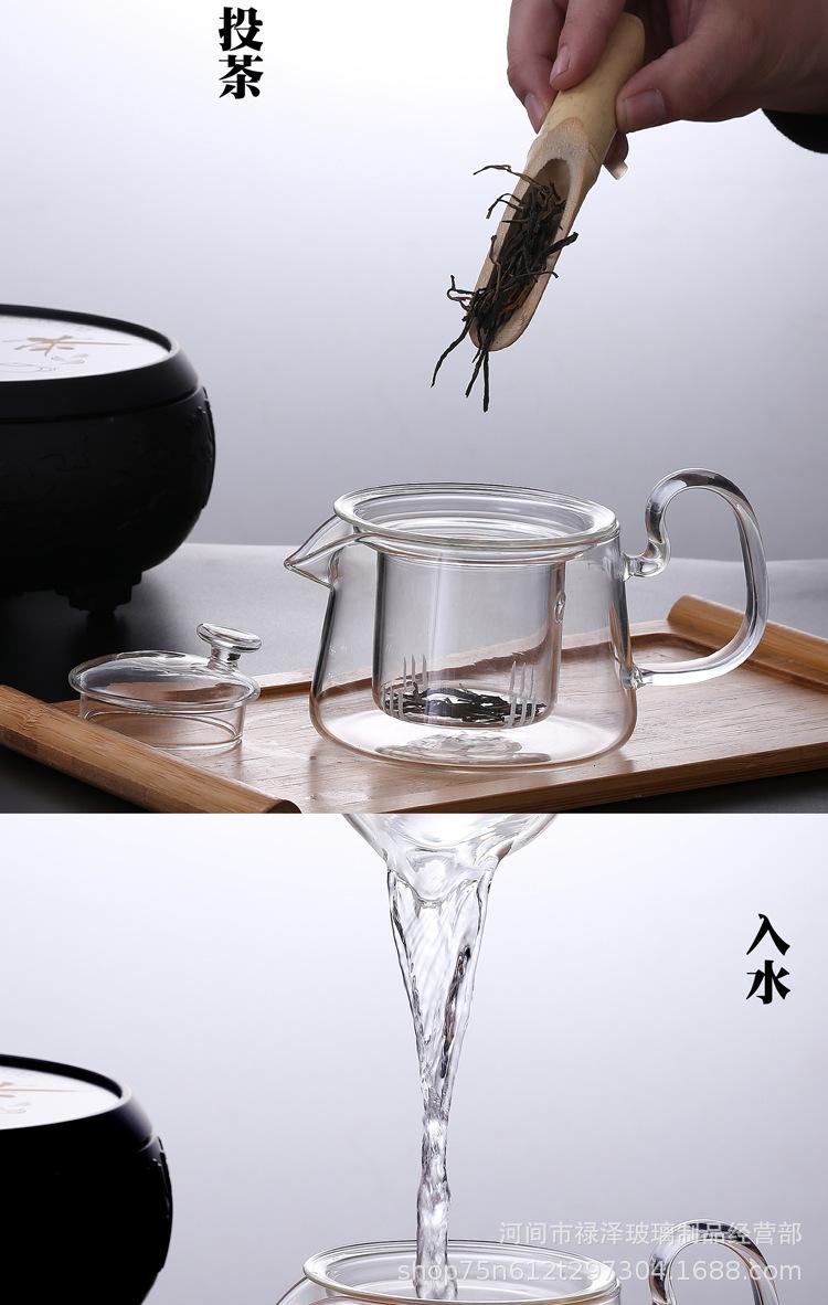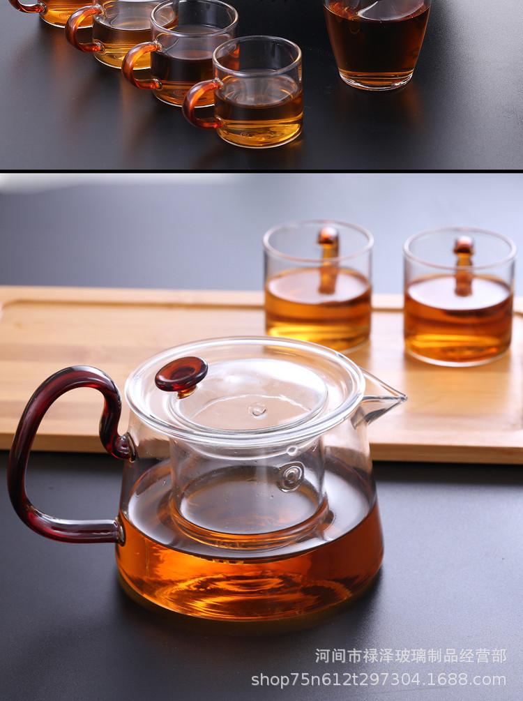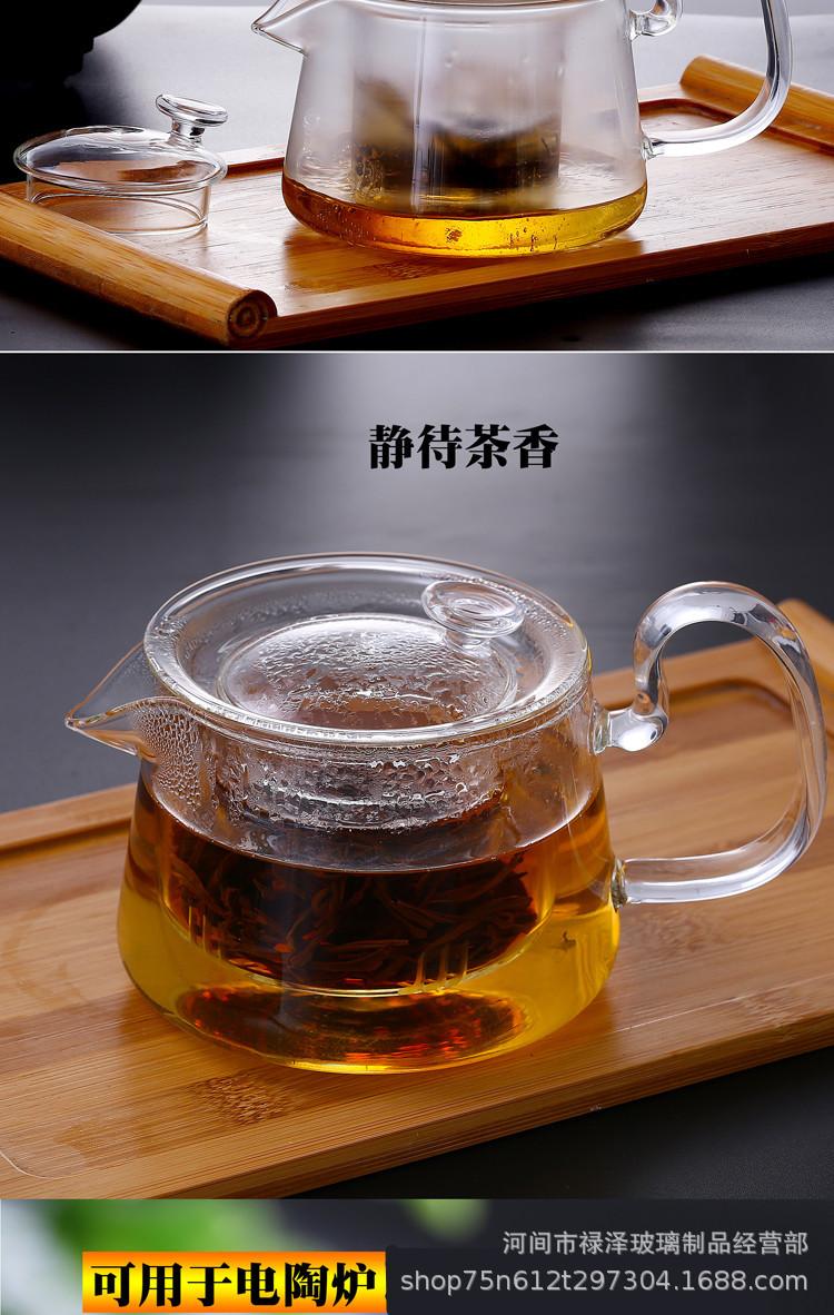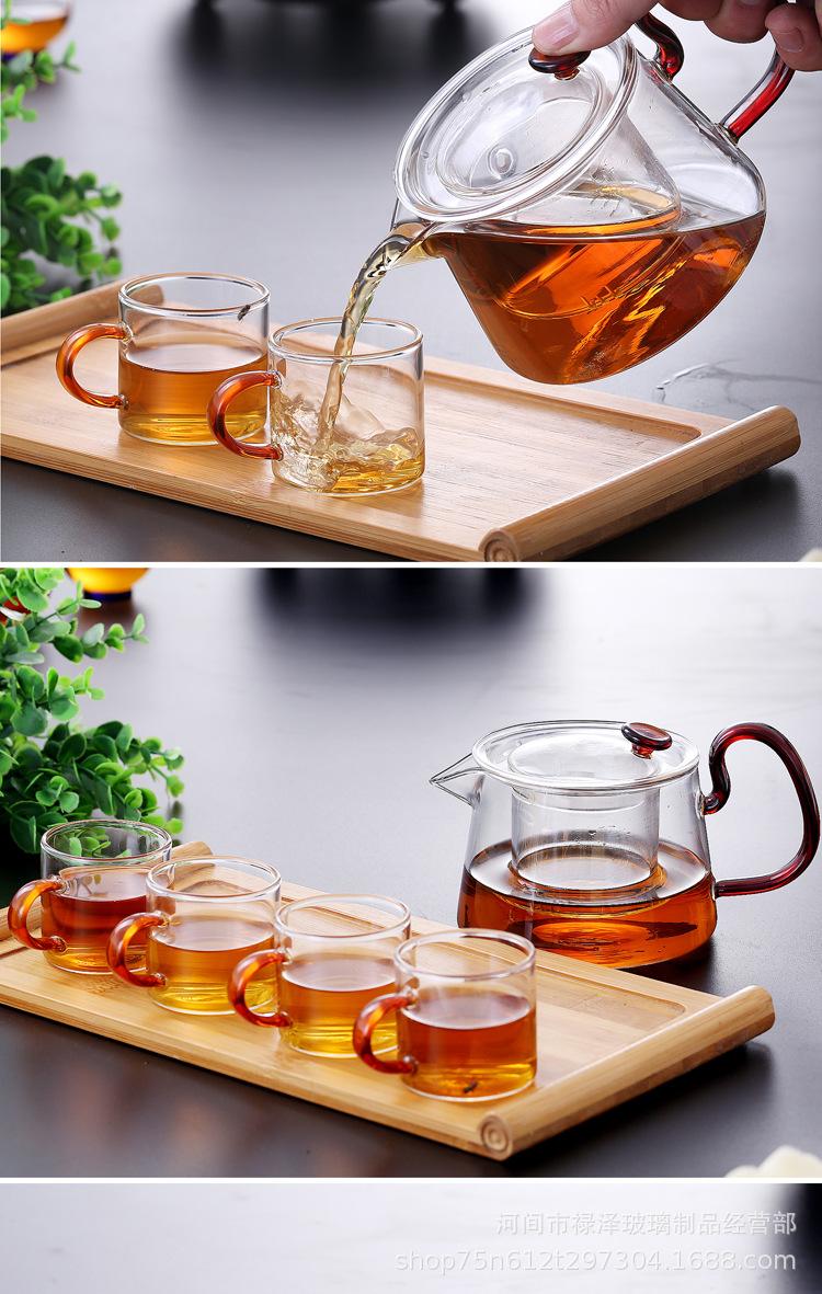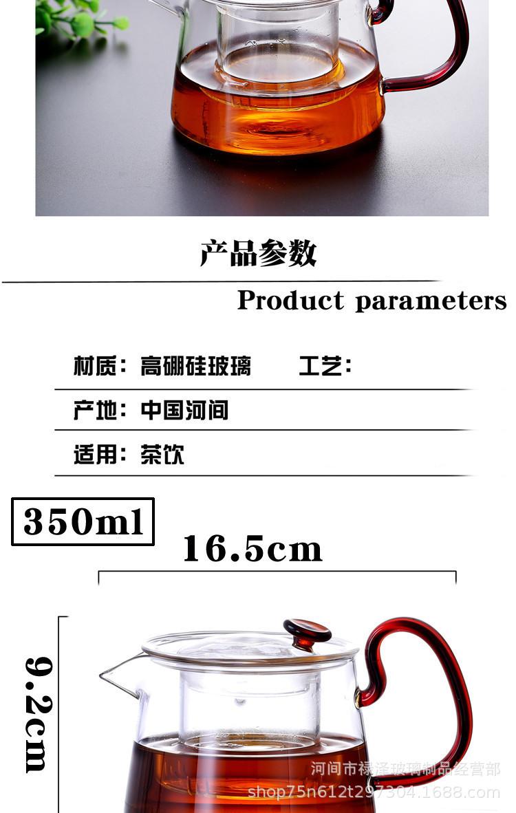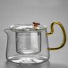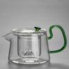 Tetera de flores de vidrio grueso transparente para el hogar al por mayor, tetera con filtro de asa de color, tetera de vidrio de borosilicato para hervir té de flores