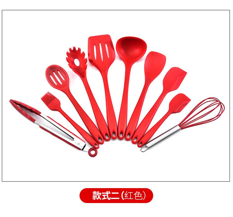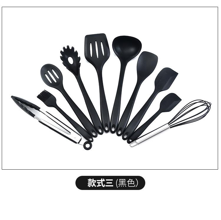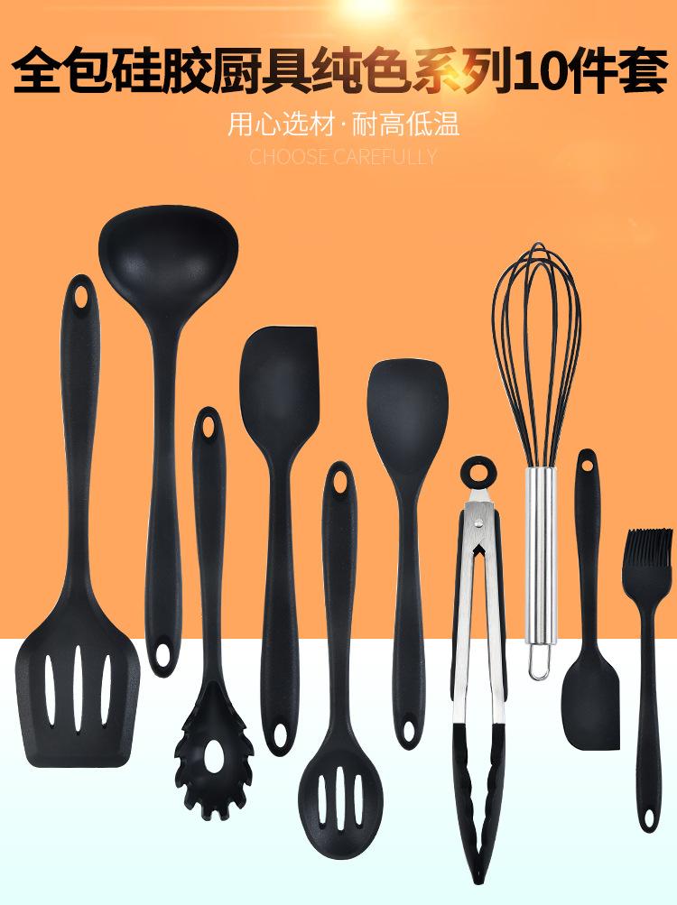 Juego de utensilios de cocina de silicona todo incluido de 10 piezas, suministros de cocina, espátula y cuchara integradas para cocinar, juego de utensilios de cocina de silicona