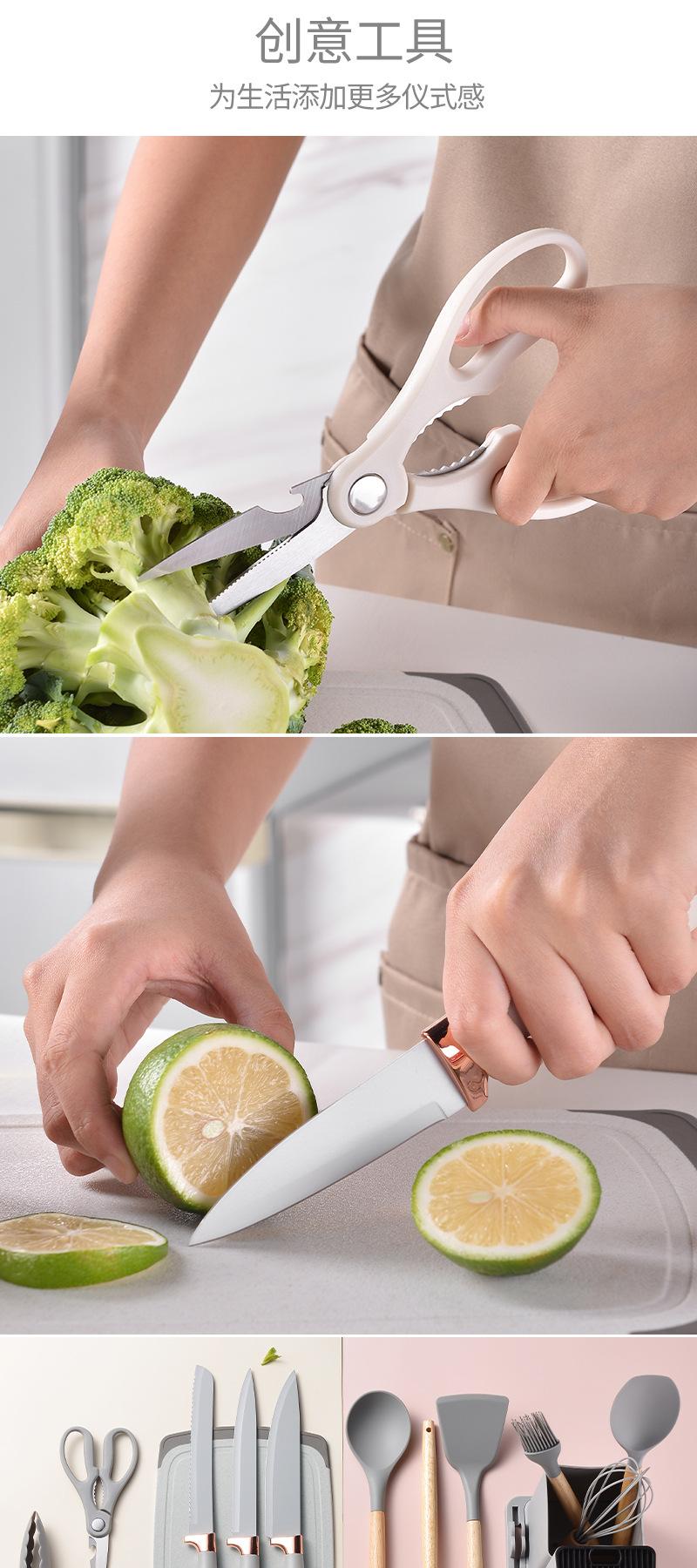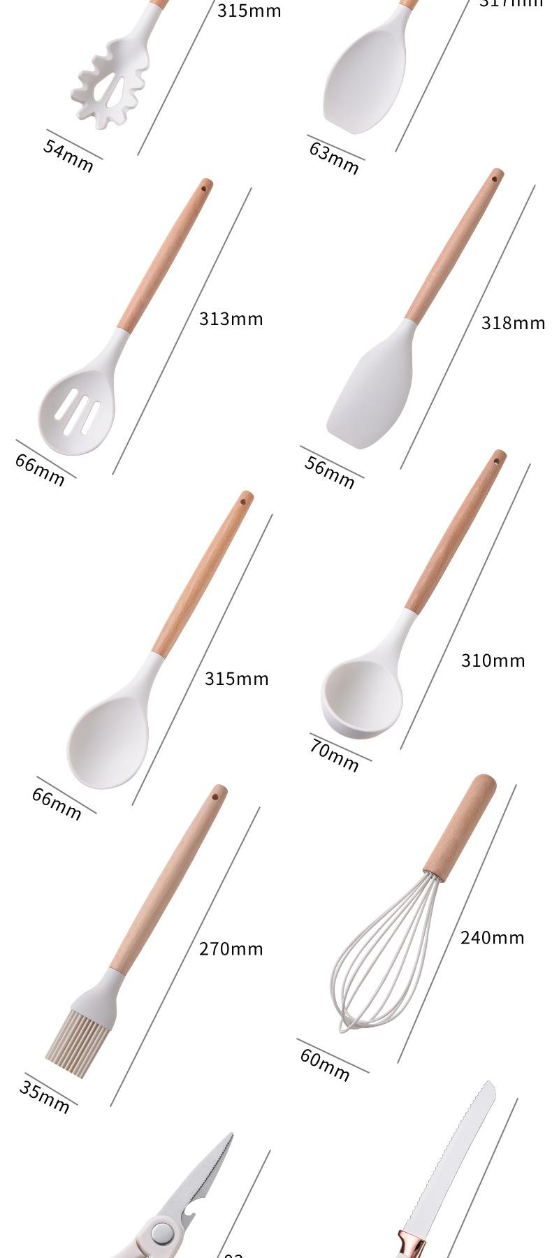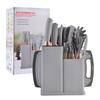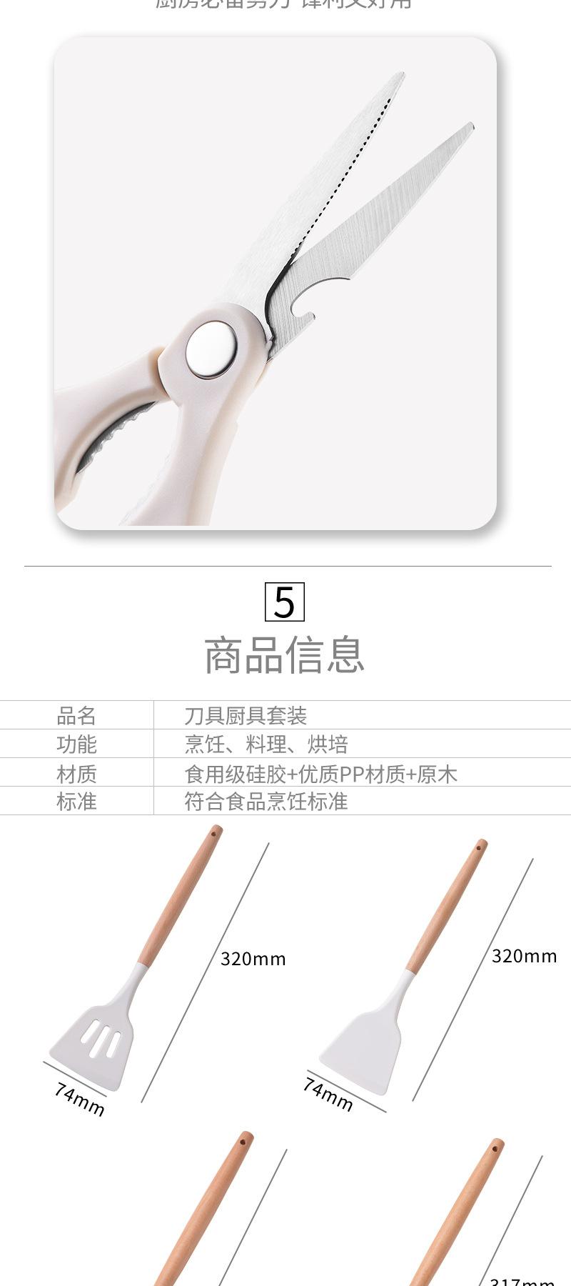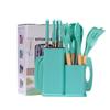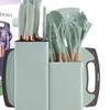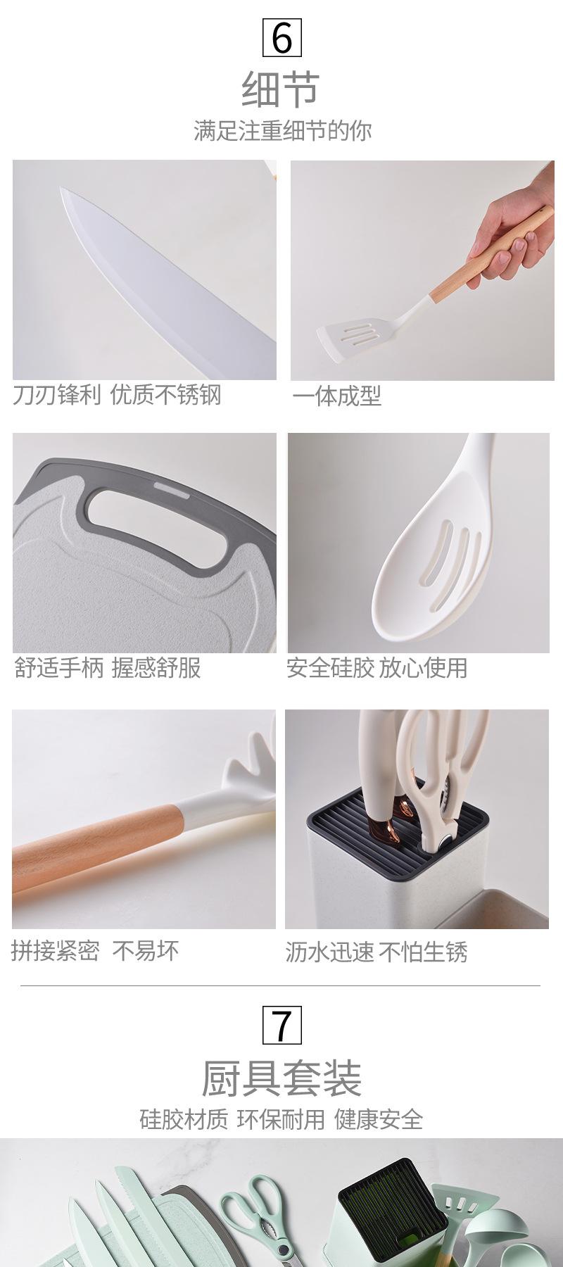 Juego de utensilios de cocina de silicona transfronterizos, 19 piezas, juego de combinación de cortadores, mango de madera, pala, cuchara, juego de cuchillos de acero inoxidable con cubo de almacenamiento