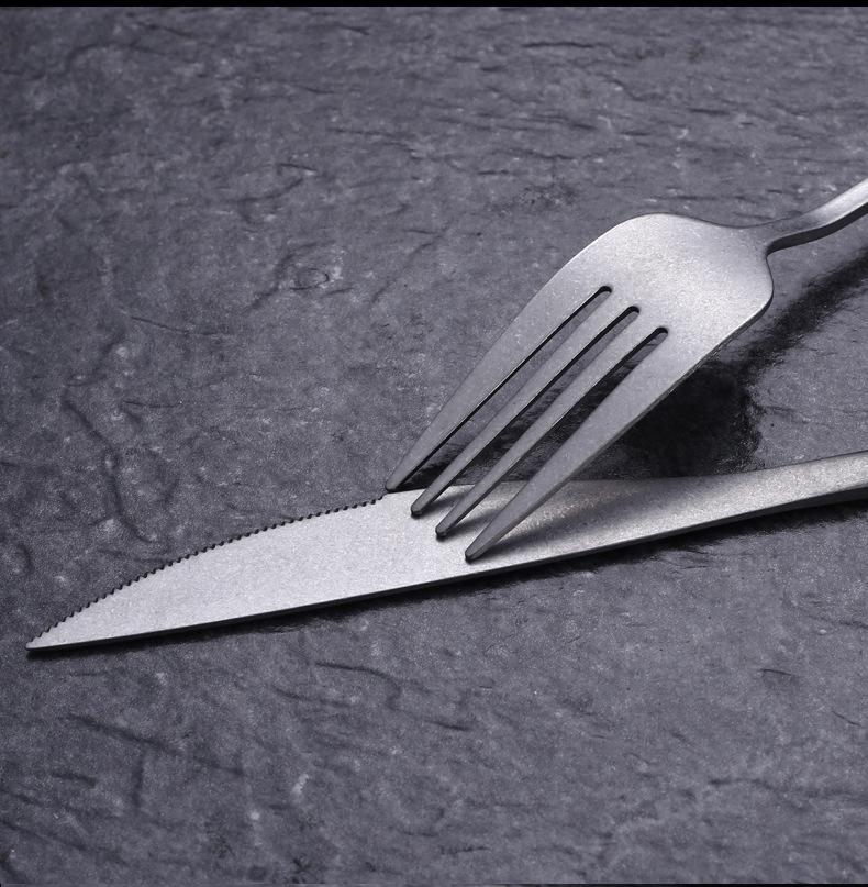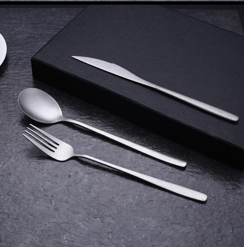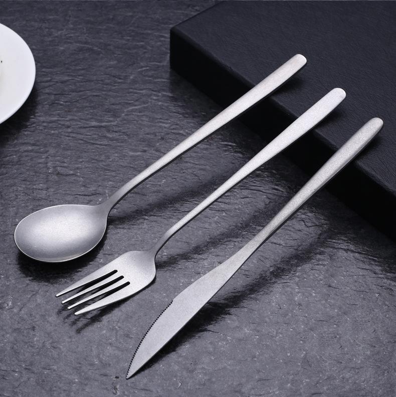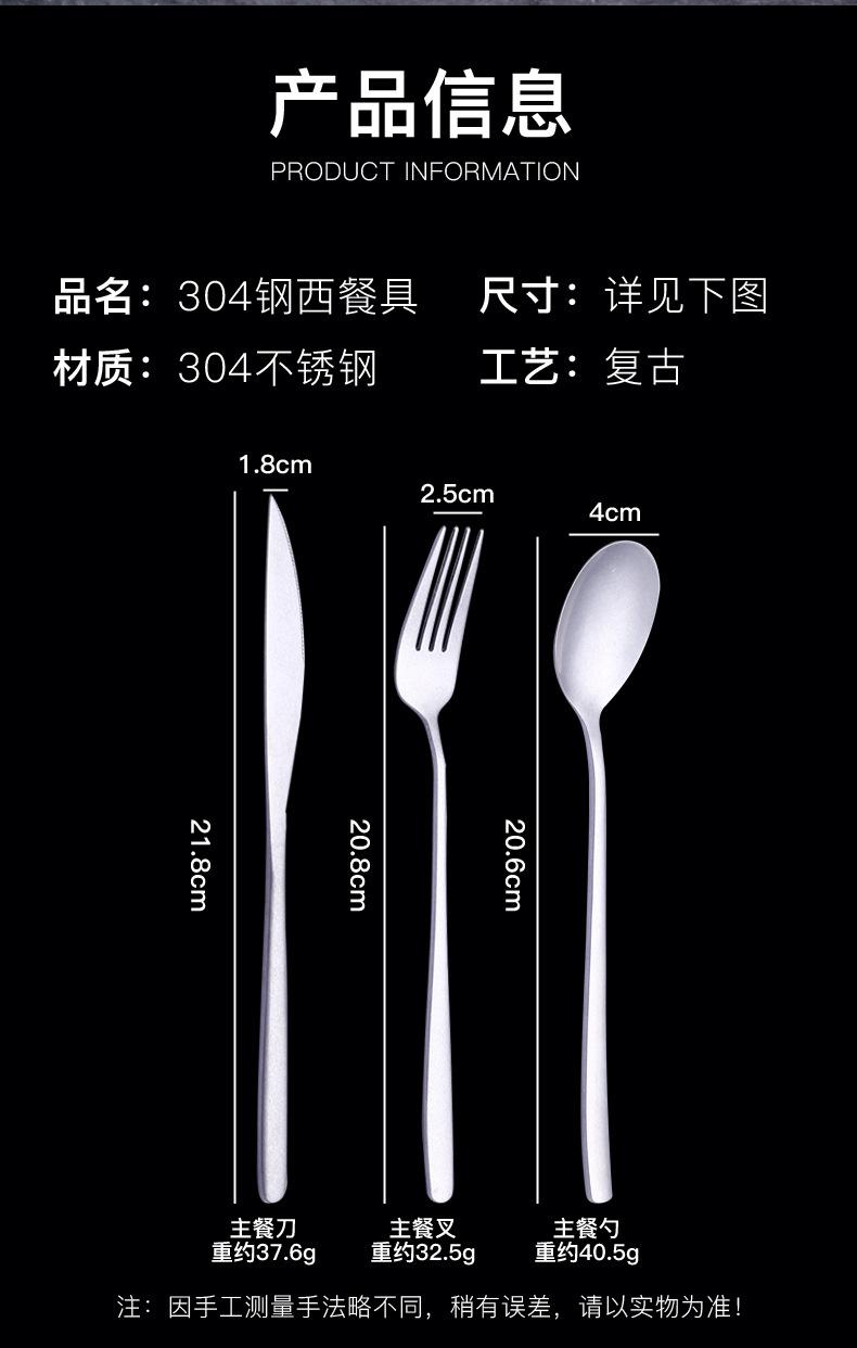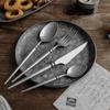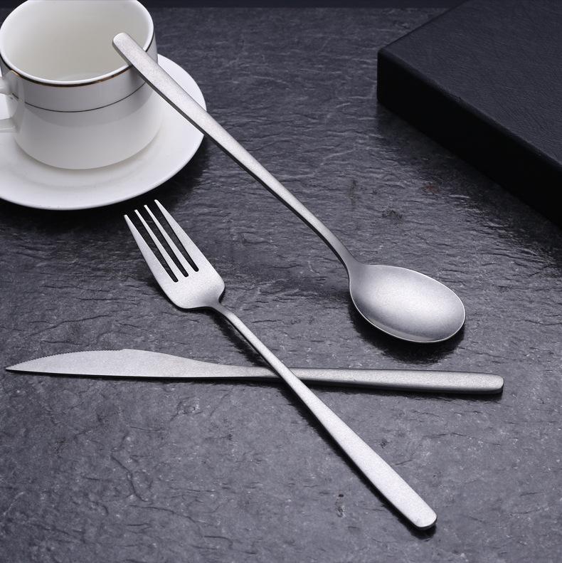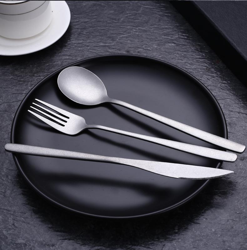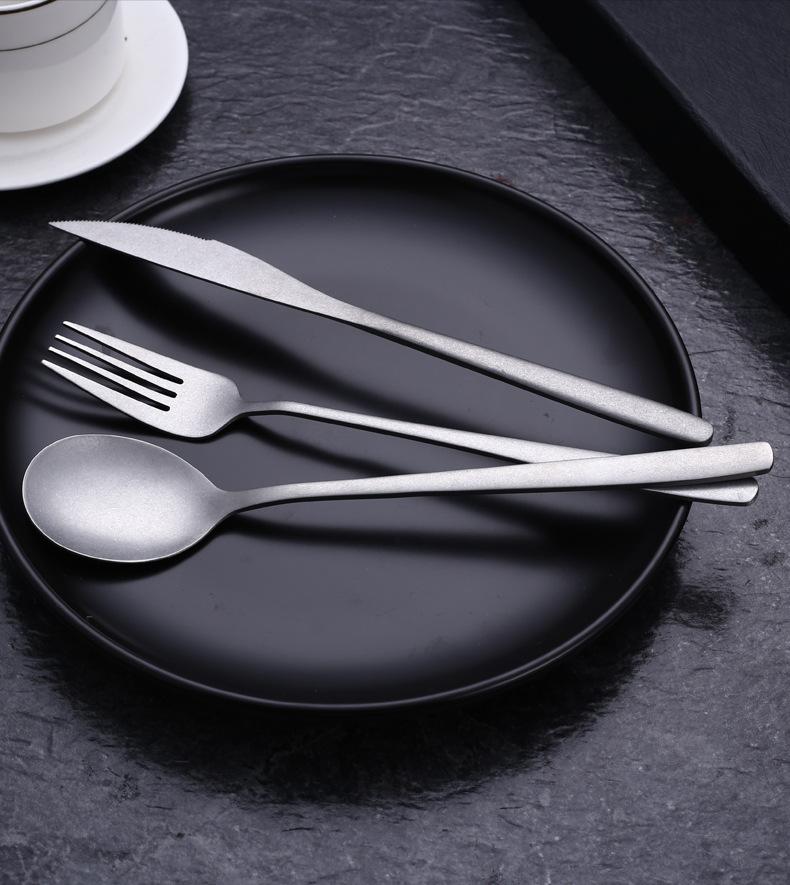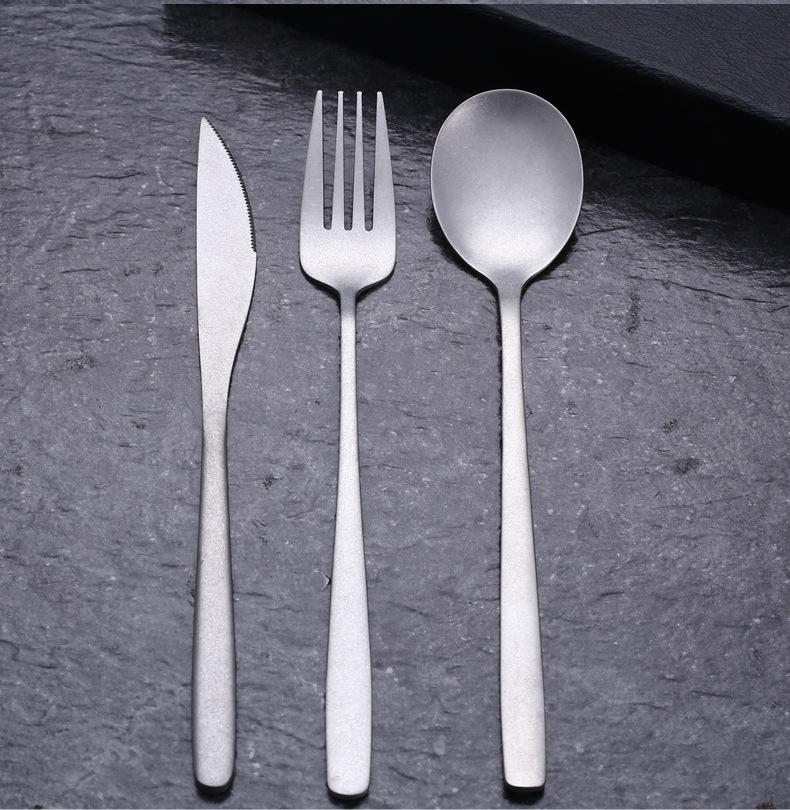 Cuchillo para Carne de Restaurante Occidental, Cuchara para Sopa, Tenedor de Postre, Vajilla Vintage Distressed Copo de Nieve Arena, Juego de Cuchillo, Tenedor y Cuchara de Acero Inoxidable 304