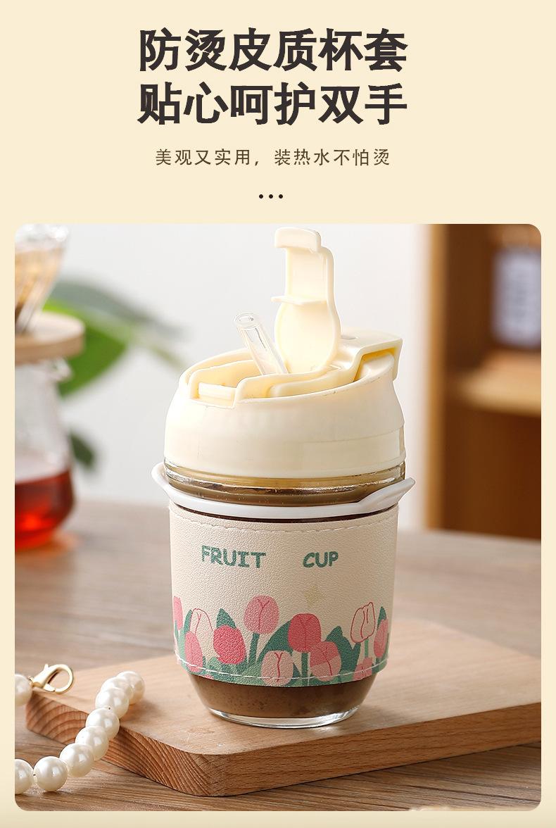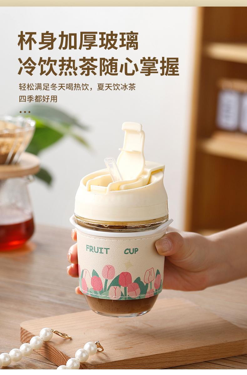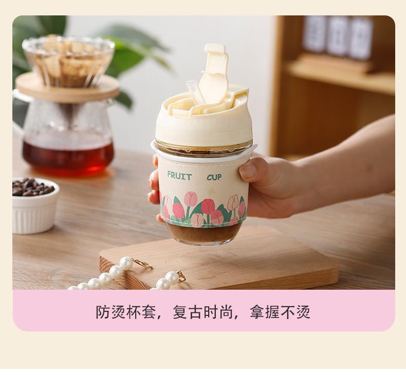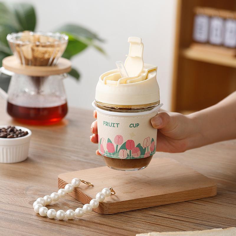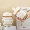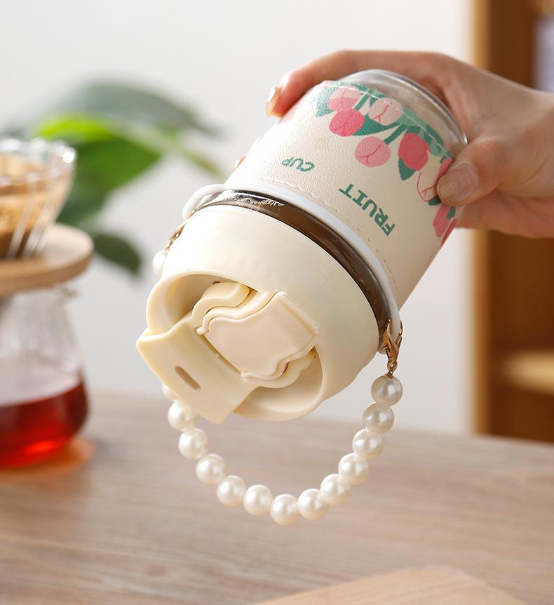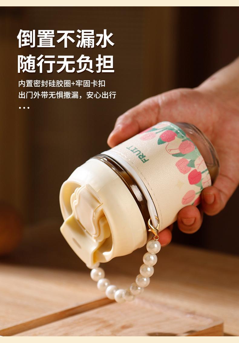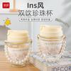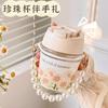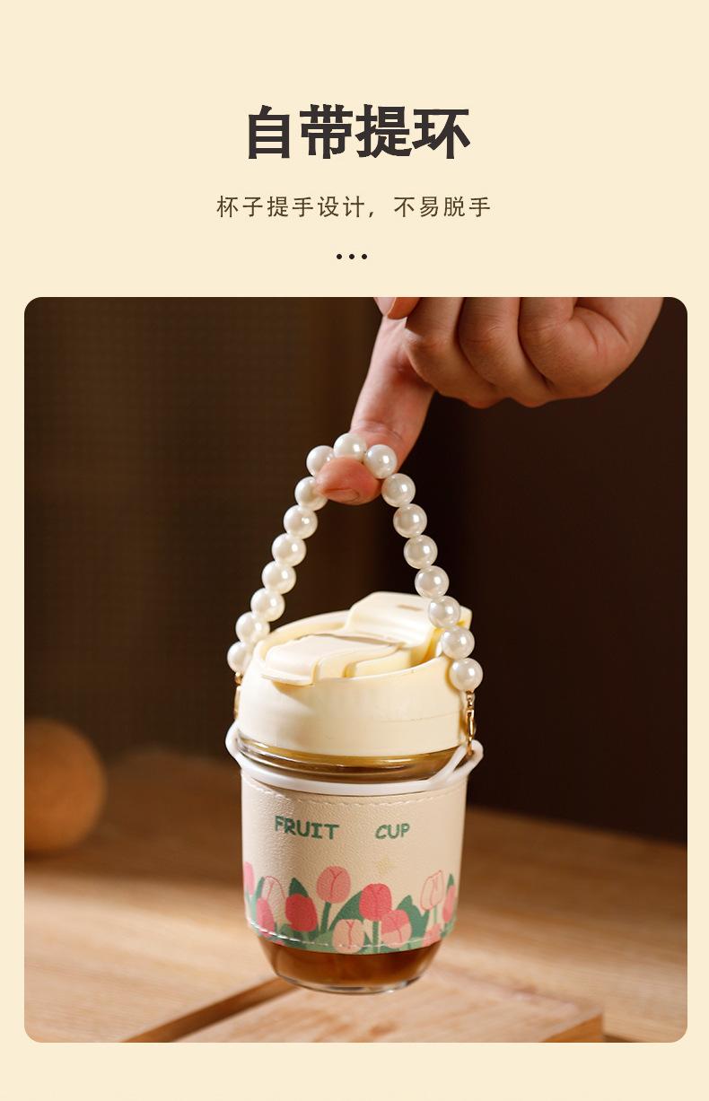 Vaso de Cristal con Perlas de Moda Vaso de Souvenir Vaso de Cristal con Pajita y Tapa Vaso Portátil para Bebidas de Café