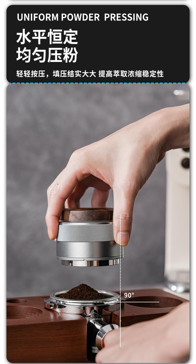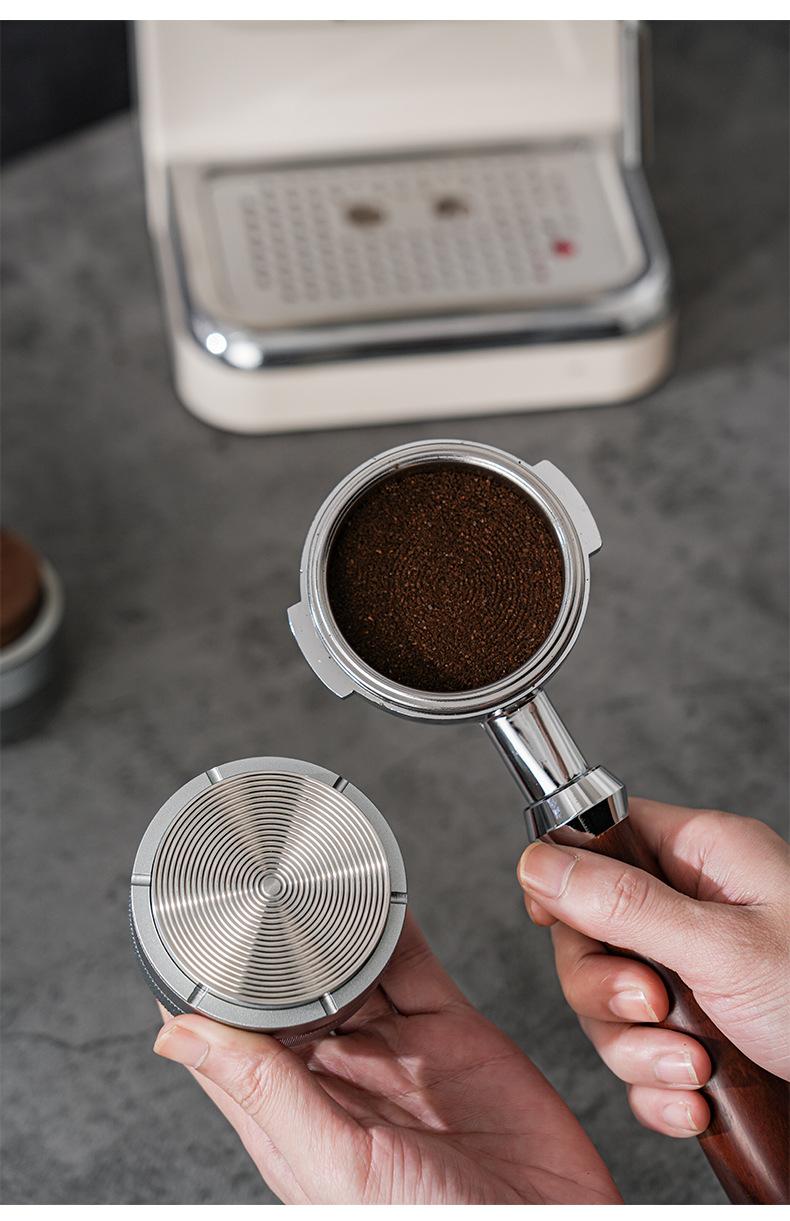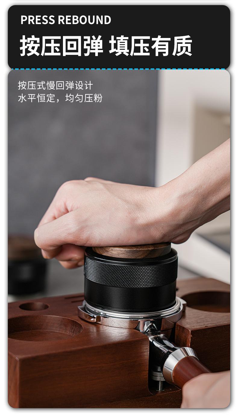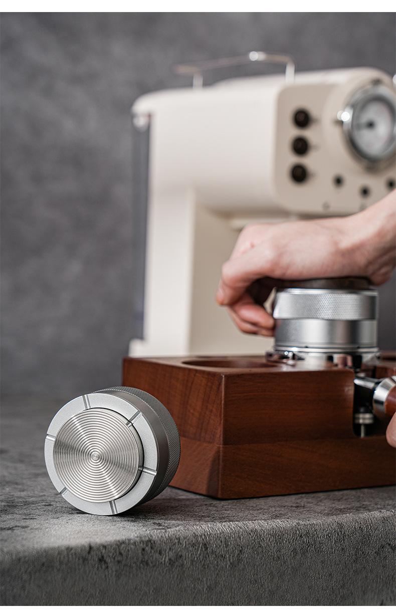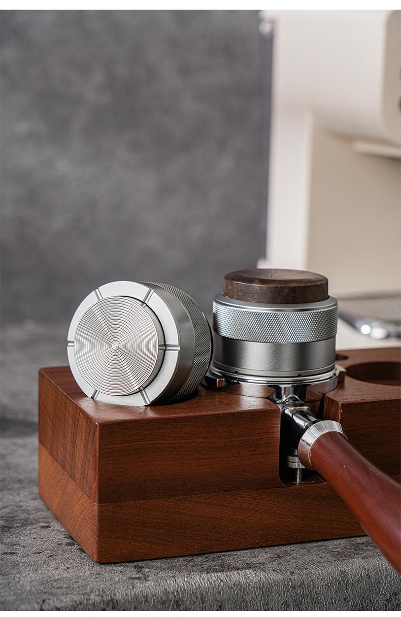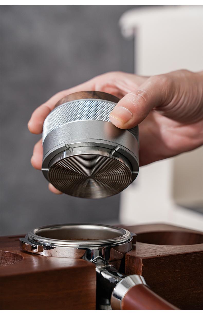 Prensa de café en polvo de tela con martillo de prensa de nogal, prensa de polvo de presión constante, café italiano de 51/58 mm