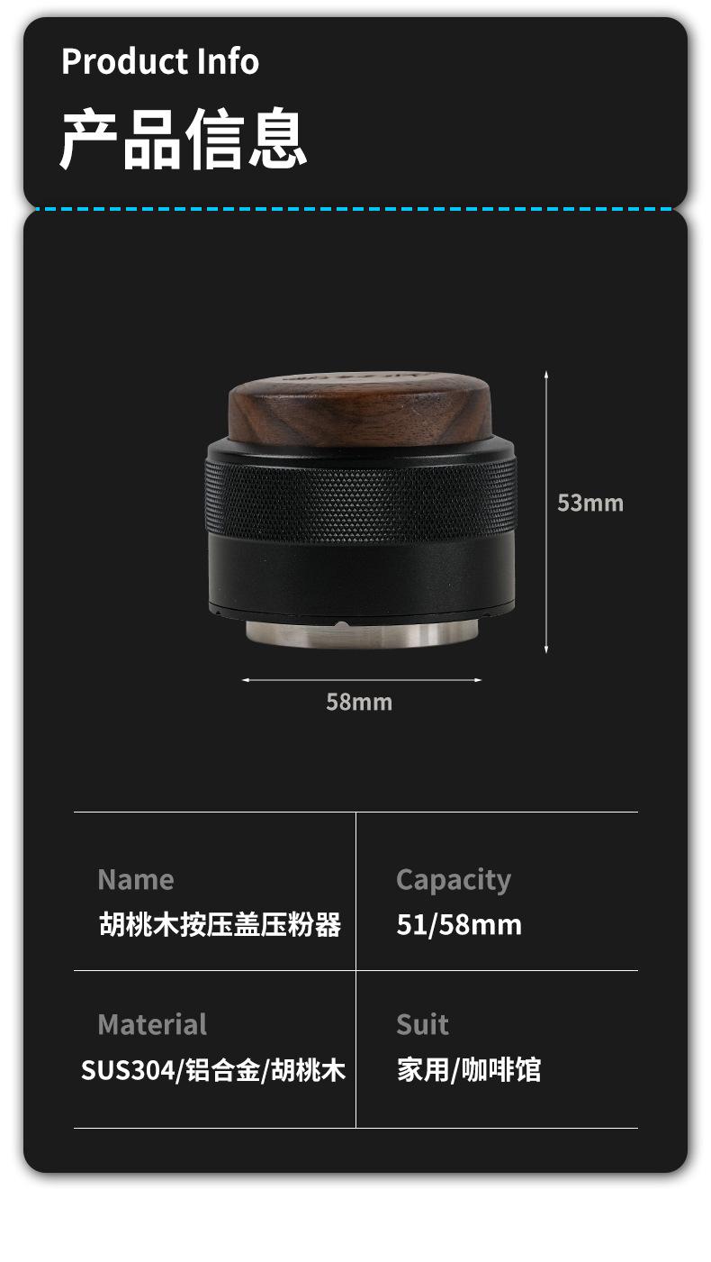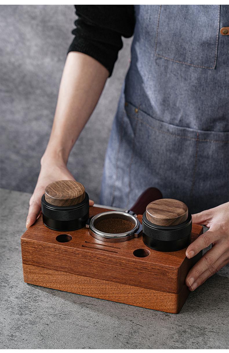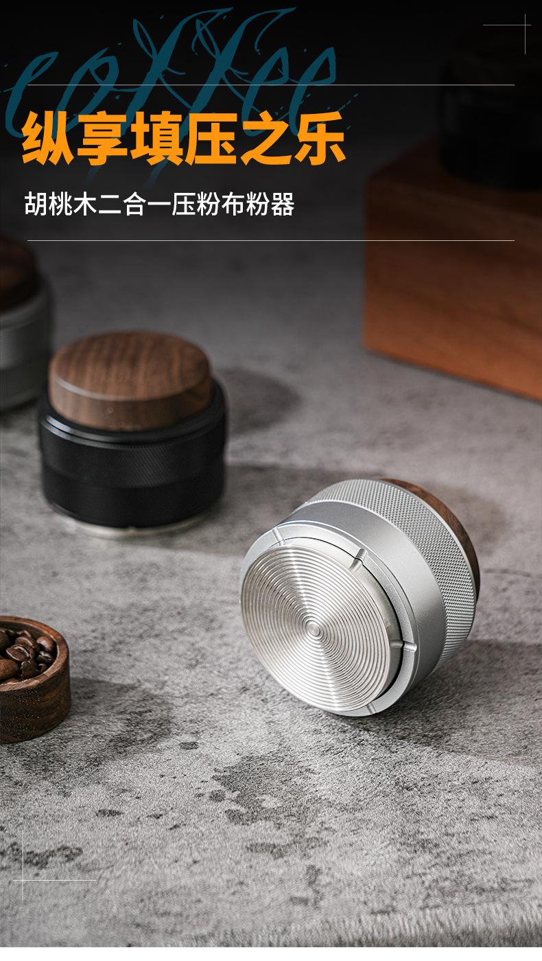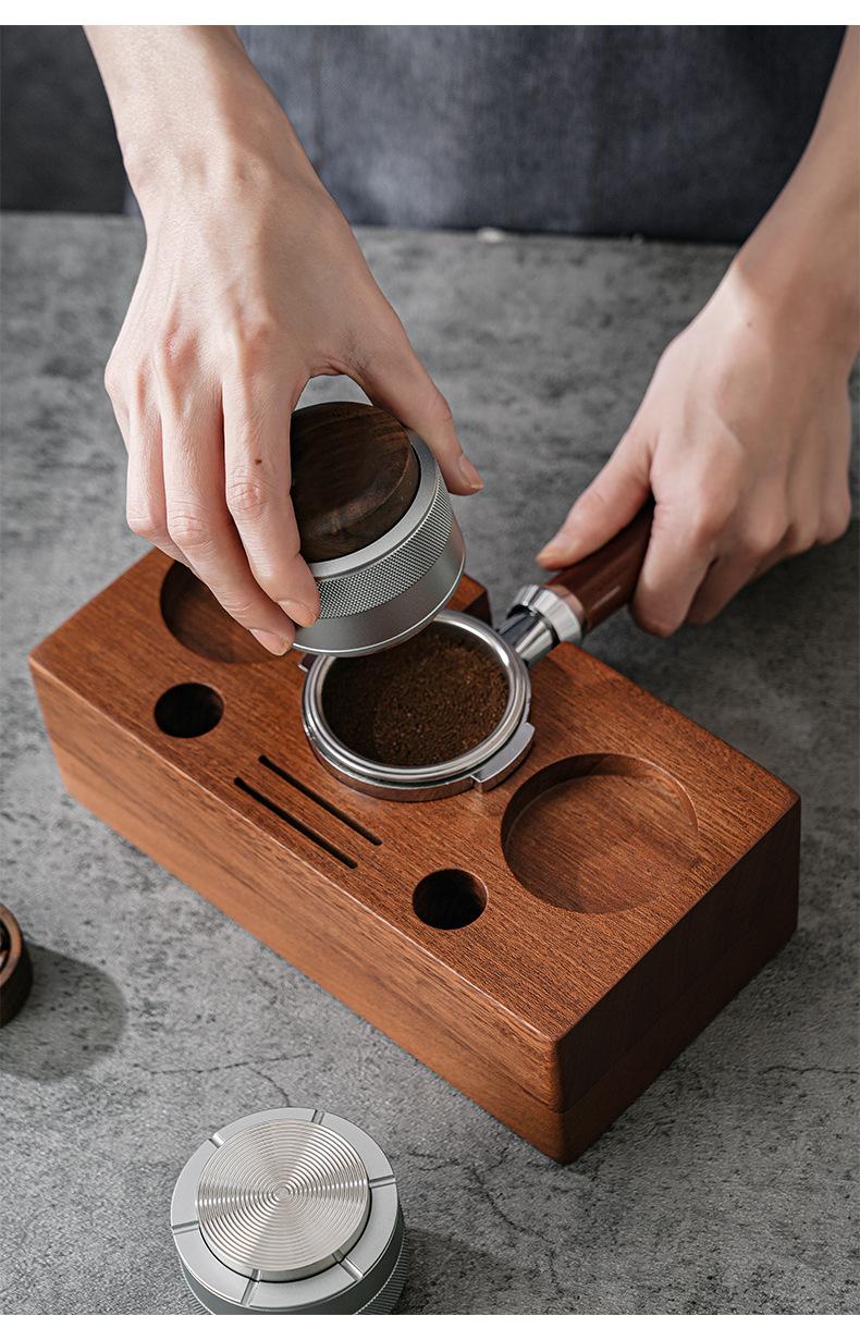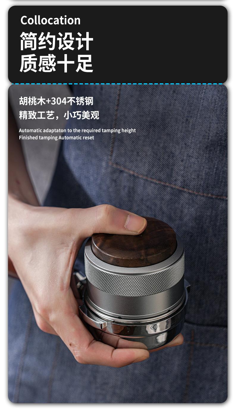 Prensa de café en polvo de tela con martillo de prensa de nogal, prensa de polvo de presión constante, café italiano de 51/58 mm