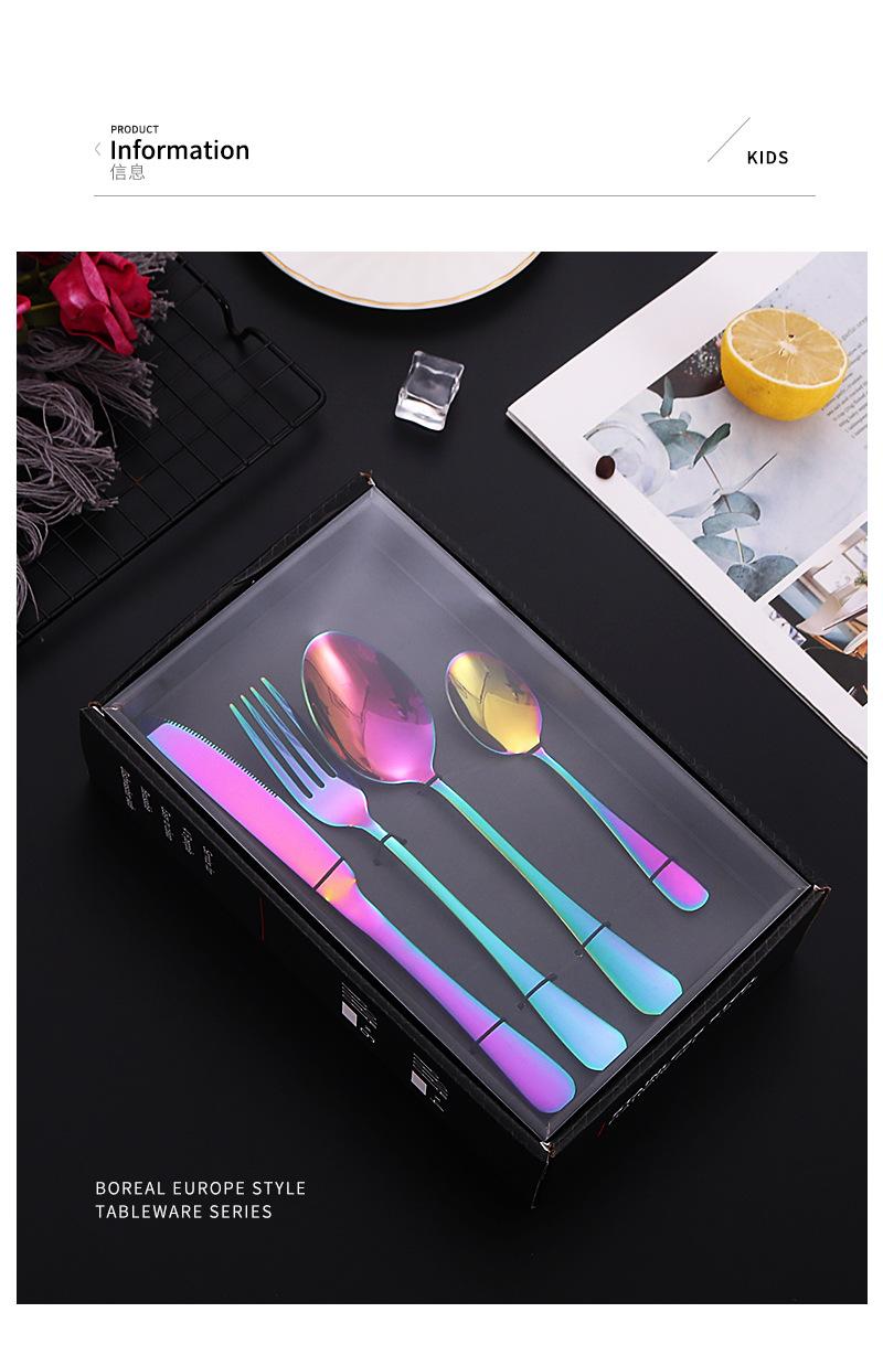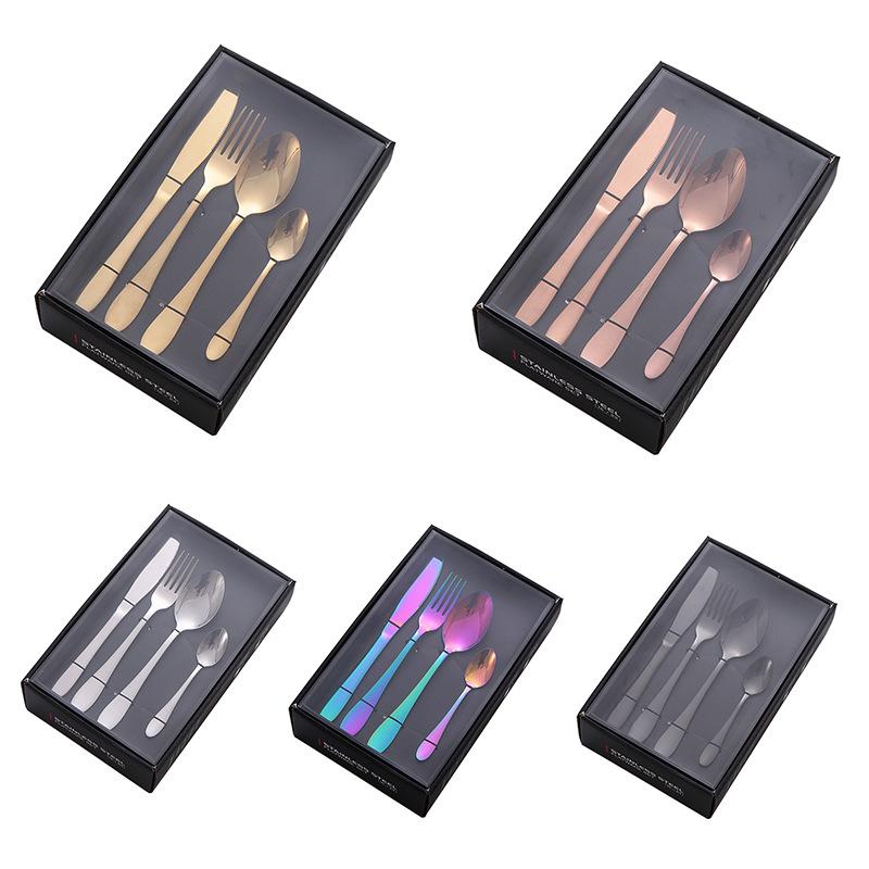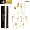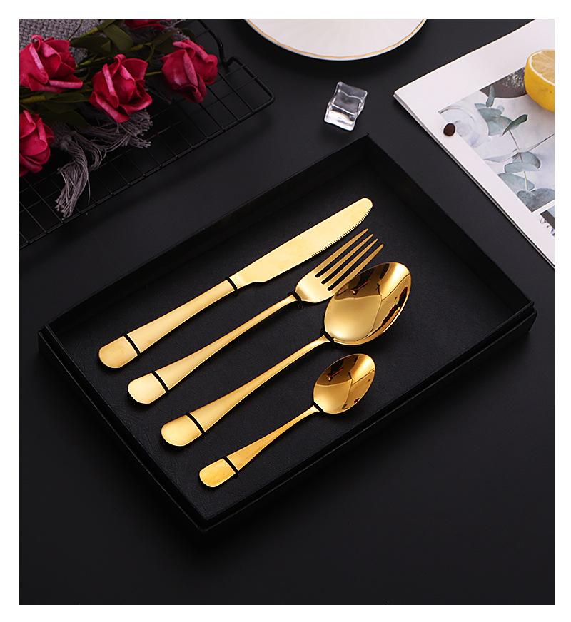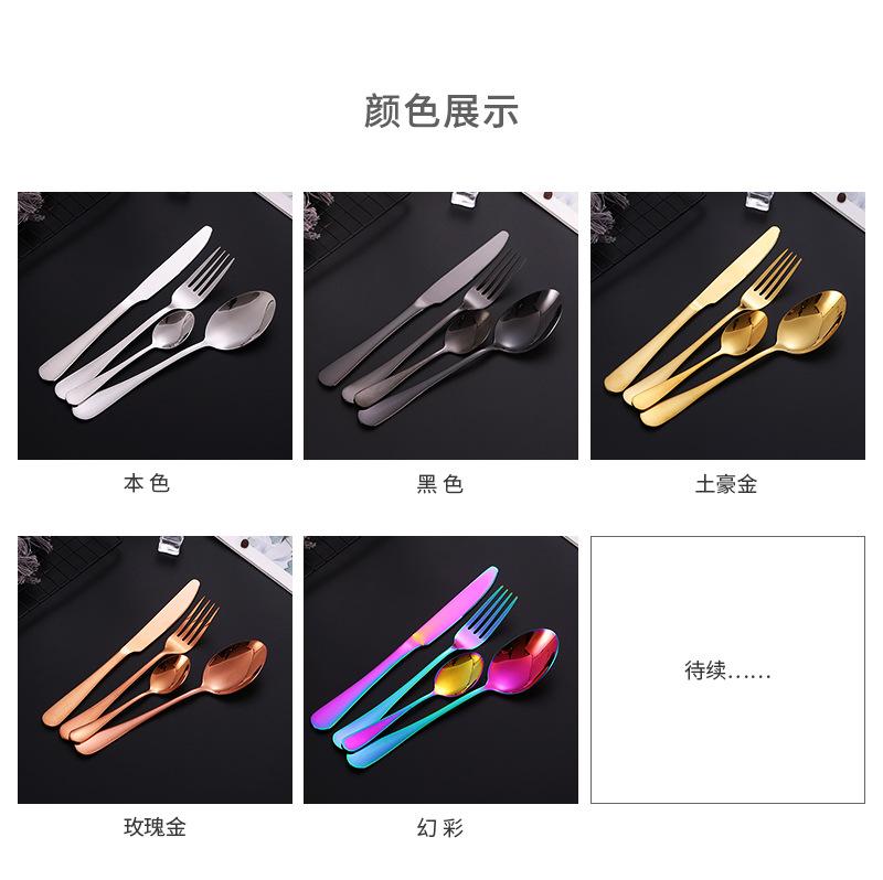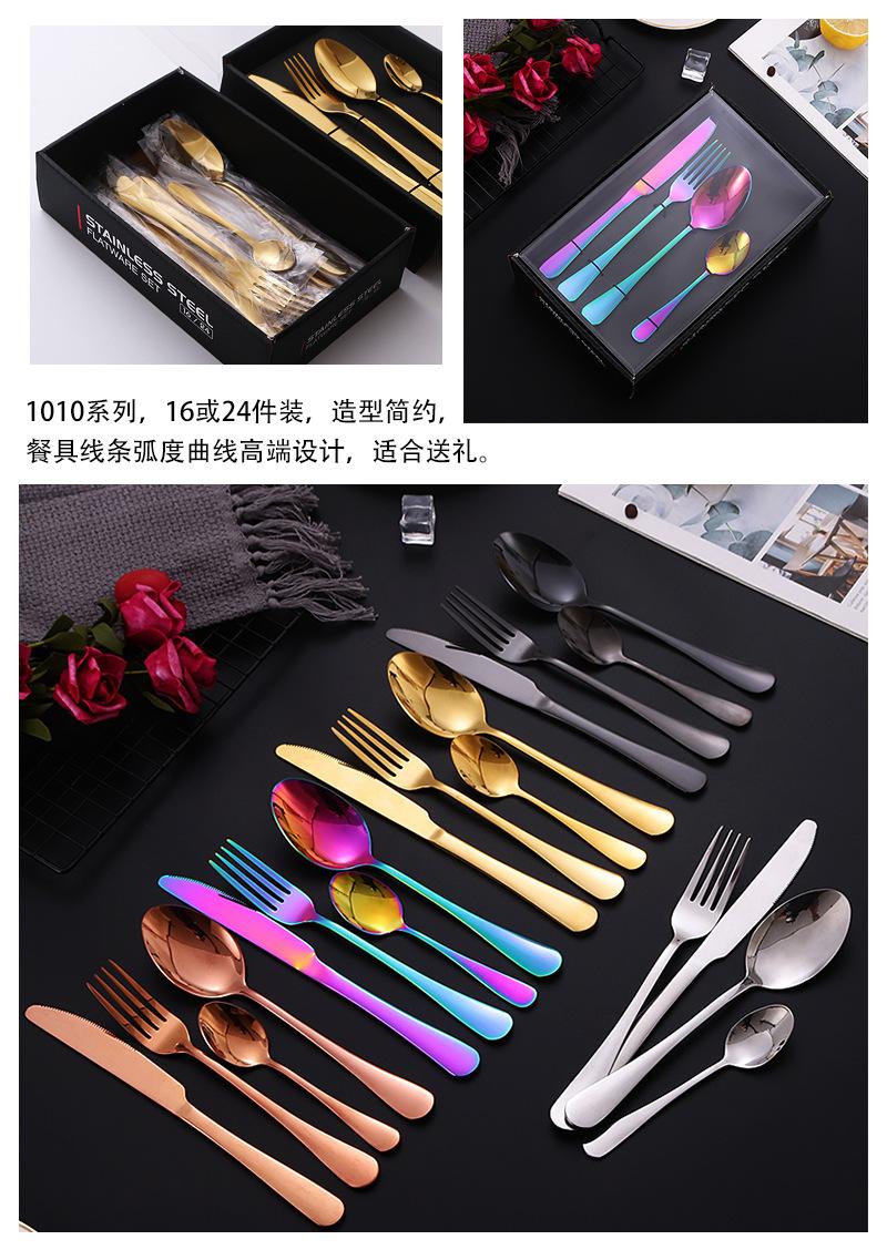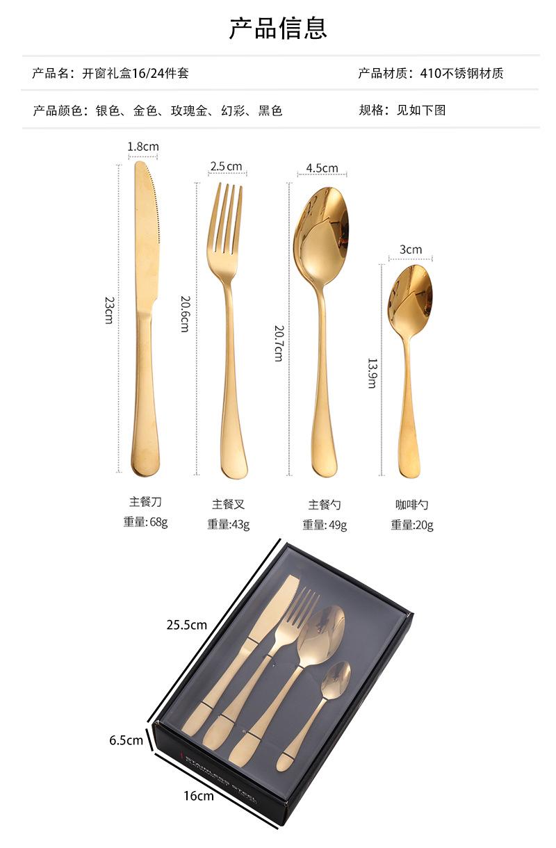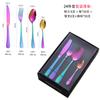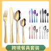 Juego de cubiertos occidentales de acero inoxidable de 16/24 piezas con explosiones transfronterizas, chapado en titanio, juego de cuchillo, tenedor y cuchara