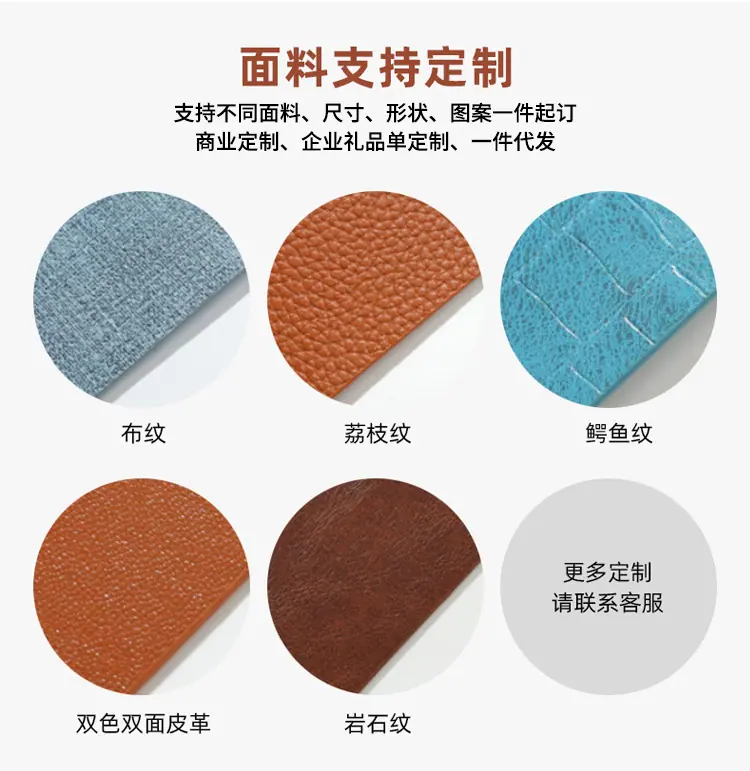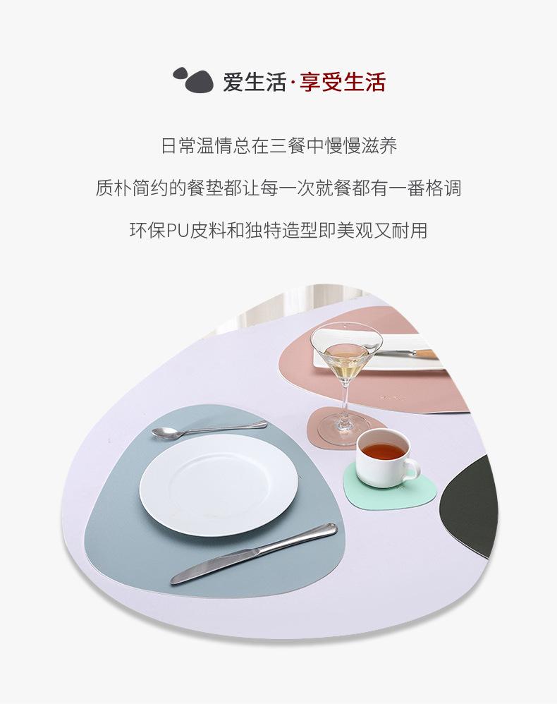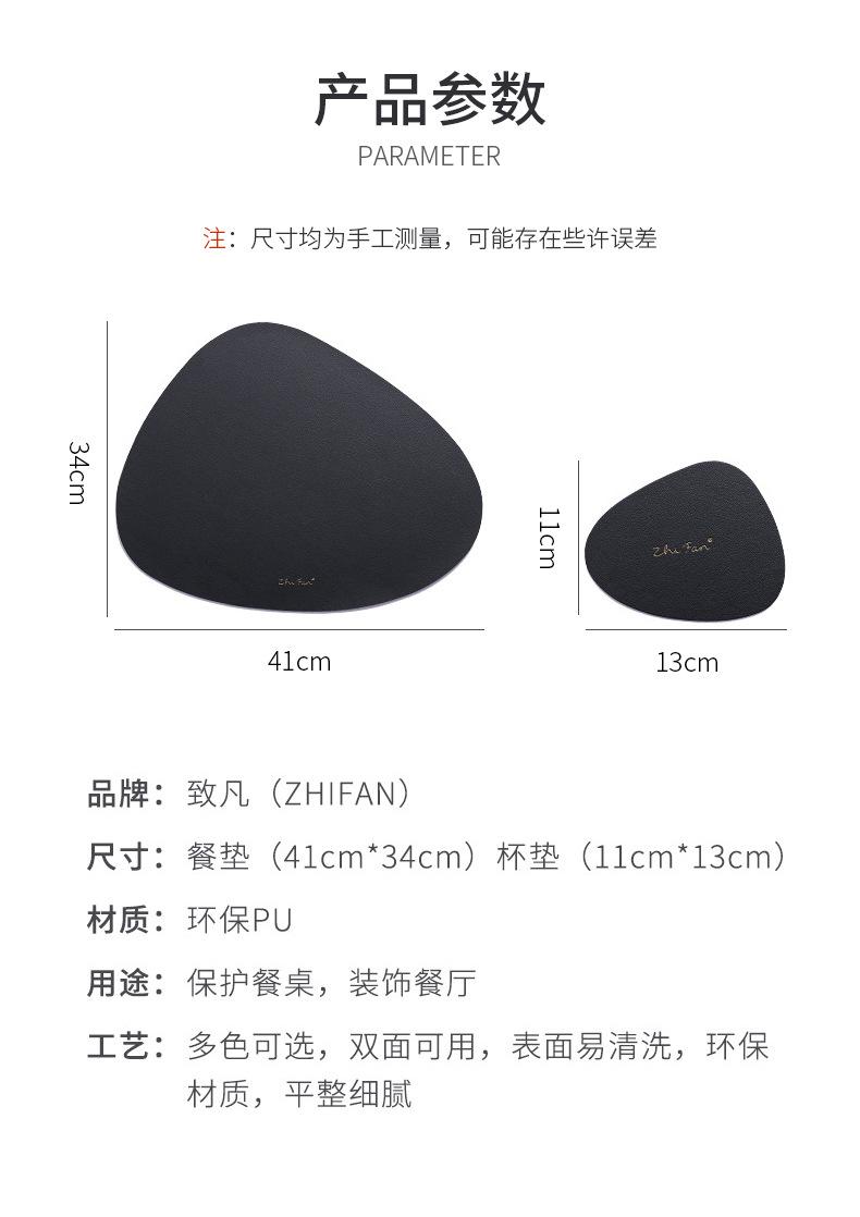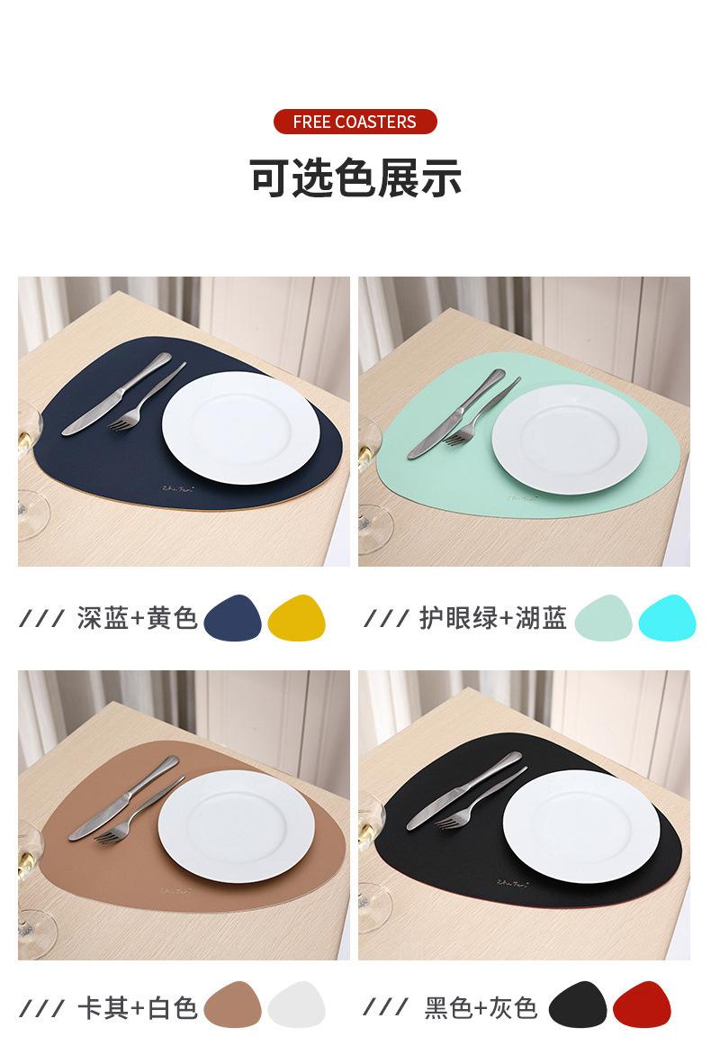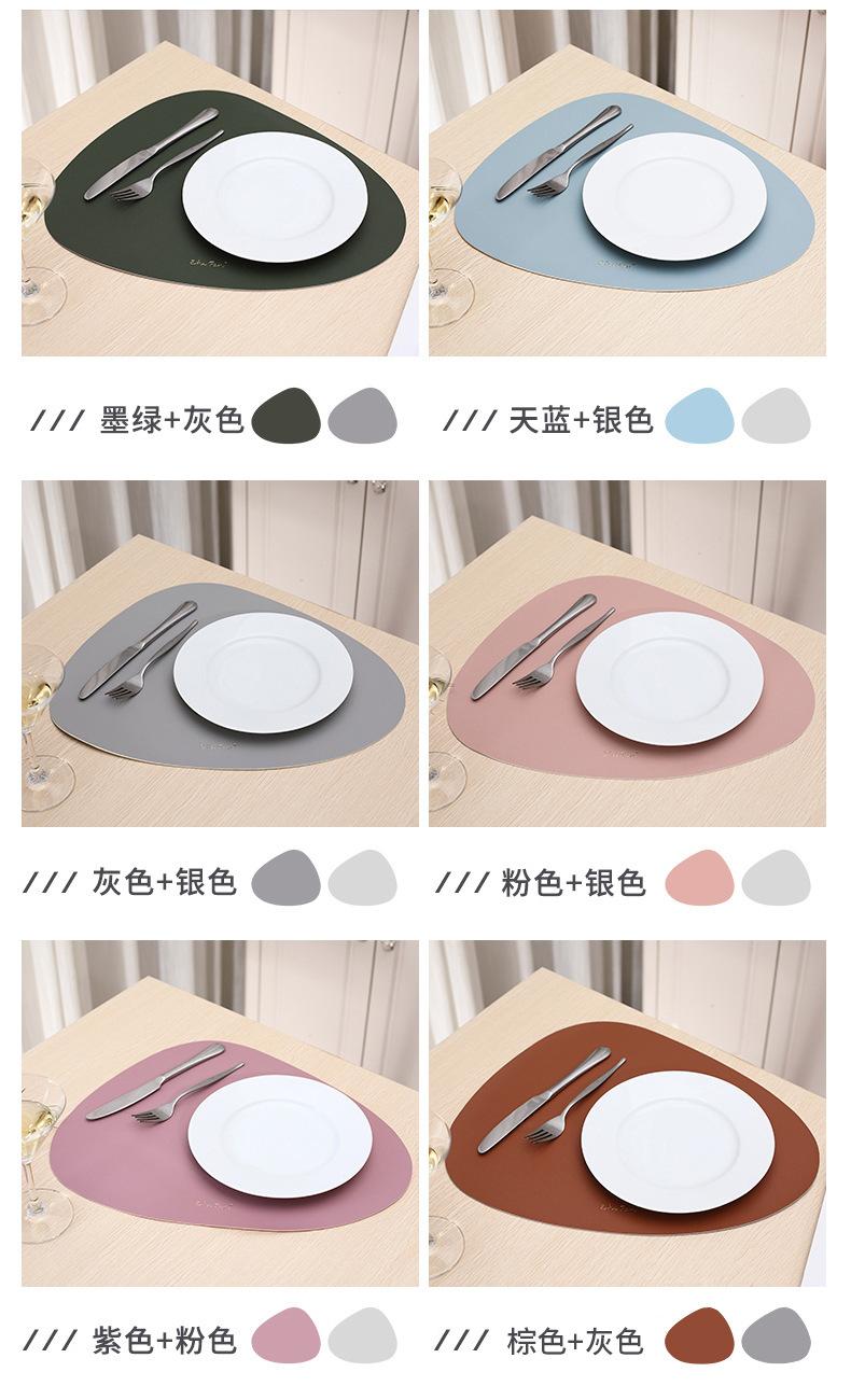 Double-sided leather drop placemat black + burgundy, Double-sided leather drop placemat sky blue + silver, Dou...