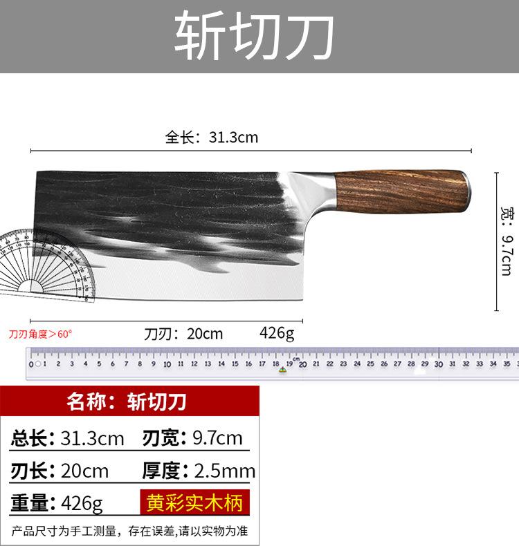 Forging cross-grain chopping knife with yellow colored wooden handle, Forging cross-grain chopping knife with ...