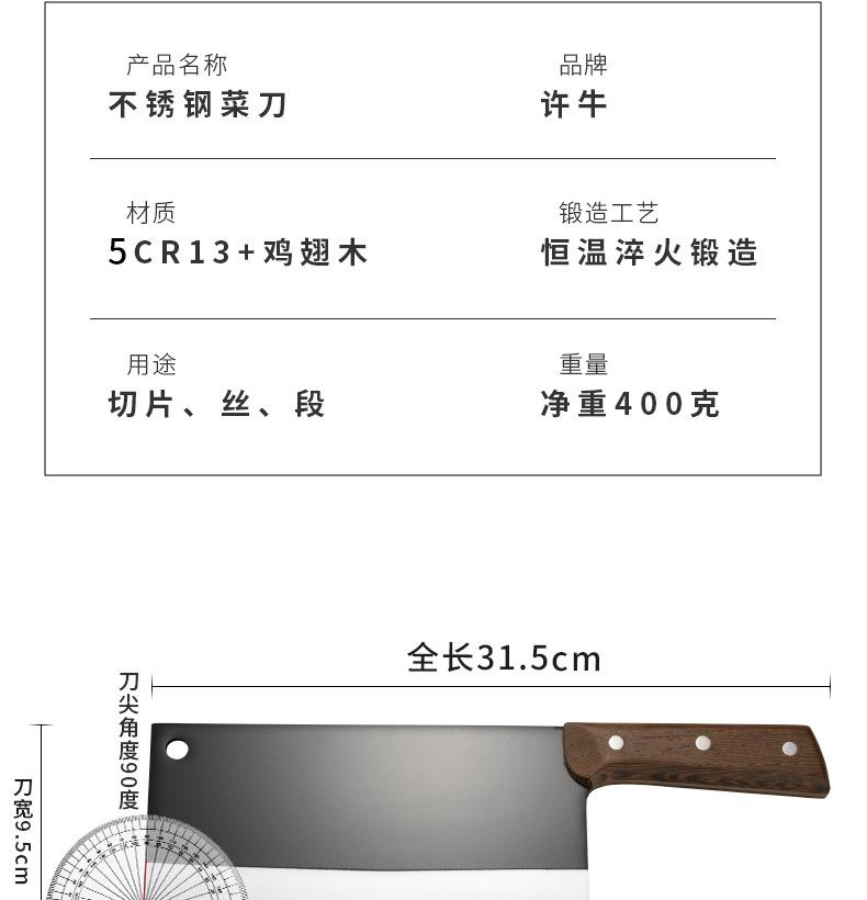 Cuchillo de cocina Cuchillo de cocina Cuchillo de chef doméstico Cuchillo de cocina para picar Cortador de carne de acero inoxidable Cuchillo de rebanar afilado de doble propósito