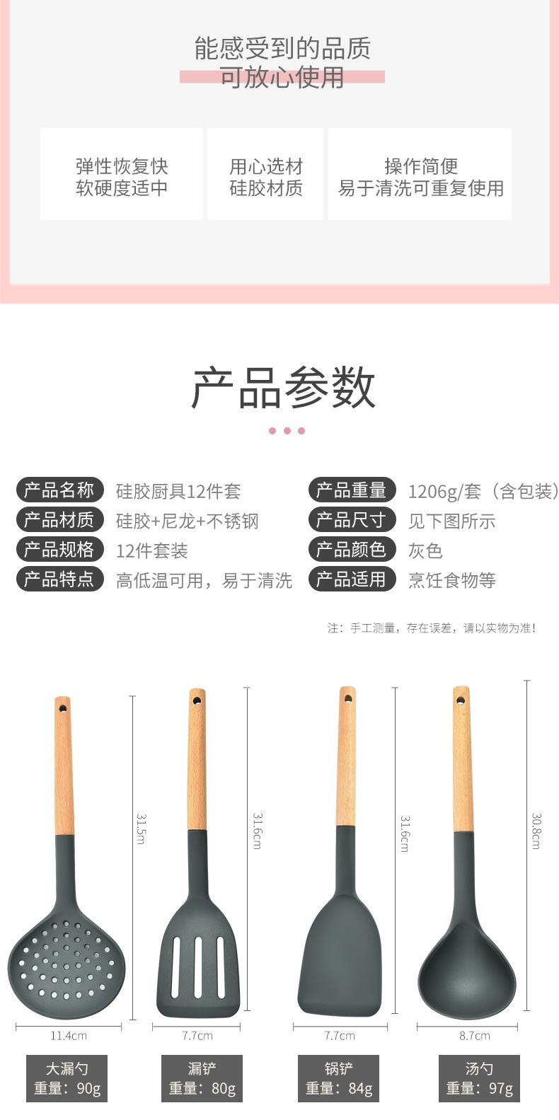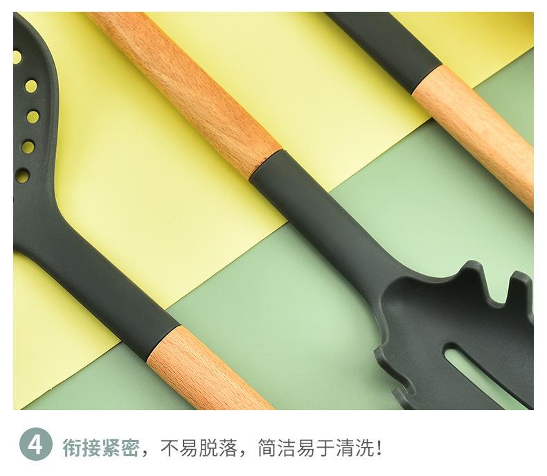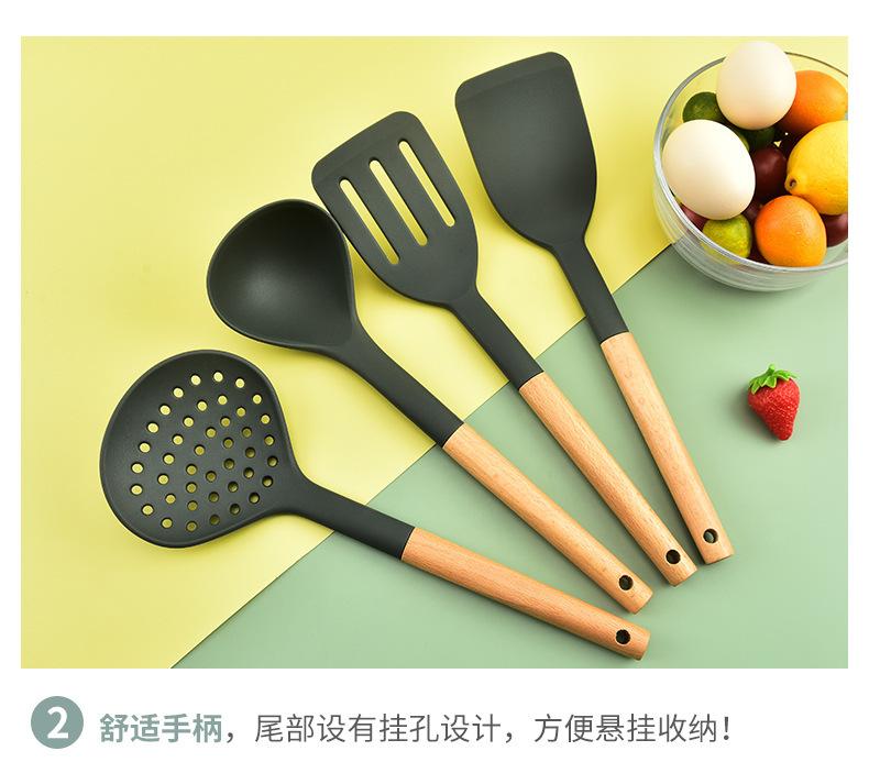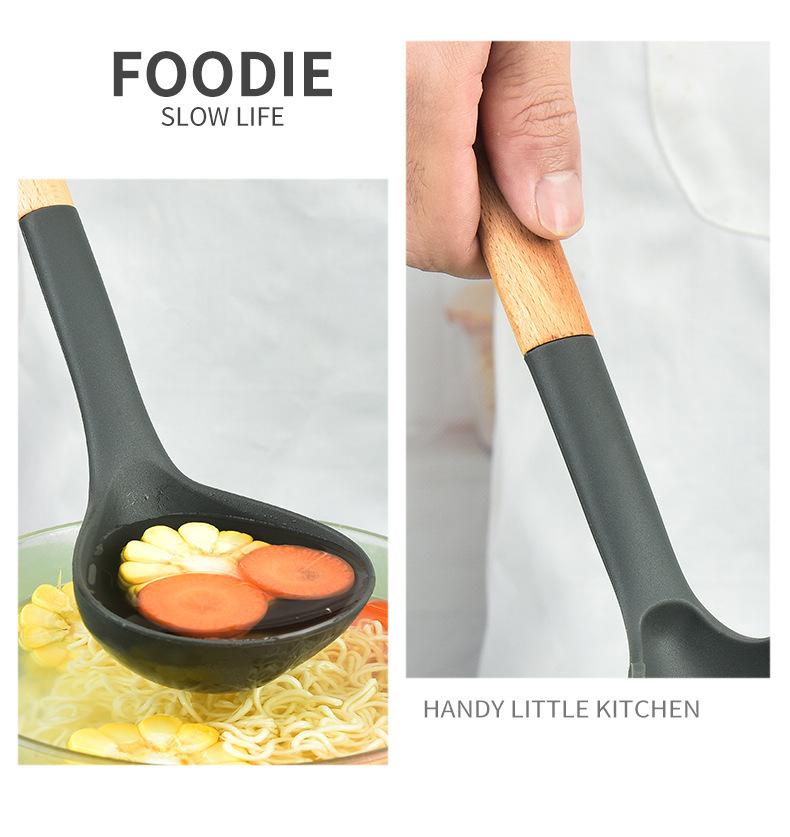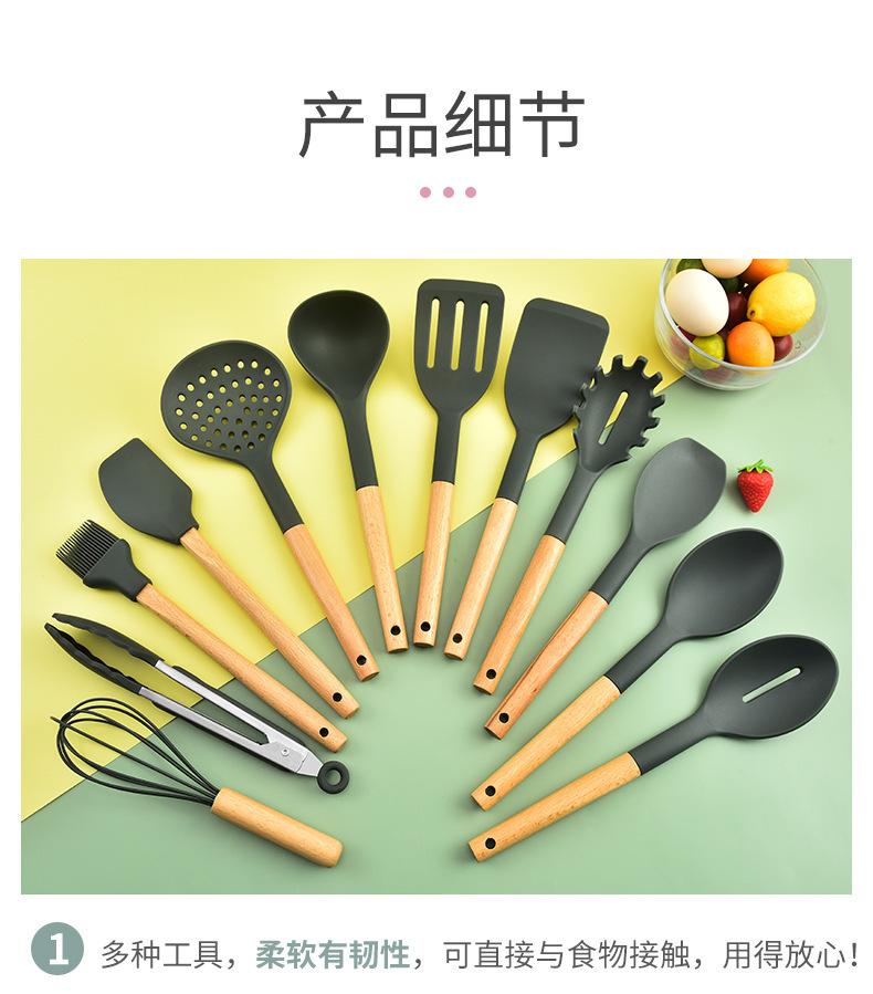 Espátula de silicona con mango de madera, cuchara para cocinar, utensilios de cocina, 11 piezas, juego de utensilios de cocina de silicona de 12 piezas