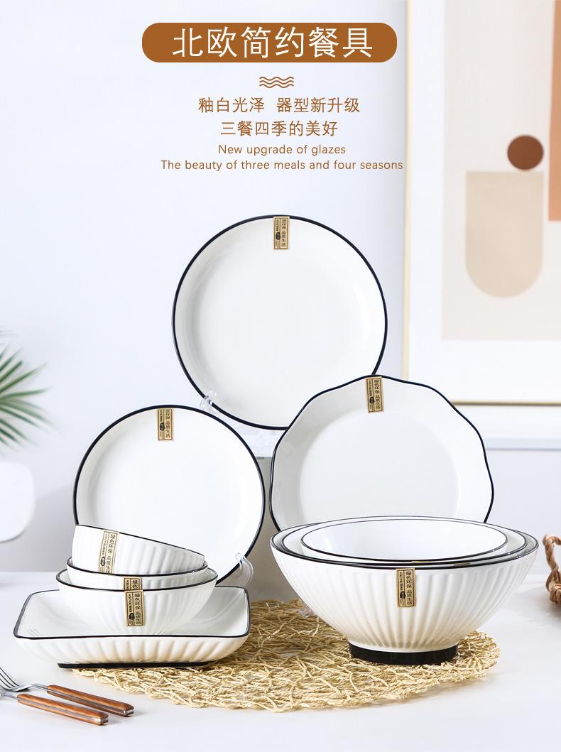 Cuenco de cerámica nórdico simple, vajilla para el hogar, cuenco, plato, juego creativo personalizado, cuenco de arroz, plato, vajilla combinada