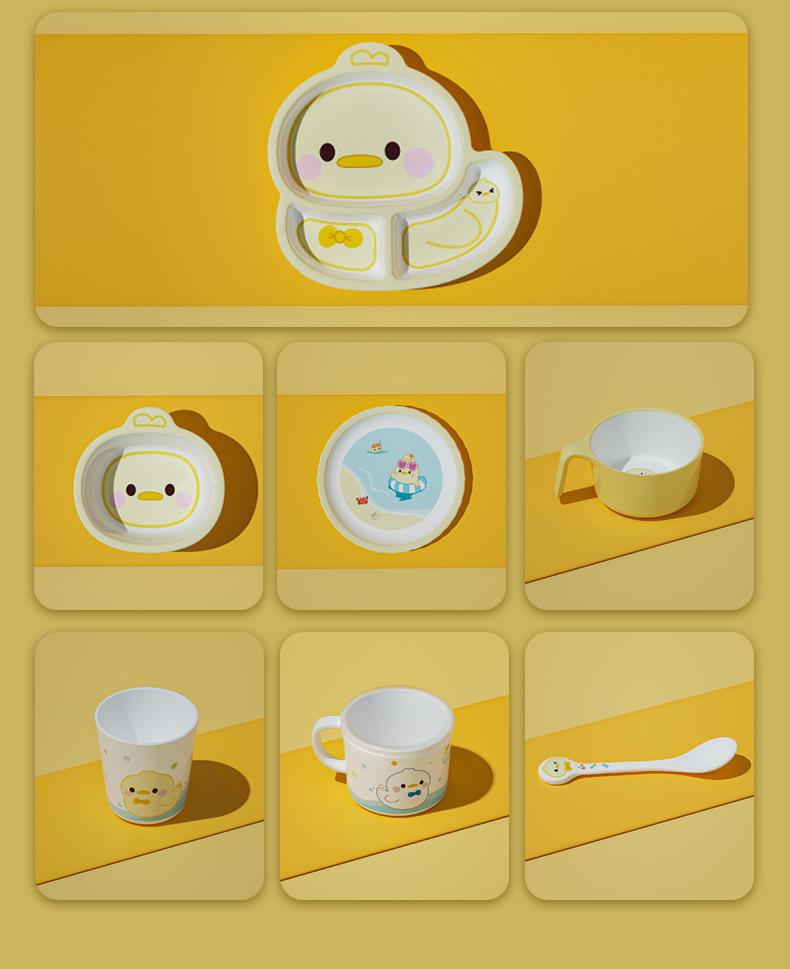 (Color box) small yellow duck four-piece set, (Color box) small yellow duck single ear Bowl Spoon, Duck plate-...