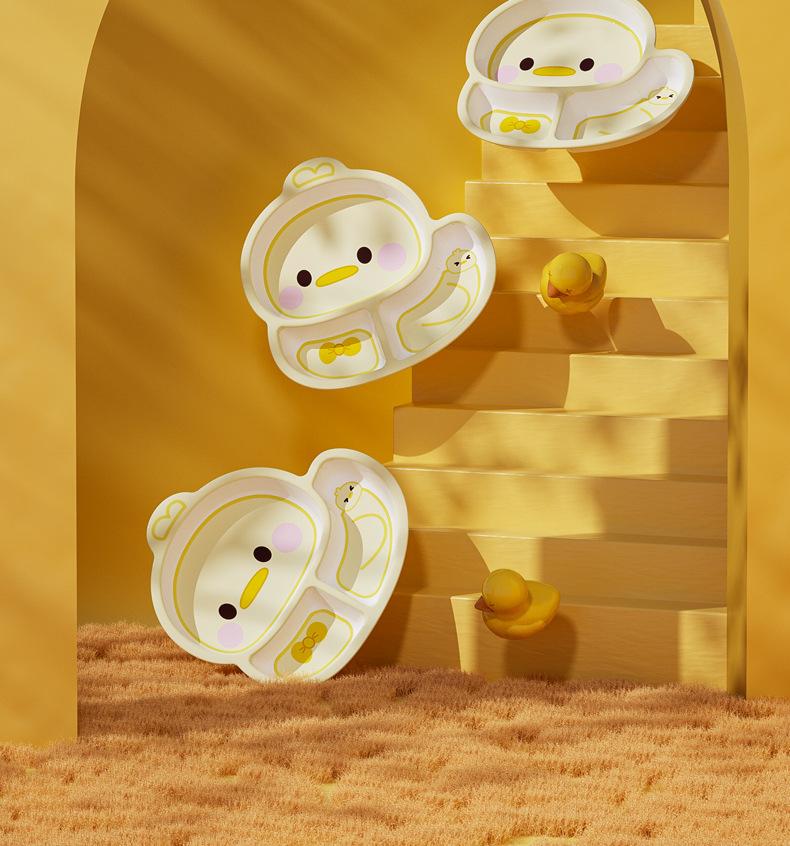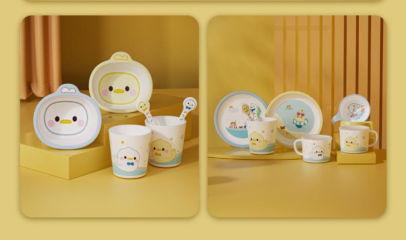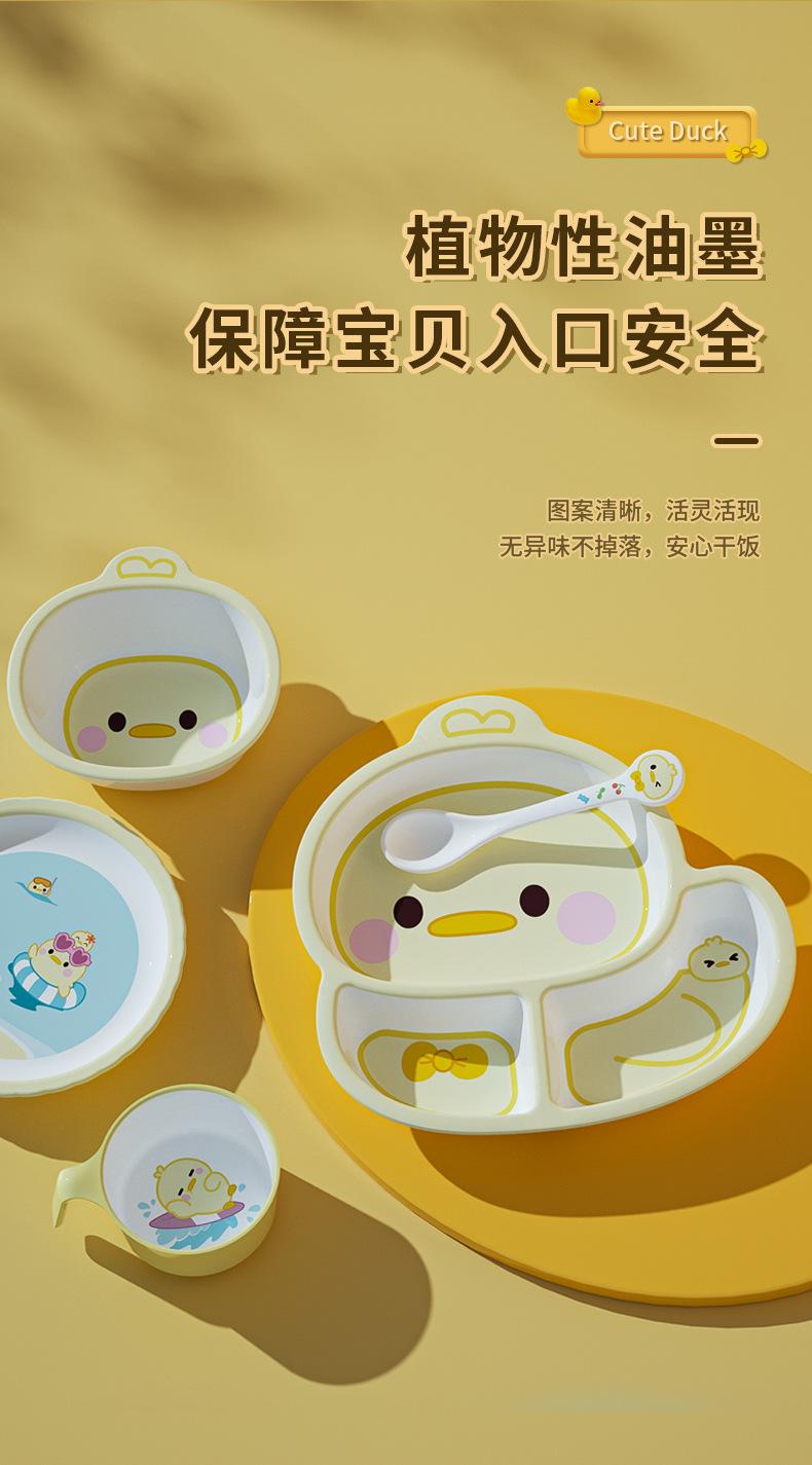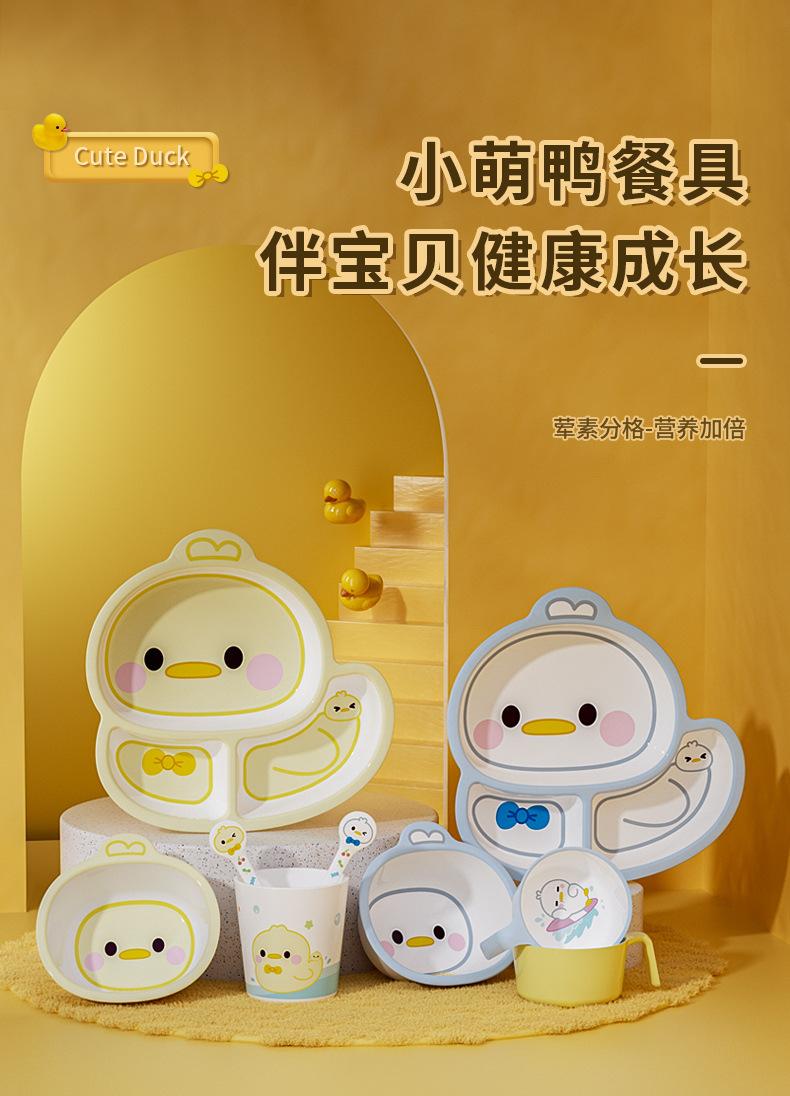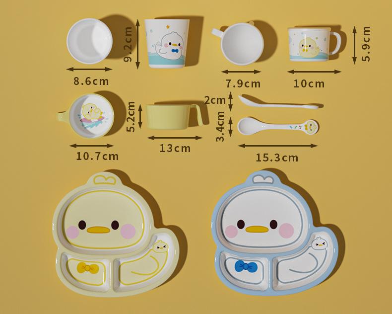 Vajilla de Patito Amarillo para Niños y Bebés, Plato Dividido, Tazón para Comida, Tazón para Arroz, Vaso para Agua, Set de Suministros para Madre y Bebé al Mayoreo