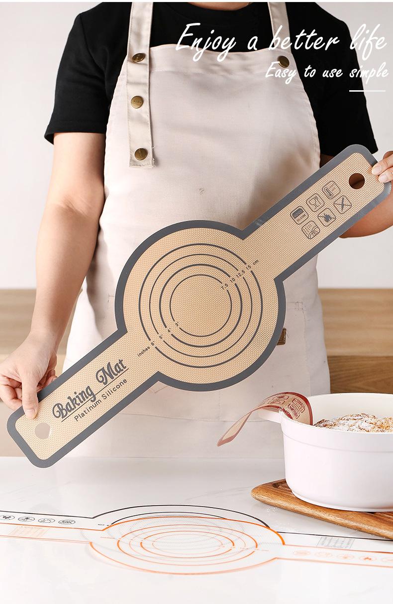 Nombre del producto: 2024 nuevo tapete para hornear para transferencia de masa para freidora de aire, tapete para amasar, tapete para pan, tapete de silicona para hornear con mango largo