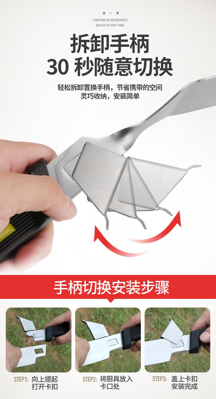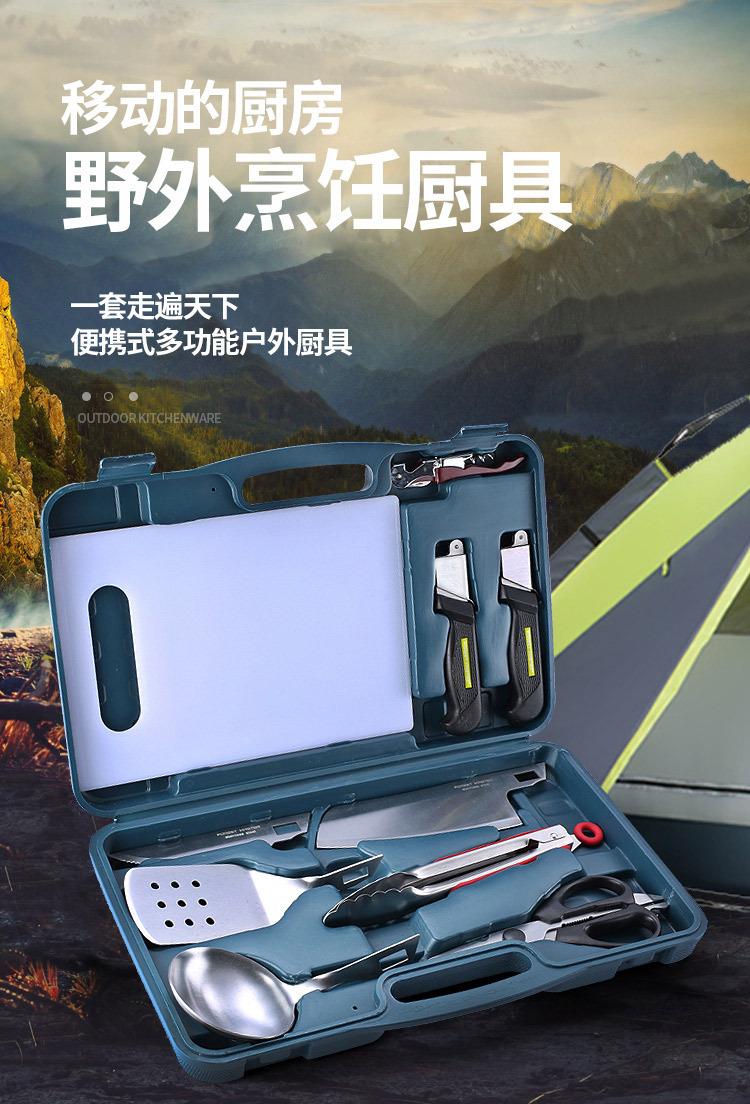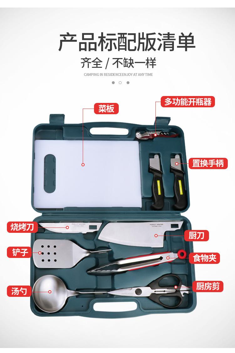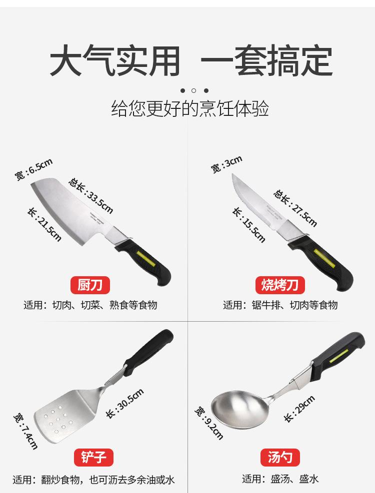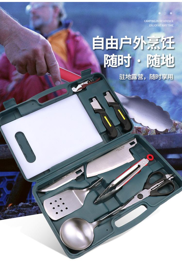 Herramientas de cocina combinadas para exteriores, tijeras para barbacoa, pala, cuchara, clip, juego de cuchillos de cocina de acero inoxidable