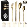 Juego de vajilla de acero inoxidable transfronterizo de Amazon, cuchillo, tenedor y cuchara, 24 piezas, juego de cuchillo, tenedor y cuchara para carne de acero inoxidable occidental
