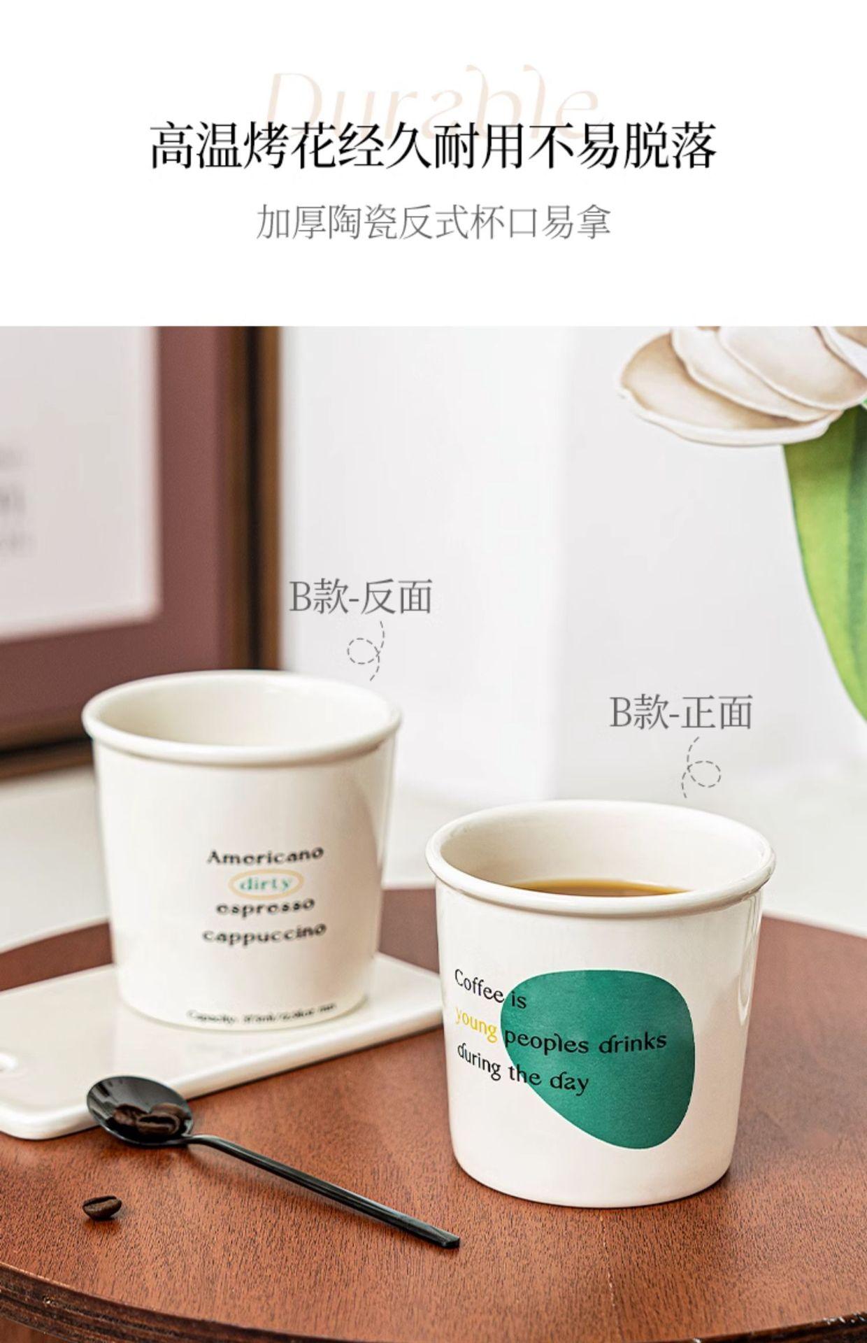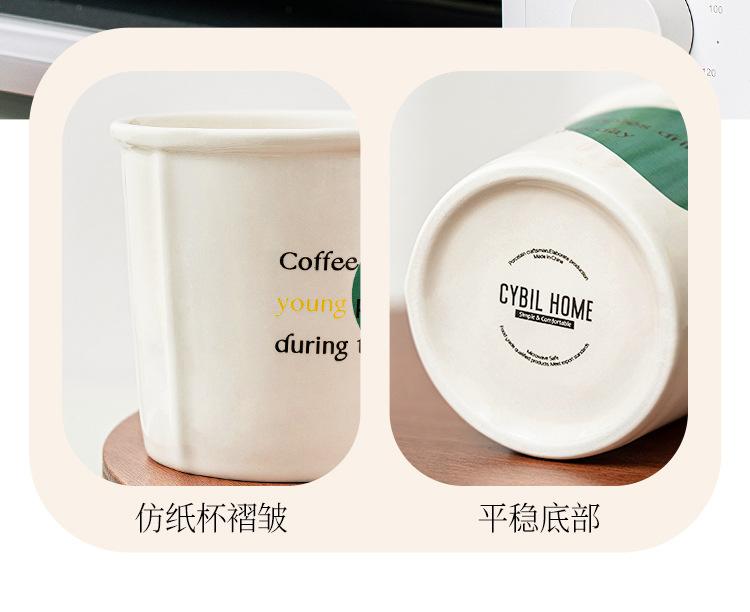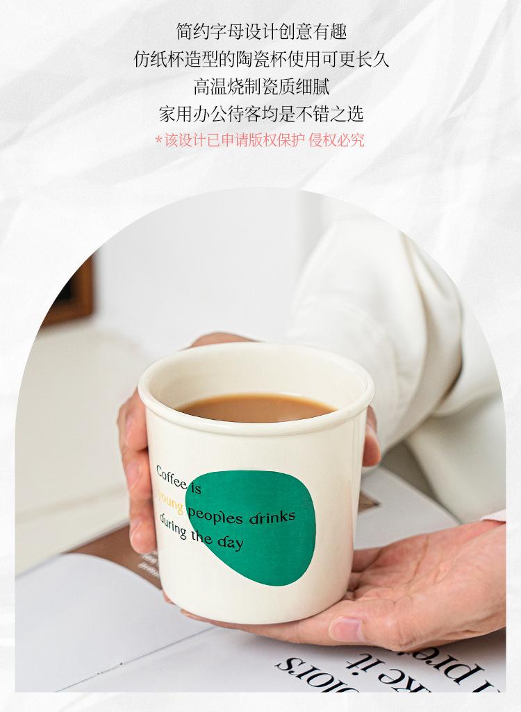 Vaso portátil simple resistente a altas temperaturas para el hogar, taza de papel de imitación, taza de cerámica para oficina, creativo de alta apariencia, taza de café ins