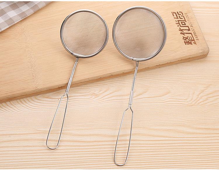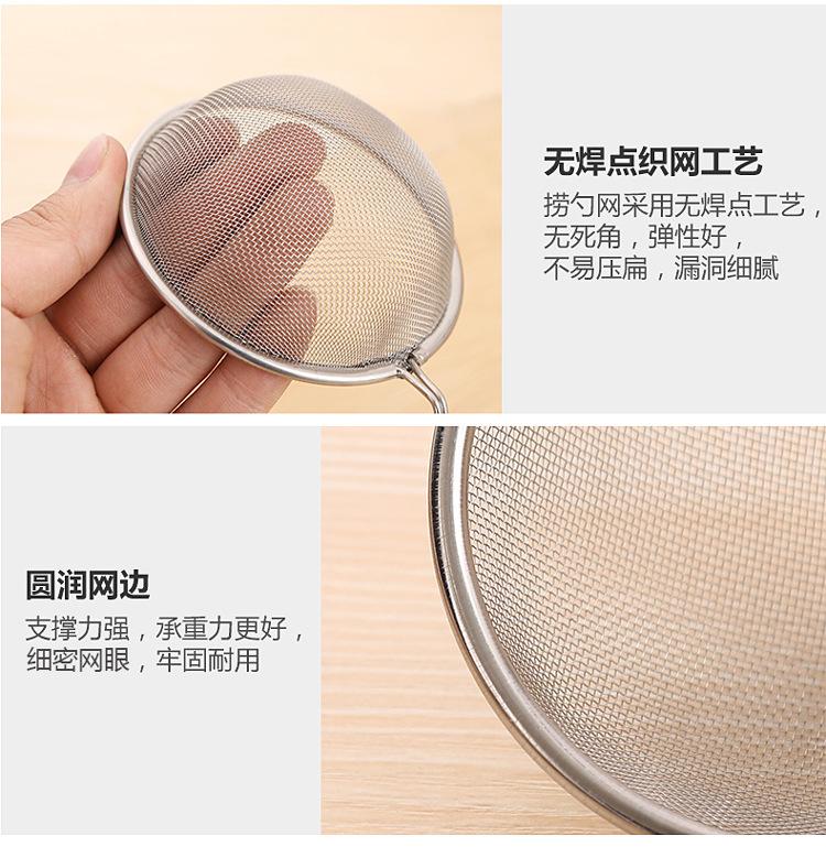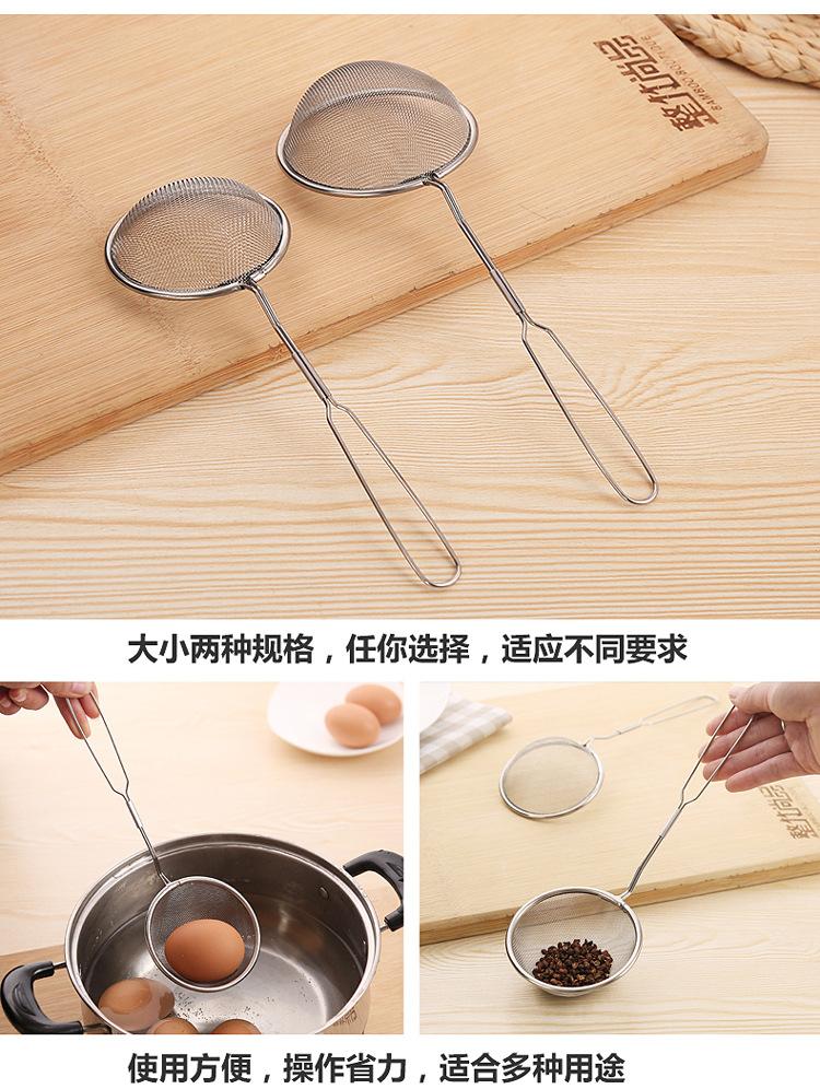 Introducción: Fabricado en acero inoxidable de alta calidad, sin soldadura, con una malla fina y uniforme, es muy práctico para filtrar residuos, espuma y grasa. Es pequeño y práctico. Sirve para extraer huevos cocidos, frituras y filtrar residuos de aceite, permitiéndole disfrutar de una comida original, nutritiva y saludable.