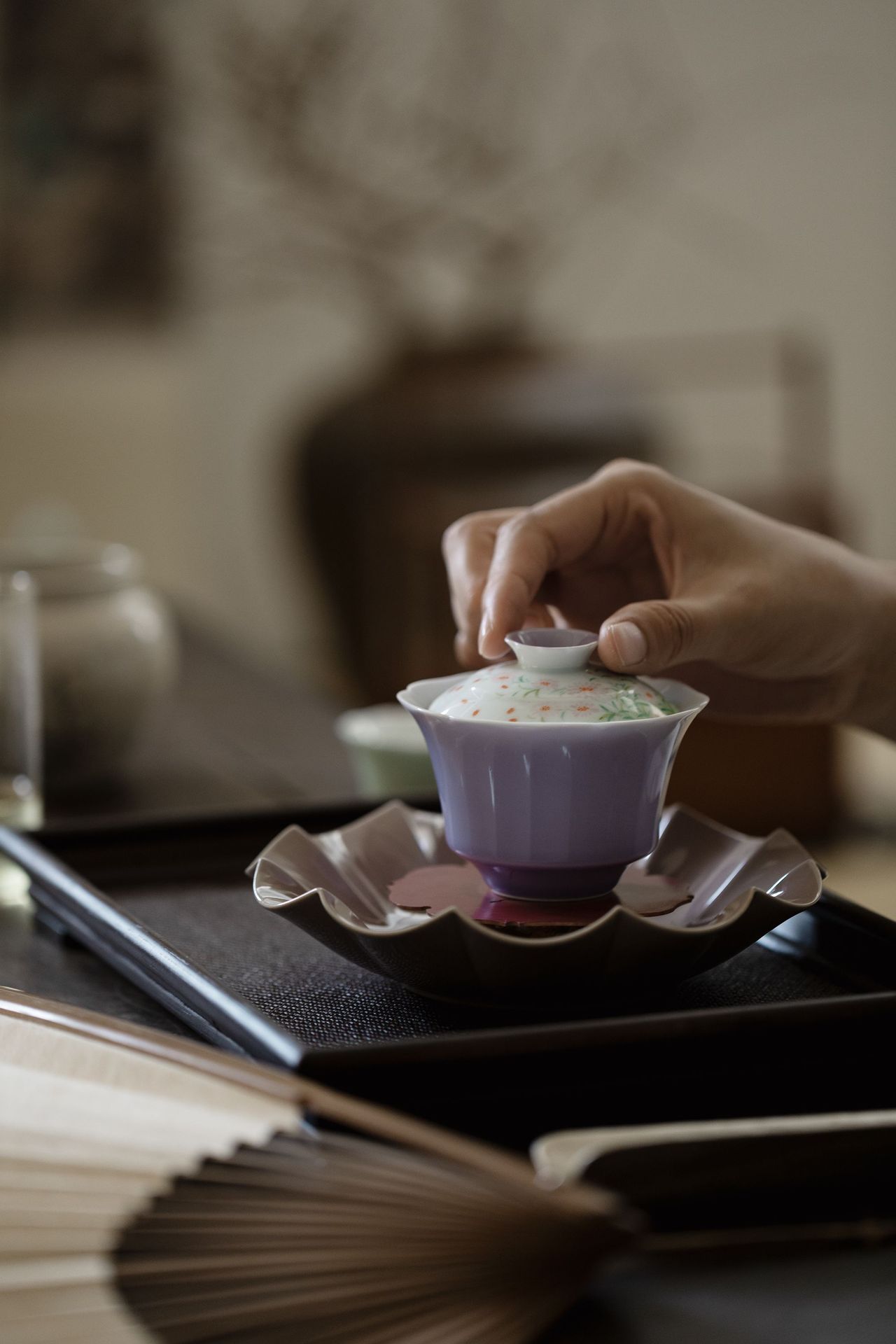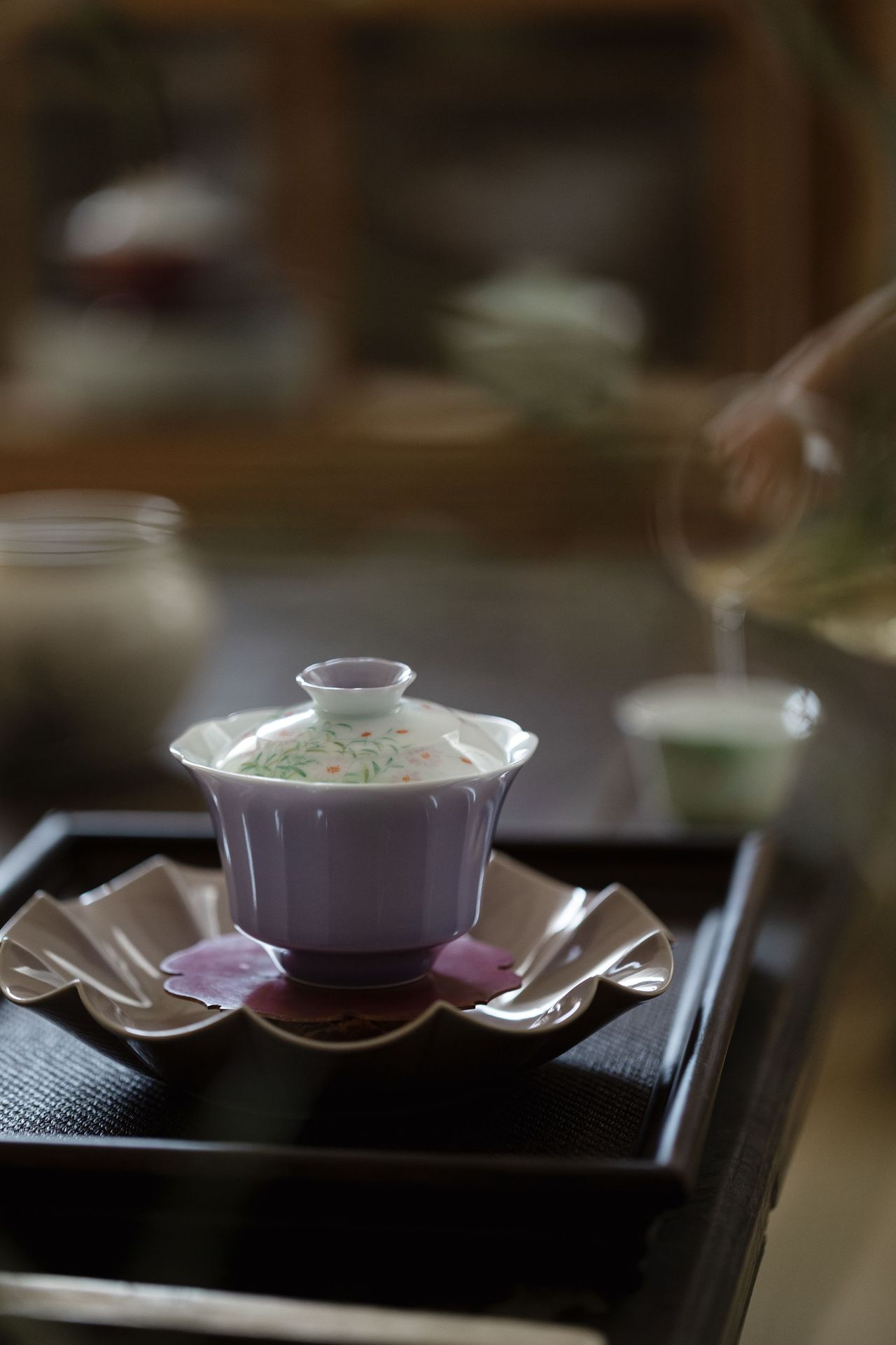 No Fall-Hibiscus Purple-Hand-painted Jade-Qiurui Gai Bowl