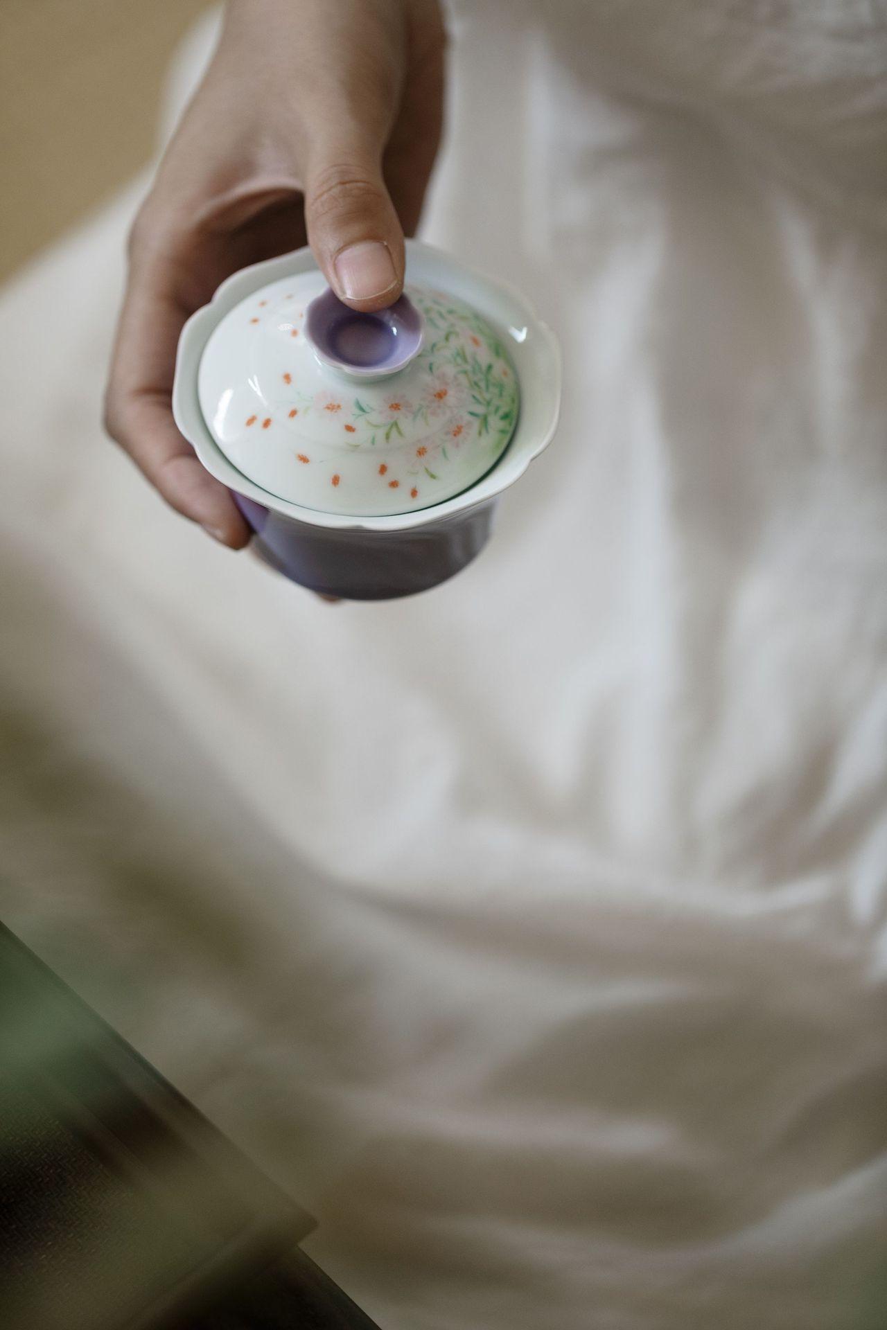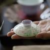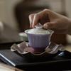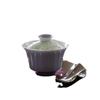 Tazón Gai de Jingdezhen color púrpura hibisco bajo cubierta pintado a mano pequeño jade verde boca de flor tazón con tapa de cerámica hecho a mano té kung fu