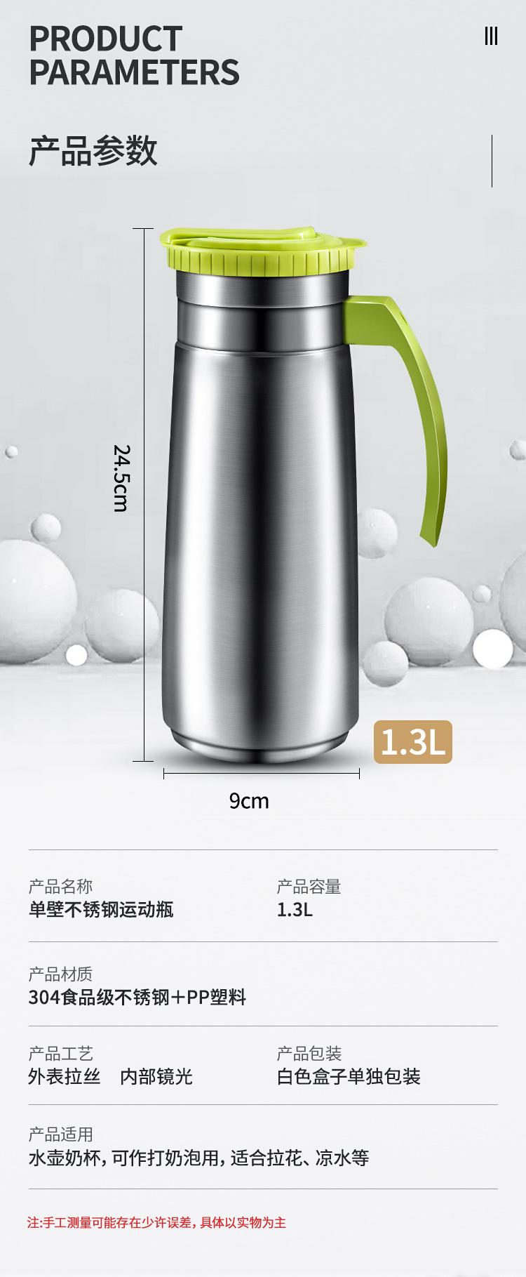Botella de agua fría de acero inoxidable 304, botella de agua de una sola capa, de gran capacidad, para el hogar, para deportes al aire libre, de verano, sin conservación del calor.