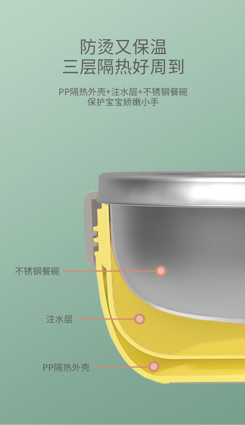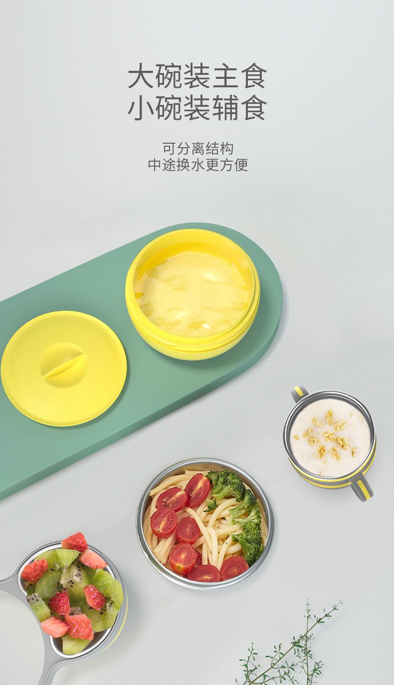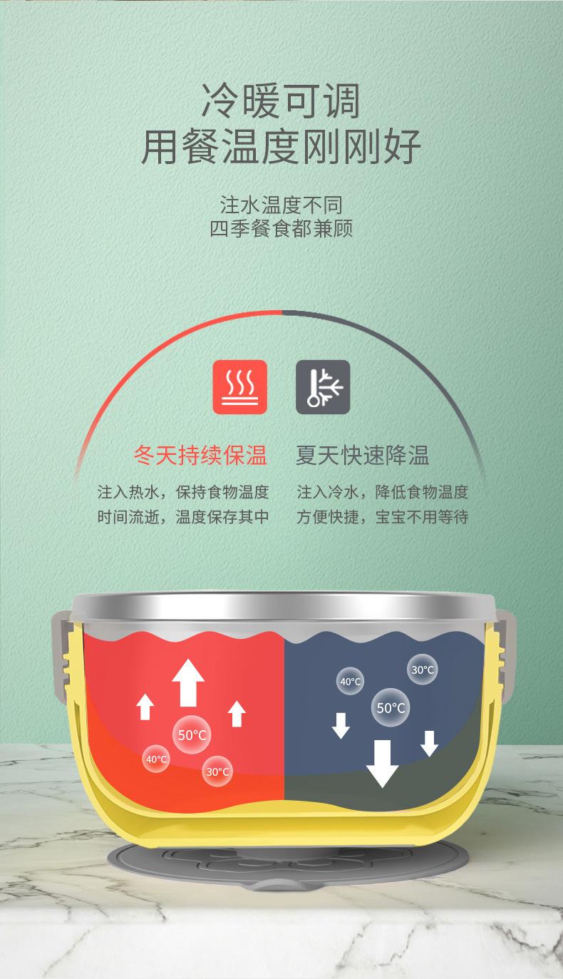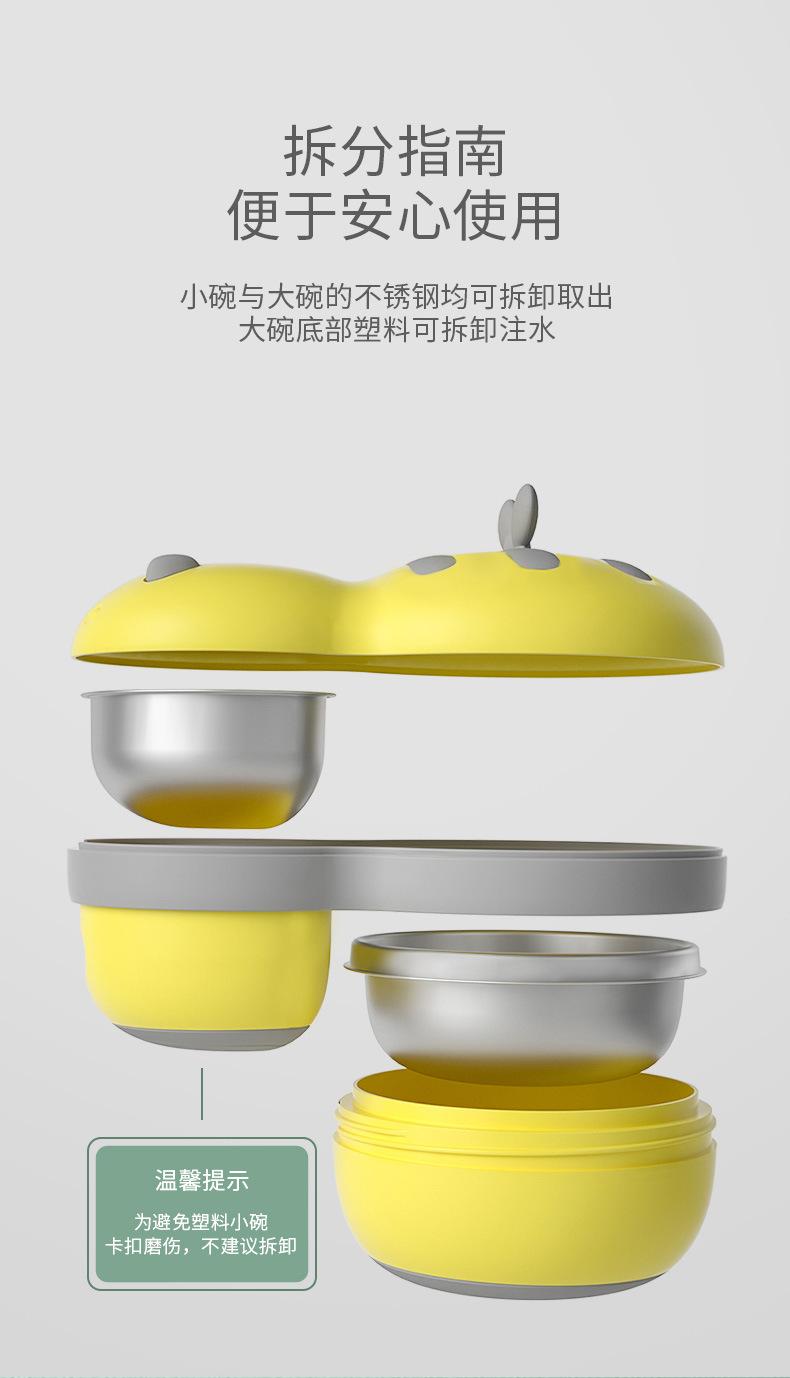 Tazón Aislado de Acero Inoxidable 304 para Niños con Agua, Tazón para Bebé con Ventosa Removible, Tazón para Comida, Set de Vajilla para Bebé