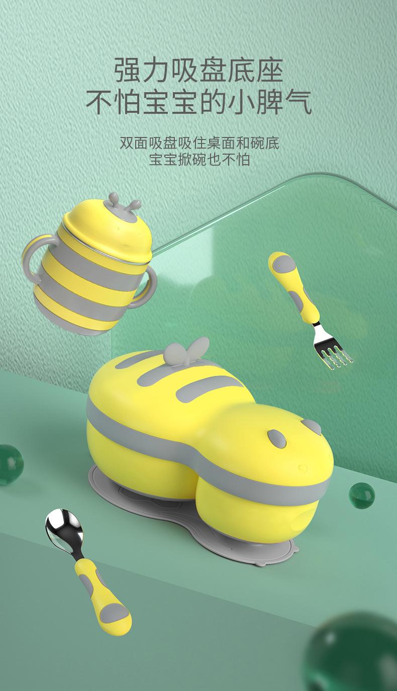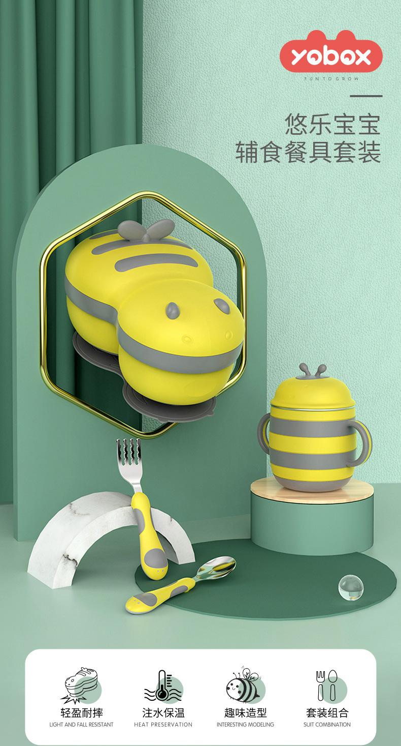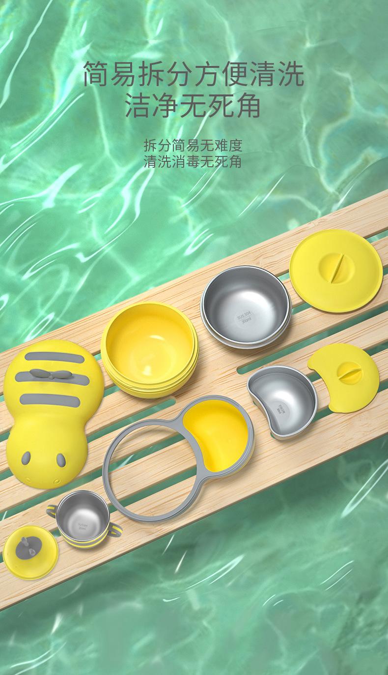 Tazón Aislado de Acero Inoxidable 304 para Niños con Agua, Tazón para Bebé con Ventosa Removible, Tazón para Comida, Set de Vajilla para Bebé