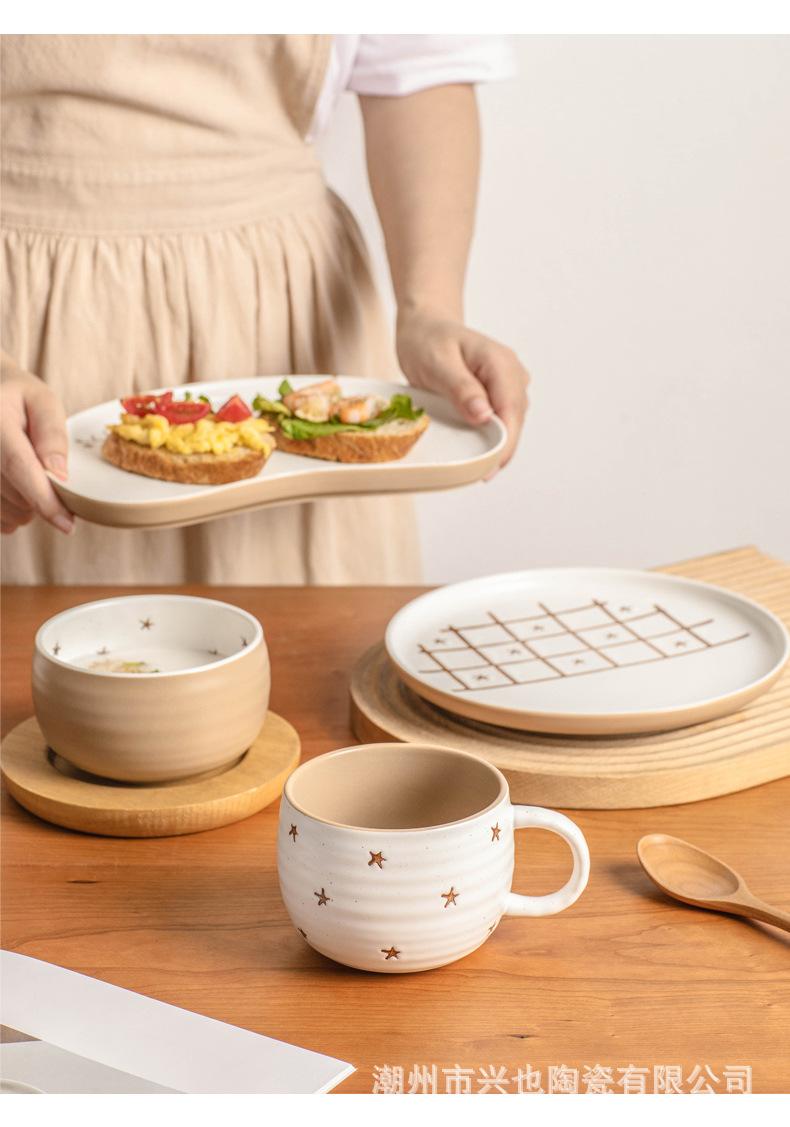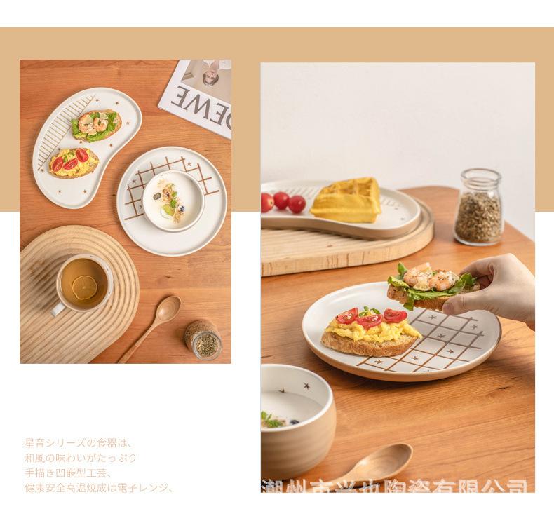 Plato de Cena de Cerámica Estilo Japonés Creativo Pintado a Mano Bajo Esmalte Color Estilo Dibujos Animados Plato para Bocadillos Plato para Postre Vajilla para Desayuno Té de la Tarde