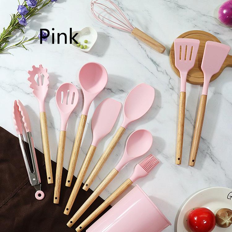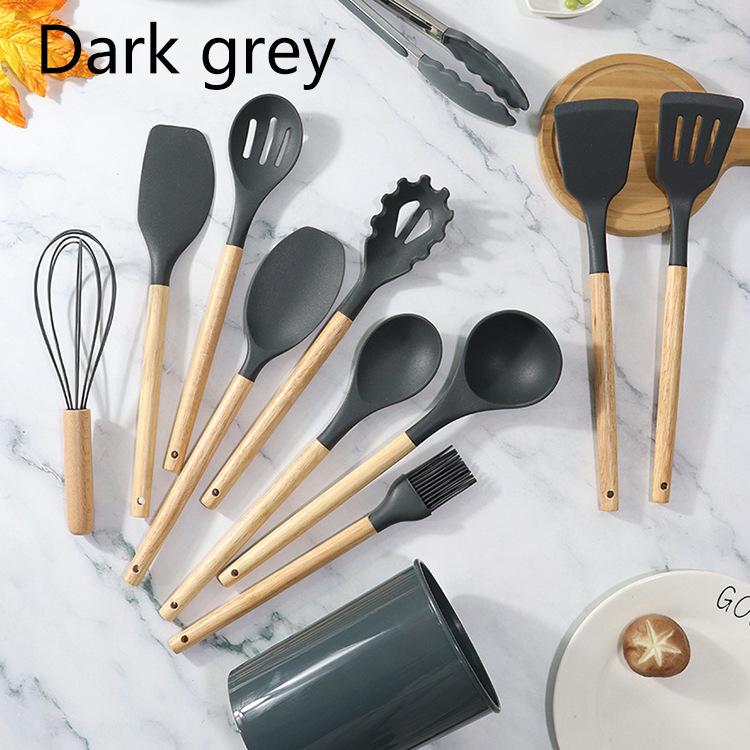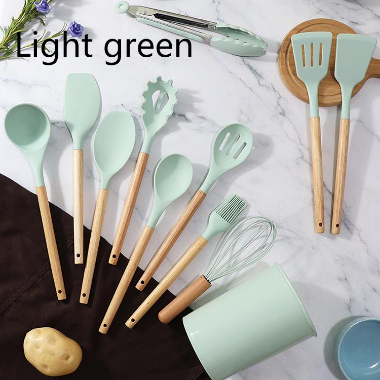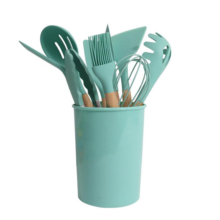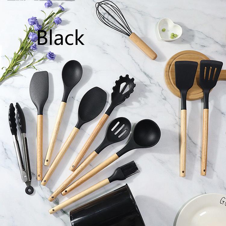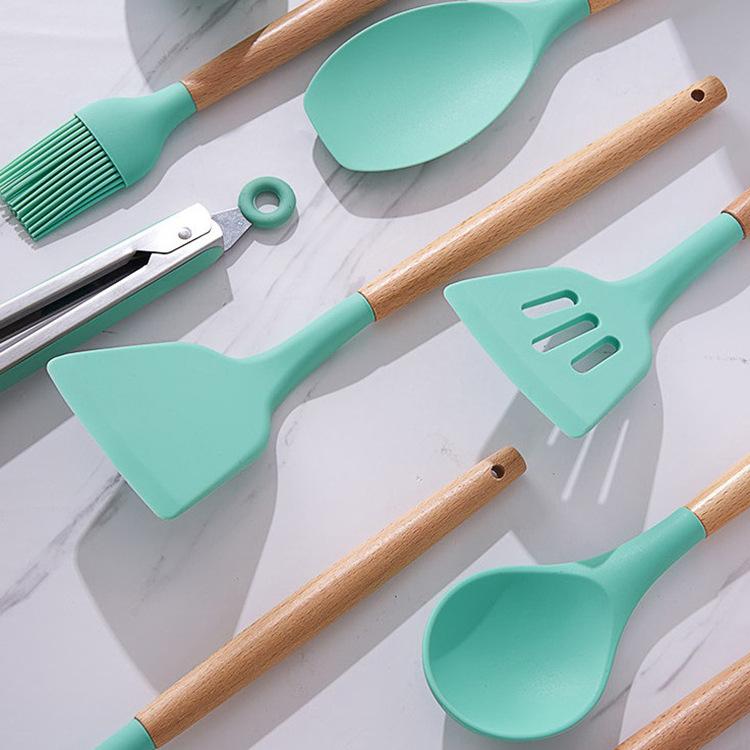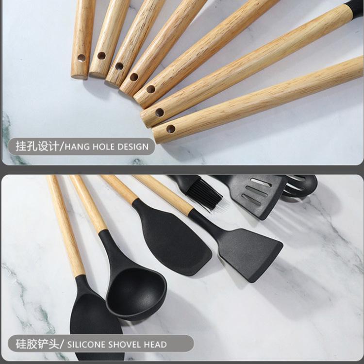 Nombre del producto: Juego de utensilios de cocina de silicona con mango de madera